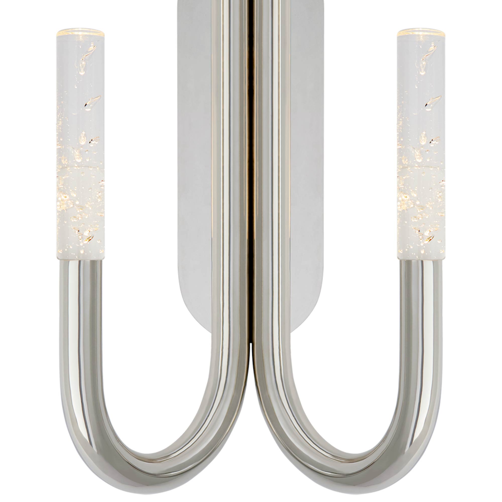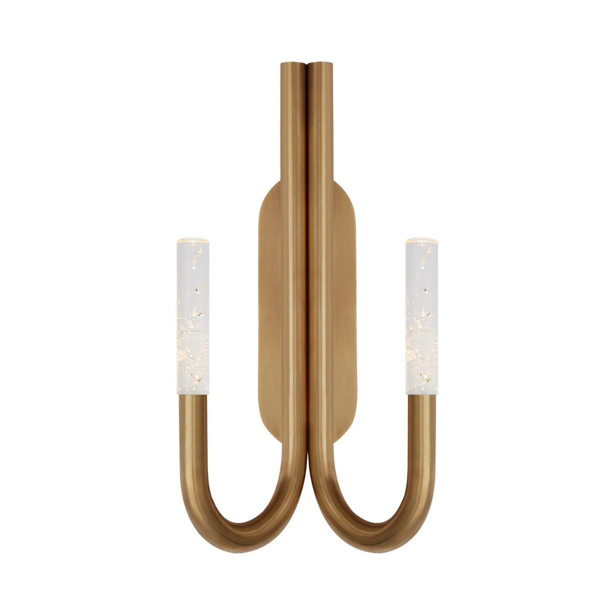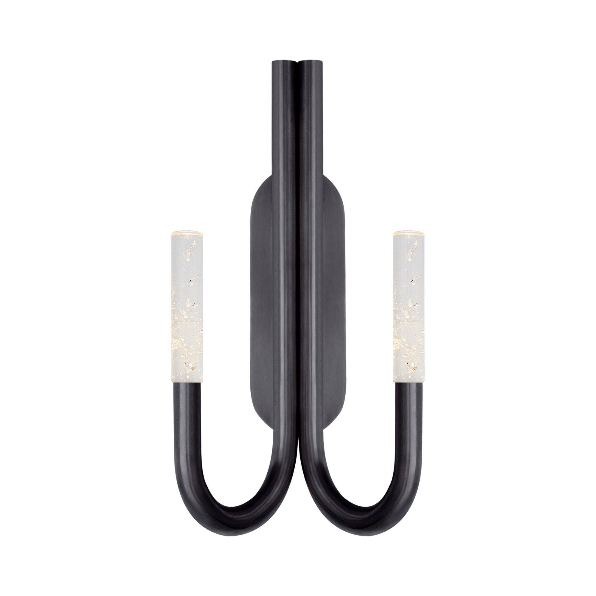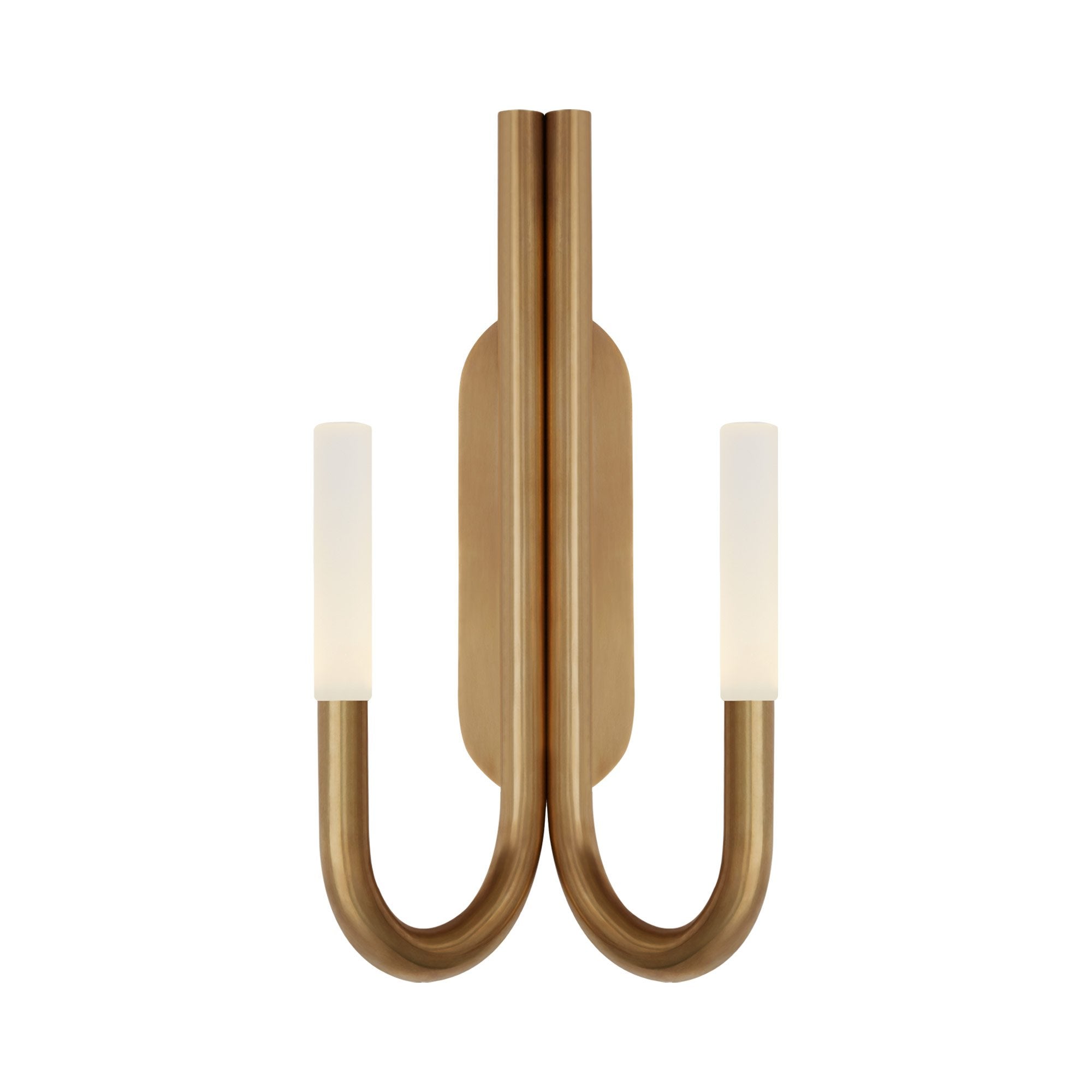 A pair of swooping curves create a sese of symmetry and balance for the Rousseau Double LED Wall Light from Visual Comfort Signature. Setting the tone in a modern space, the minimalist look offers appealing ambiance in a hall, entry, or living room.