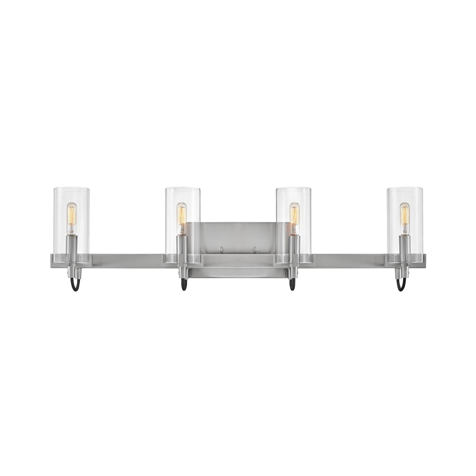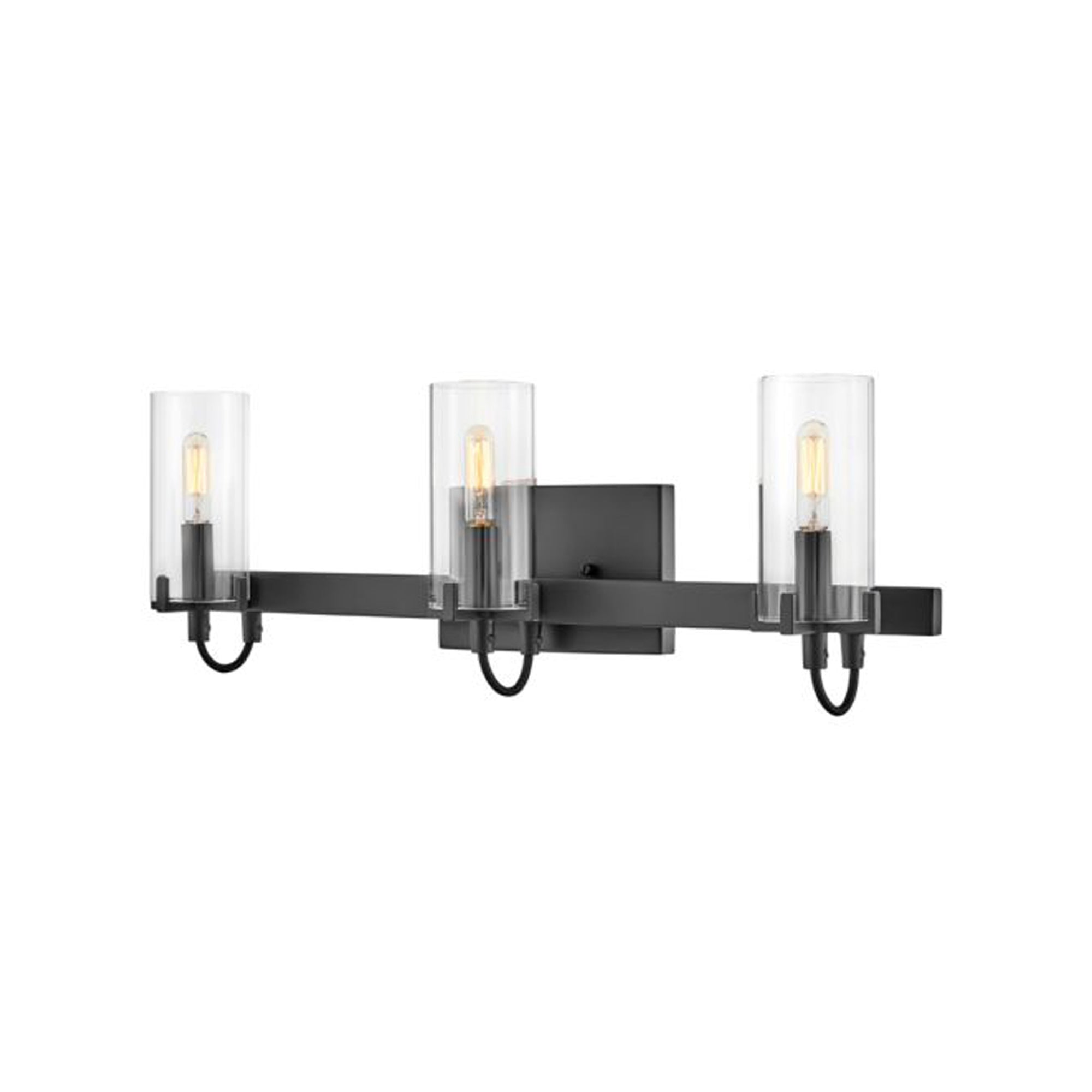 Clean, classic design elements bring charm and character to the Ryden Bath Vanity Light from Hinkley. Clean lines and a structured silhouette are emphasized with cast brackets that host cylinder of clear glass, creating a chic, torch-inspired silhouette that blends beautifully in traditional, transitional, and industrial spaces.