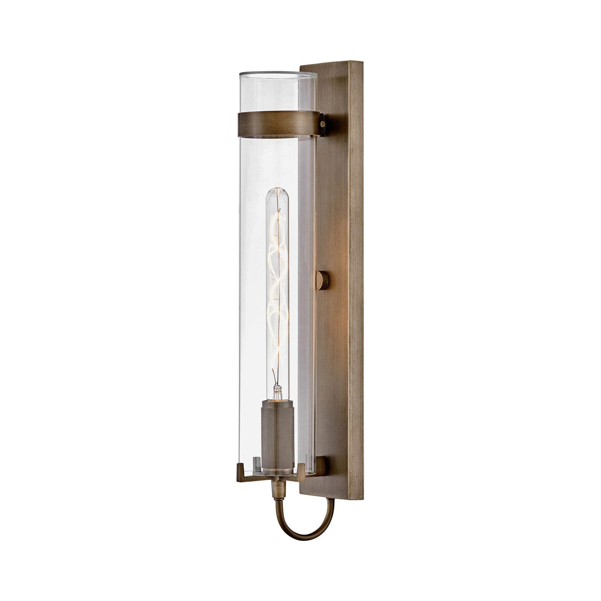 Lose yourself in the visual impact of an extraordinary exterior fixture with an elongated silhouette and sophisticated materials. Aluminum construction begins a classic look in the Ryden Outdoor Wall Light from Hinkley, adding extra style details and a sleek cuff to create spatial separation. Sparkling clear glass creates a cylinder shade, a reminder of the artisan influence this fixture presents.