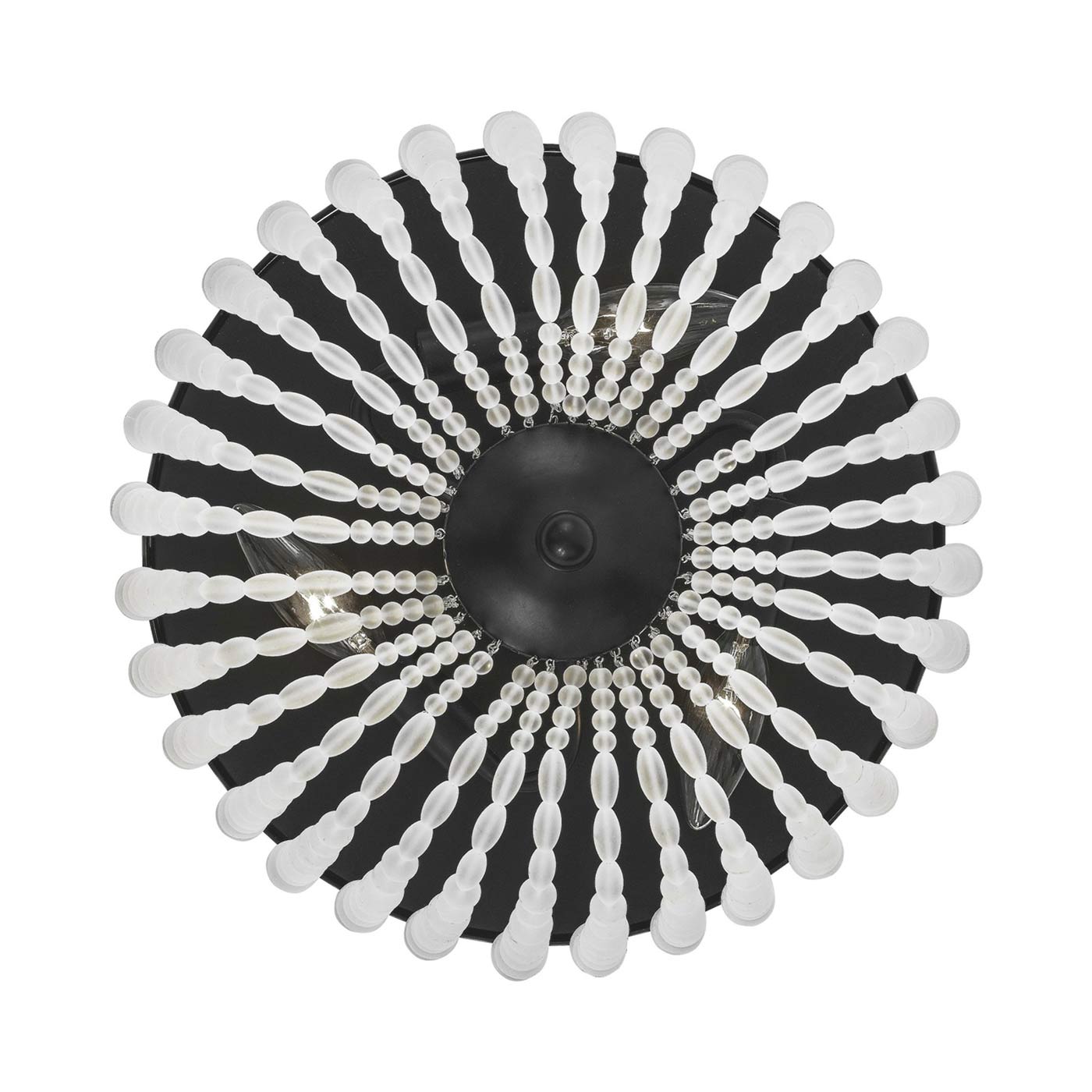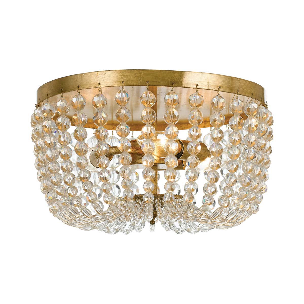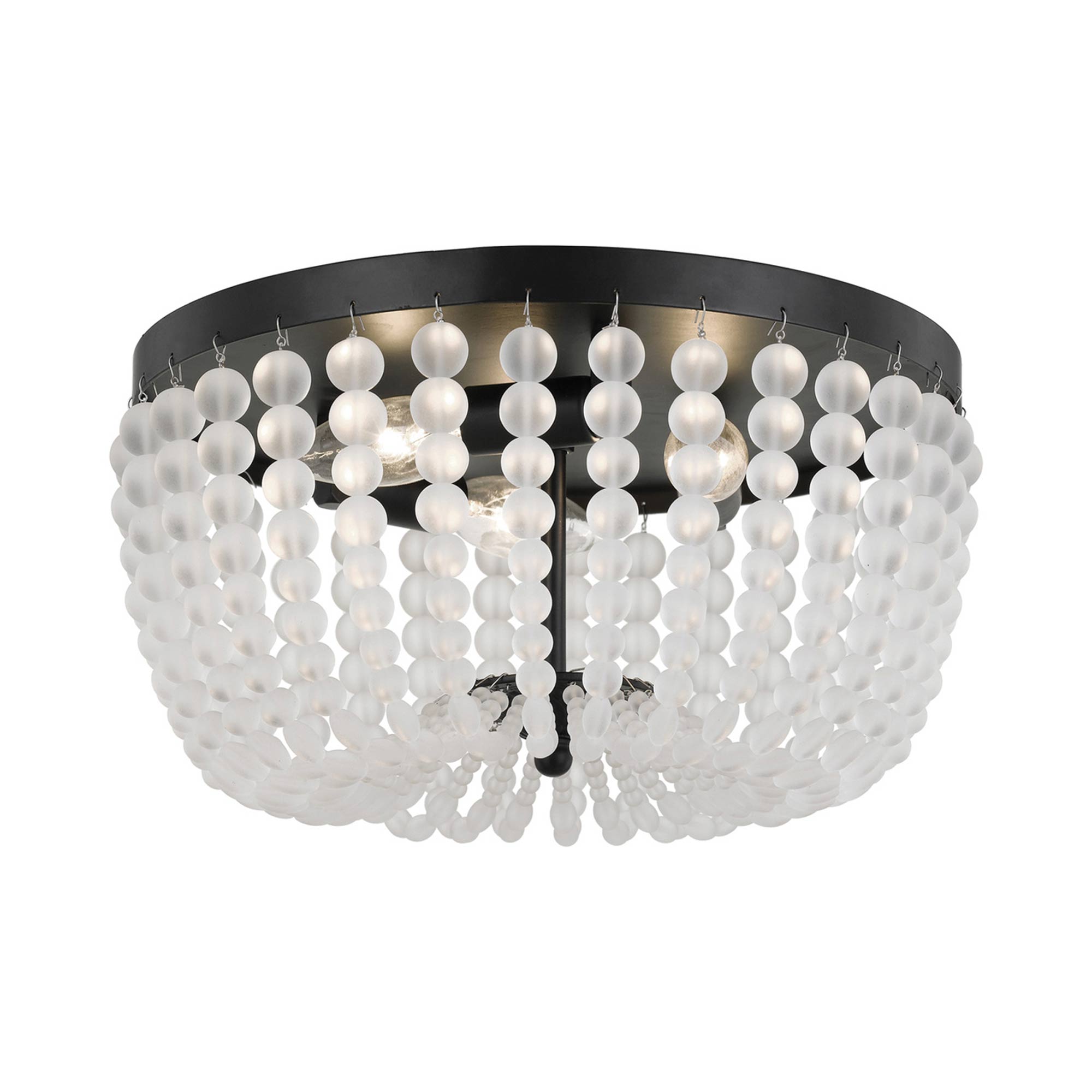 Traditional shade diffusion is replaced by artful beads, adding a textural and charming element to interior lighting. The Rylee Flush Mount Ceiling Light from Crystorama sends soft illumination escaping through slender openings, measuring light delivery in a careful manner. Metal framing with an ornate cap and interior lamping wraps up a host of stylish parts creating a fashion-forward look.