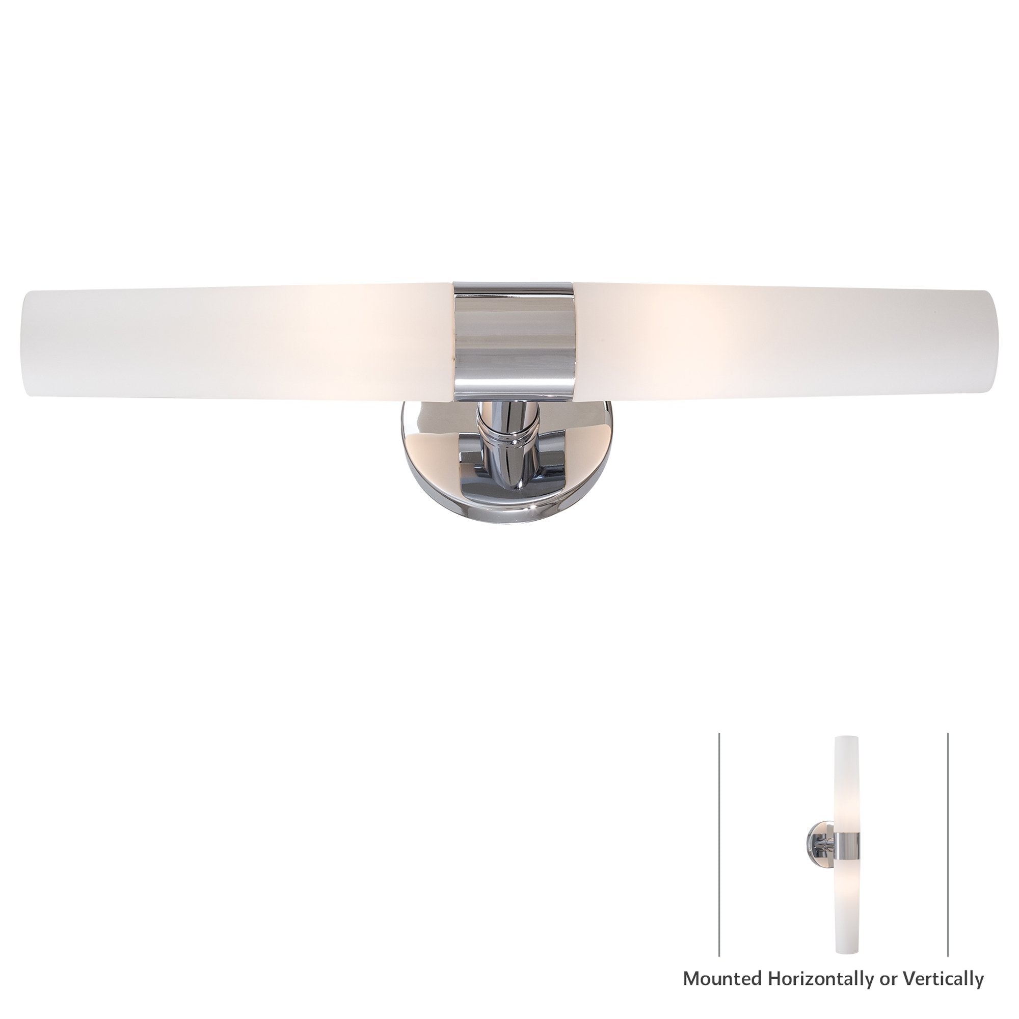A simple silhouette enhanced by touches of chrome lends elegant simplicity to the Saber Bath Vanity Light from George Kovacs.