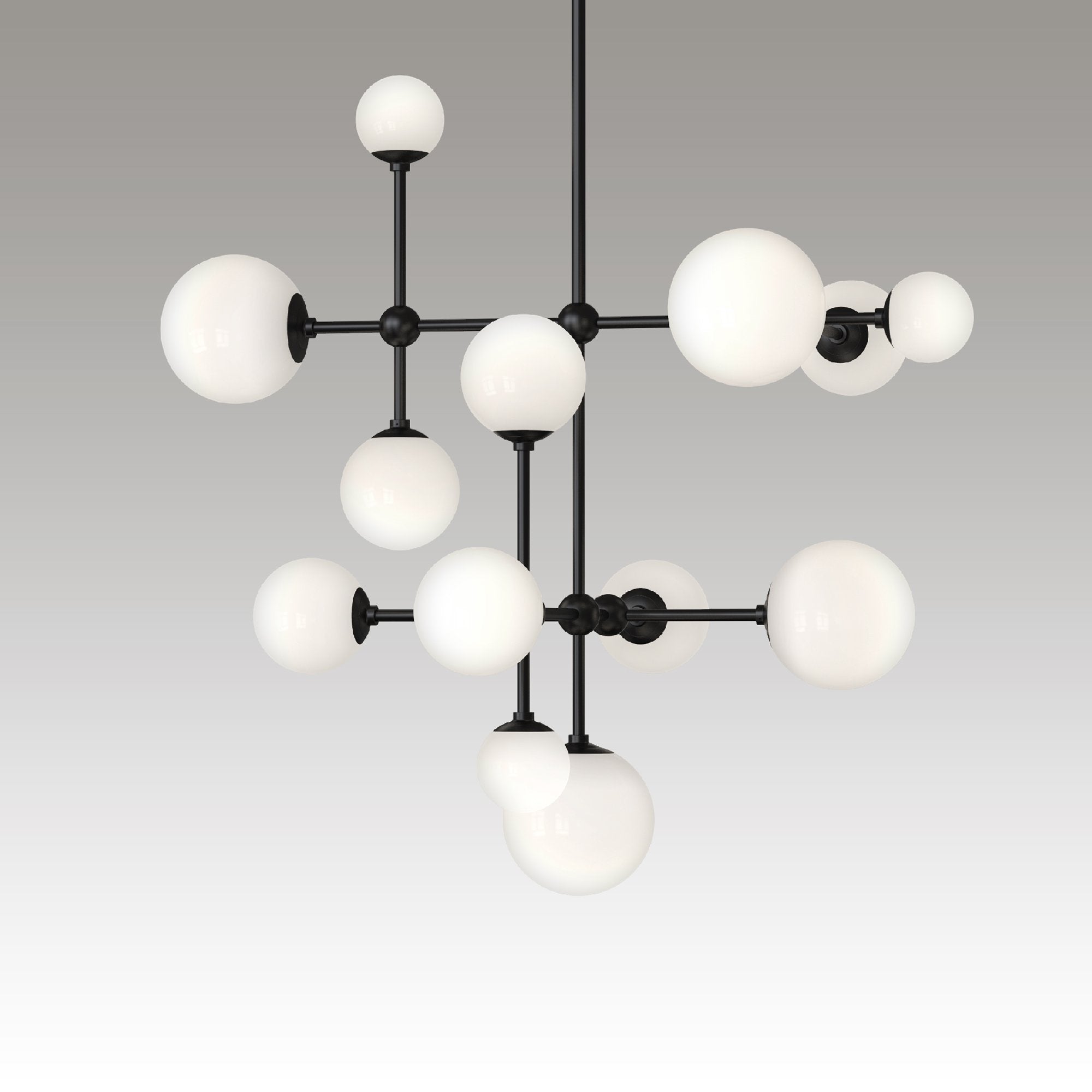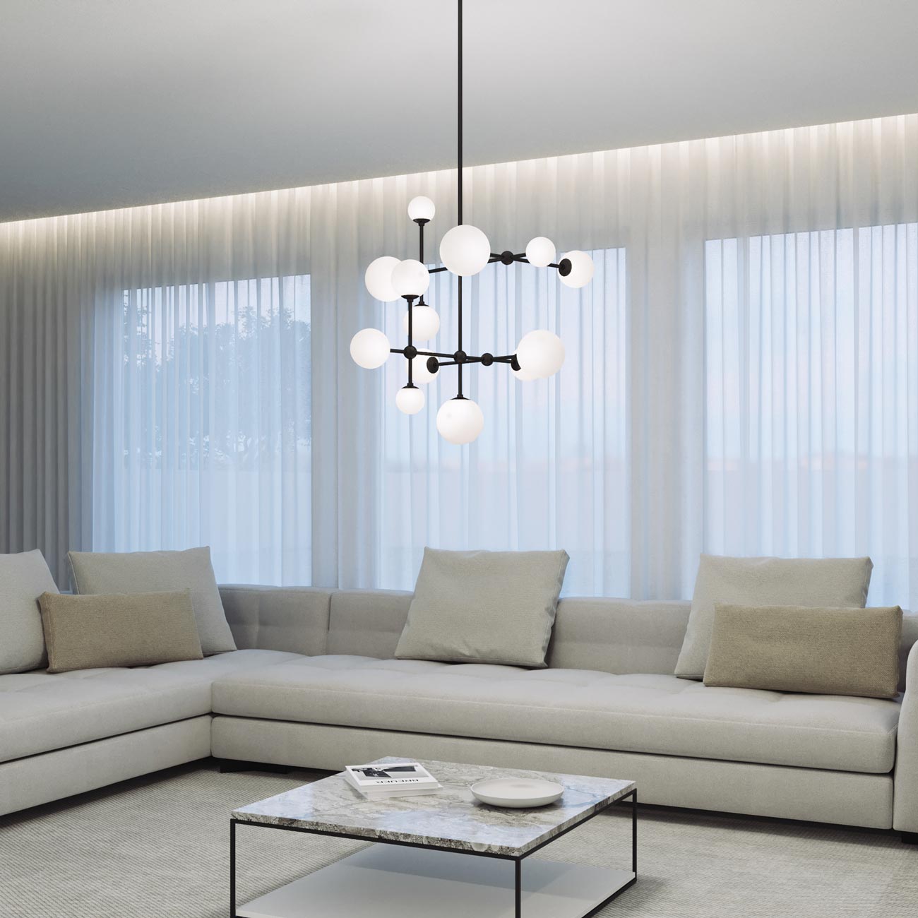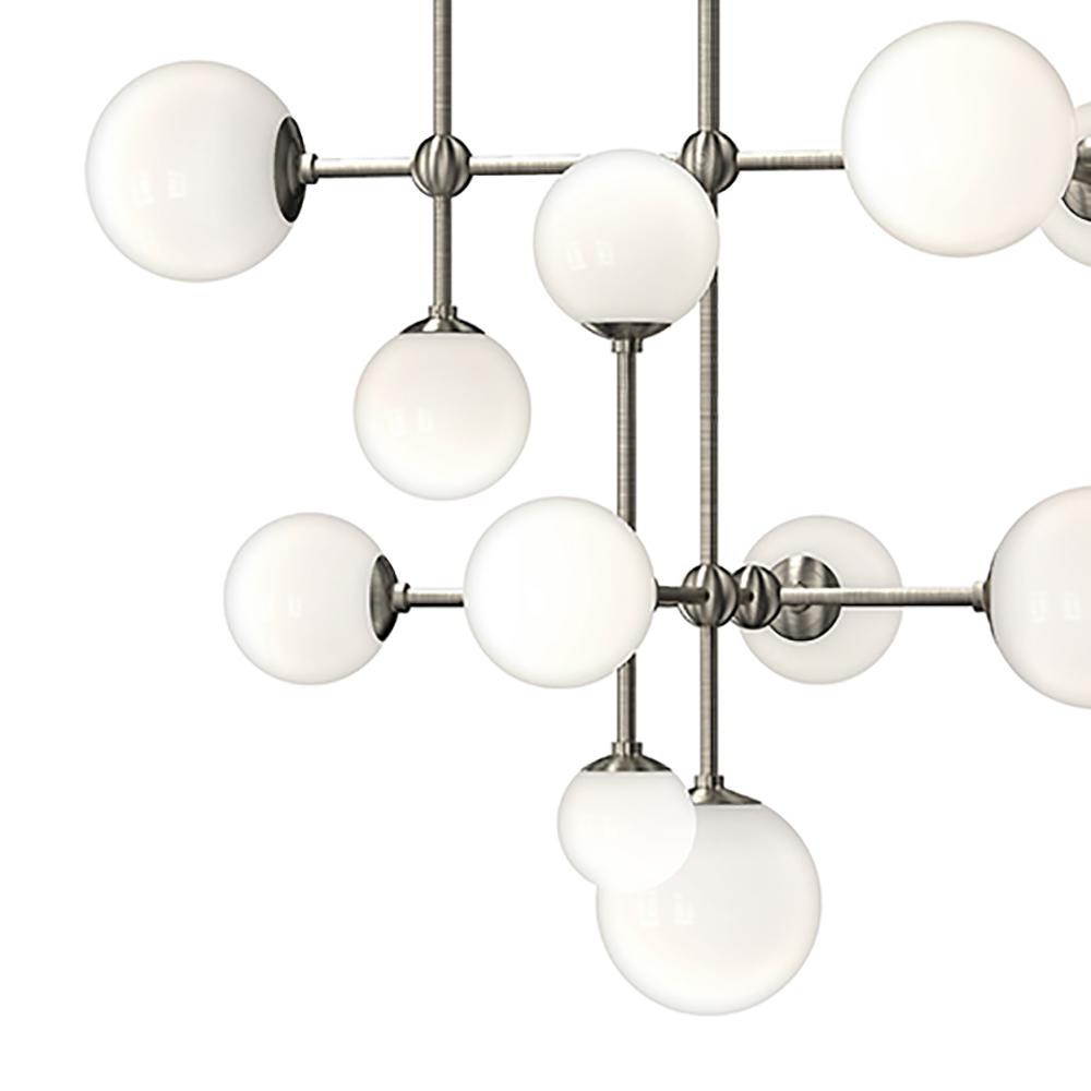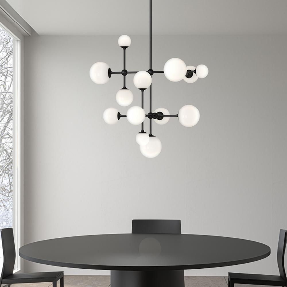 Striking a balance between space-inspired dynamic design and Art Deco retro appeal, the Sabon™ LED Pendant Light from Sonneman Lighting celebrates pops of illumination with white cased glass globes and linear metal frames, easily becoming a favorite part of interior décor.