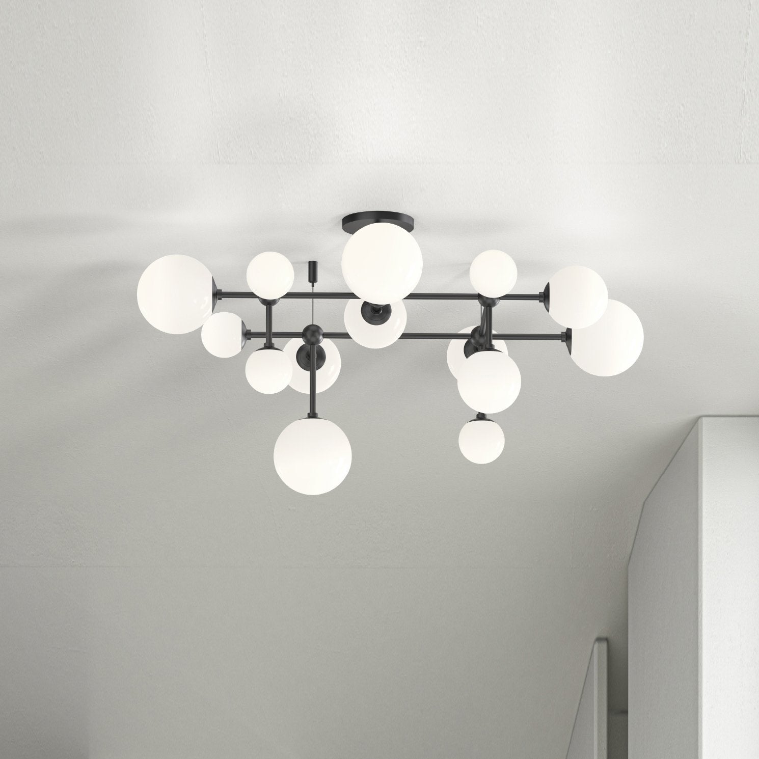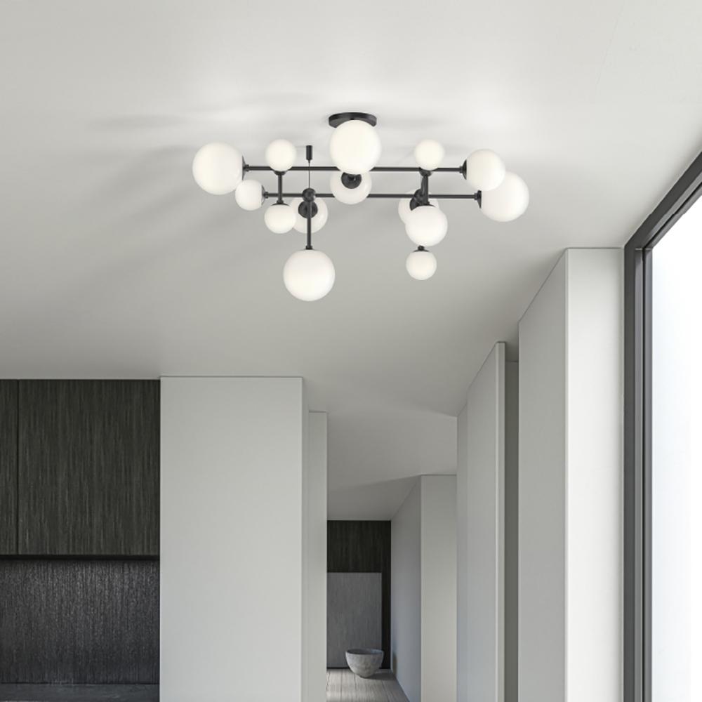 Update a casual kitchen or dining space with the retro-inspired Sabon™ LED Semi Flush Mount Ceiling Light from Sonneman Lighting, embracing a clean linear grid design with a metal frame and white cased glass orb shades.