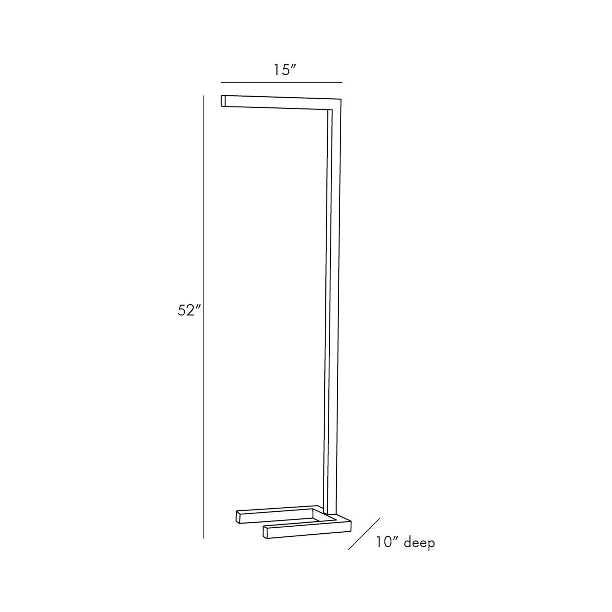 Sleek and simple in form and aesthetic this floor lamp exemplifies ultra-modern style. It’s built of steel to give it clean lines perfectly angular joints and a shiny polish; the completely linear frame allows it to tuck neatly into a reading chair or sofa to reduce its footprint in the room. An LED strip is nicely concealed into the frame. Fitted with a full range dimmer on a black cord.
