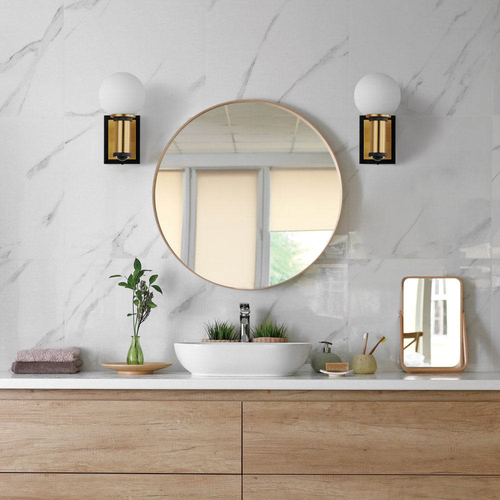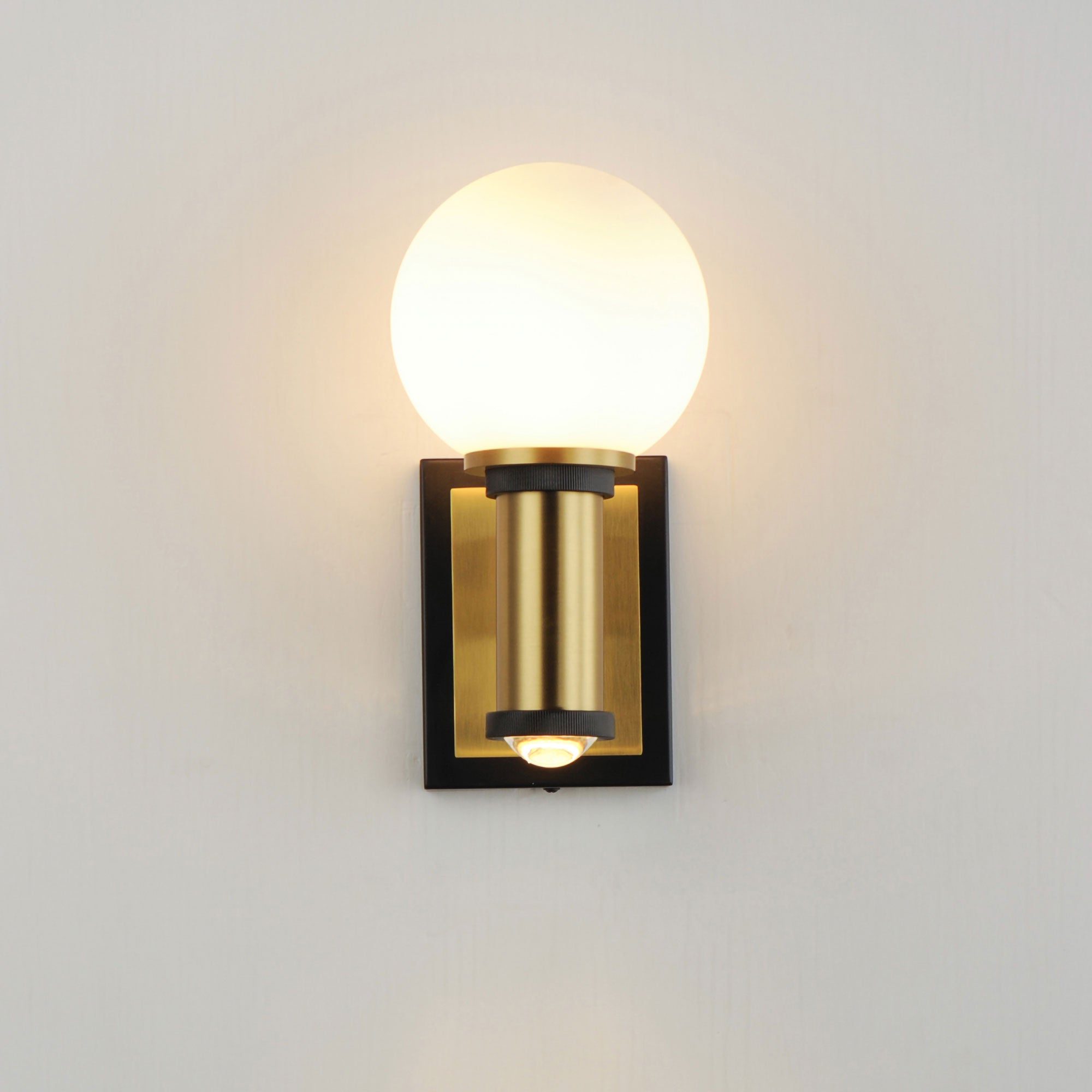 Classic and sophisticated style elements converge to create a bold aesthetic in lighting, ideal for making a statement in a transitional or modern setting. The San Simeon LED Wall Light from Maxim Lighting embraces basic geometric shapes with metal framing and trim. An ebullient glass sphere warms with glowing light that spreads around an entire space.