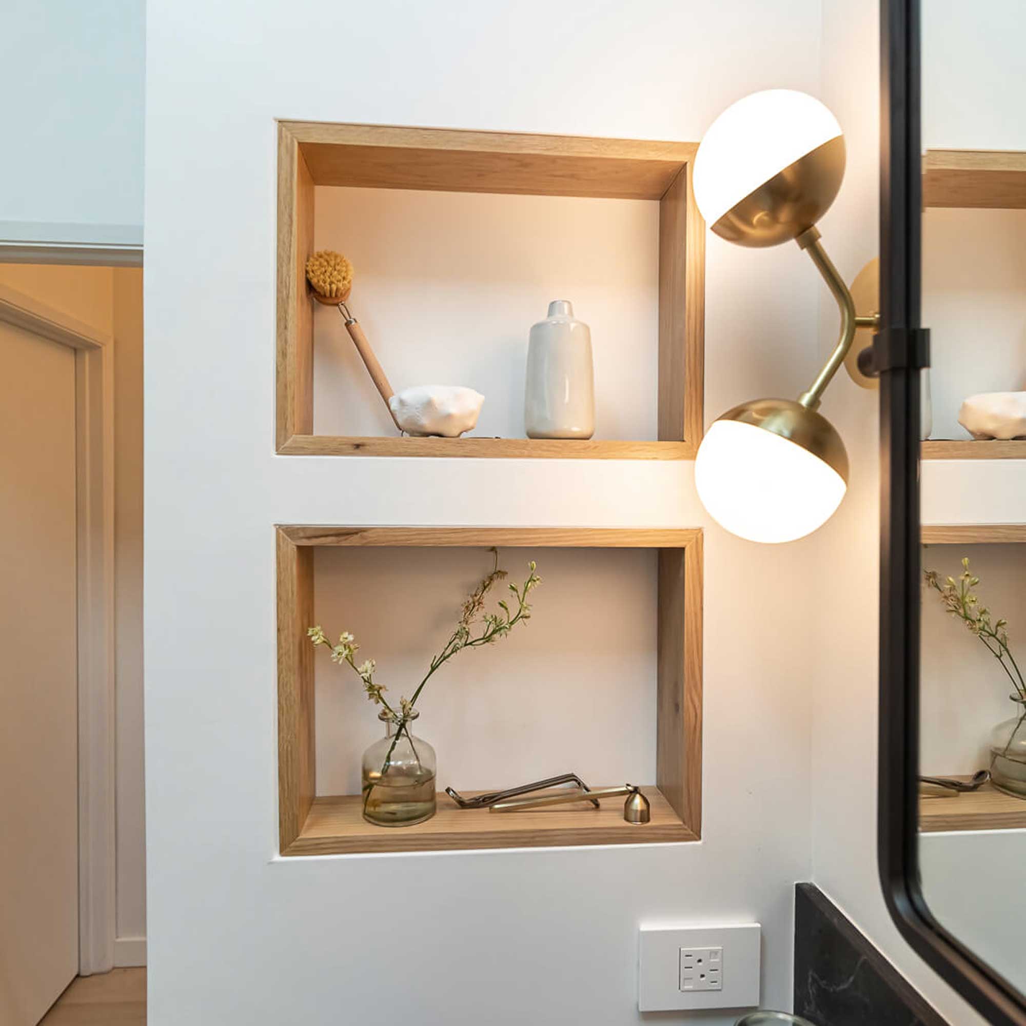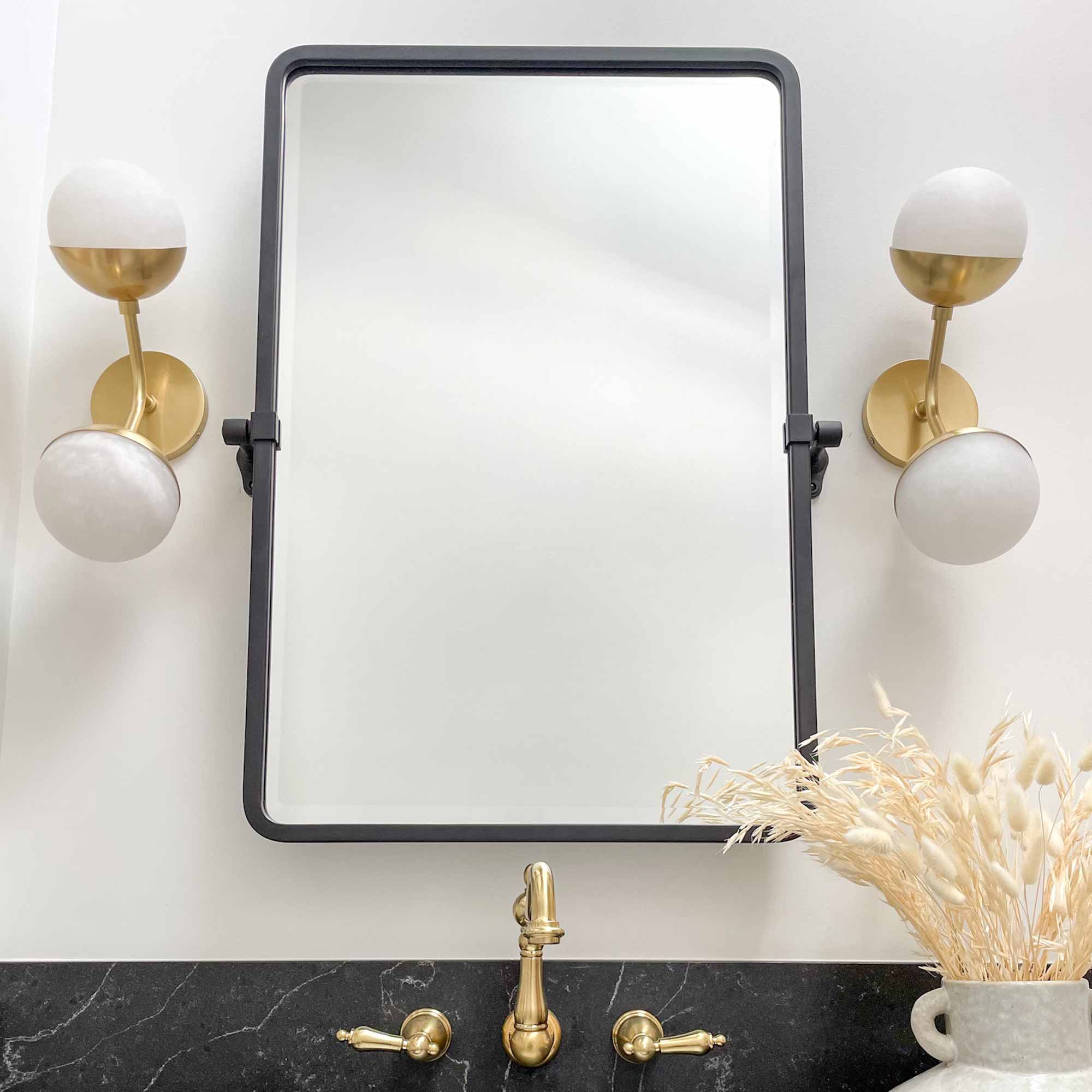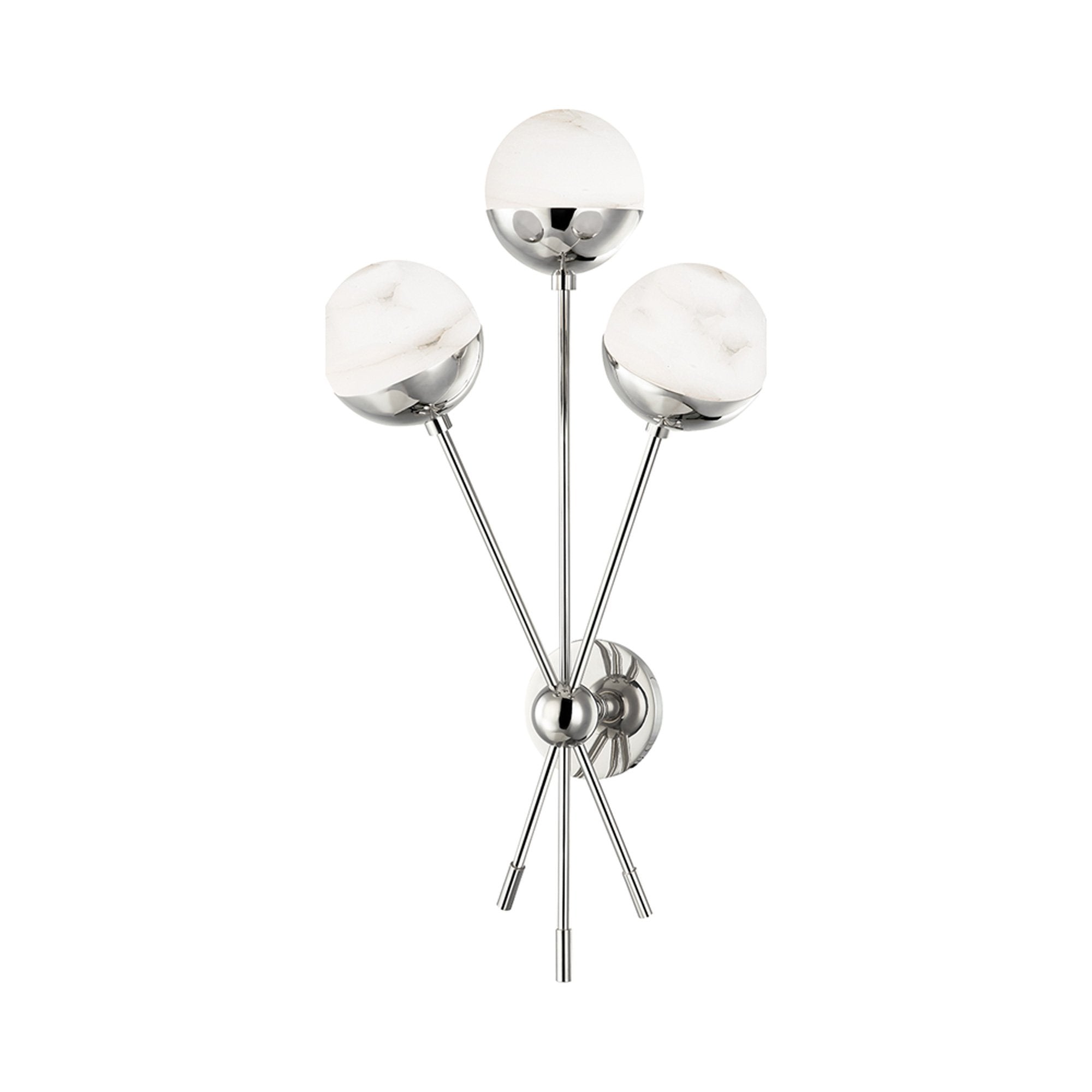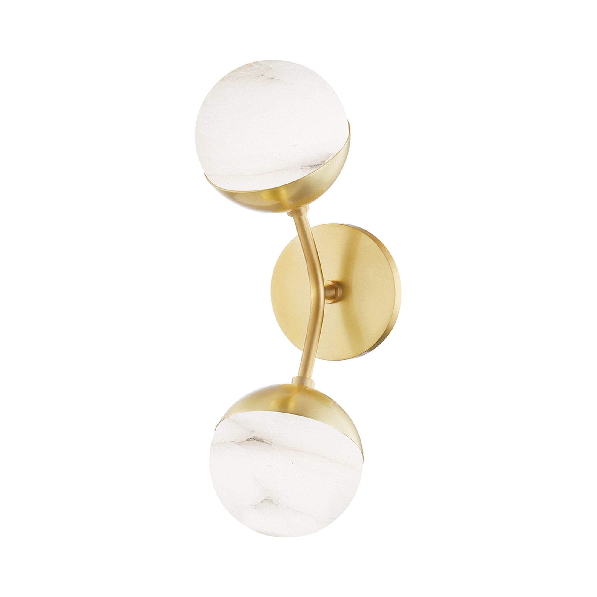 Alabaster globe shades bring a beautiful glow to the energy-efficient Saratoga LED Wall Light from Hudson Valley Lighting.