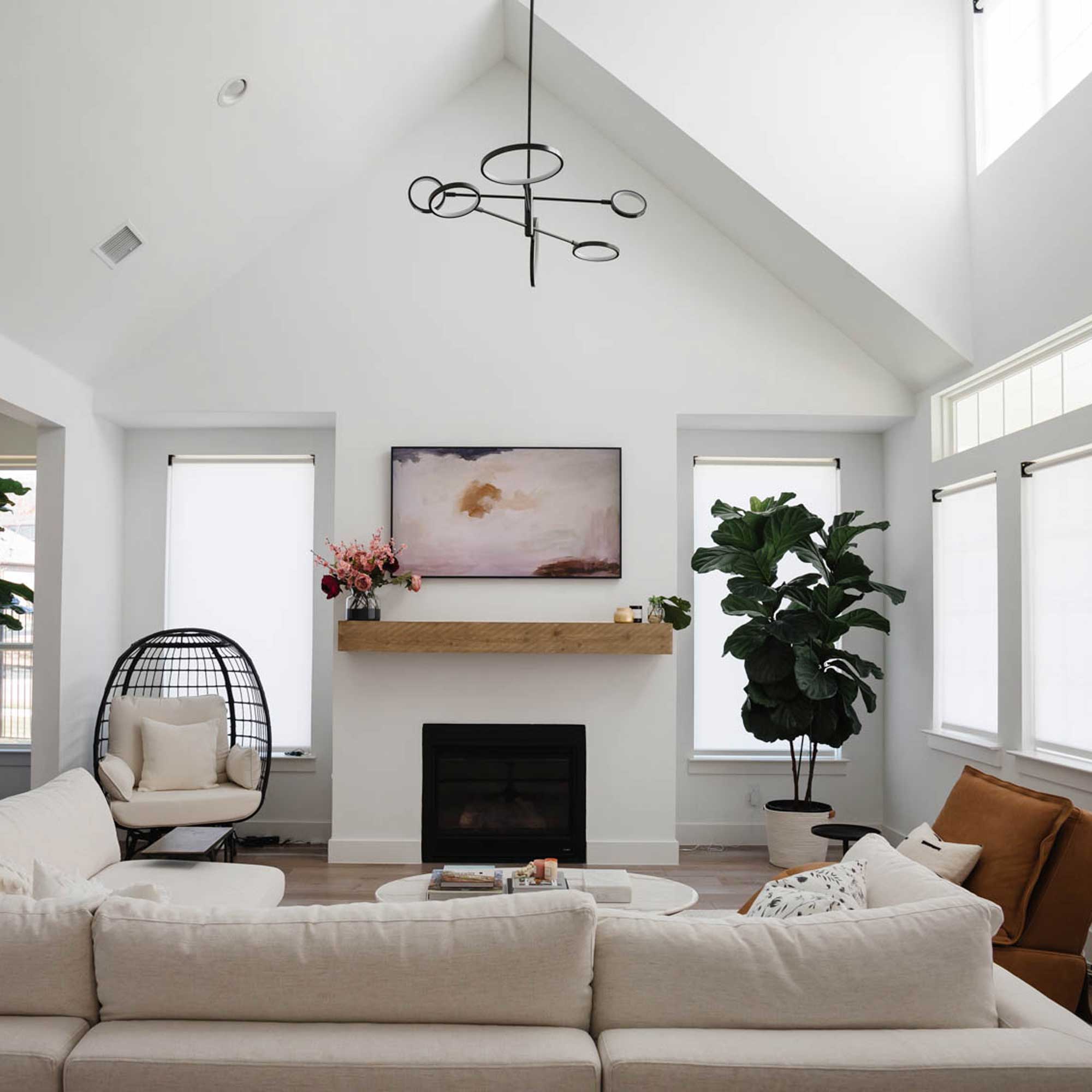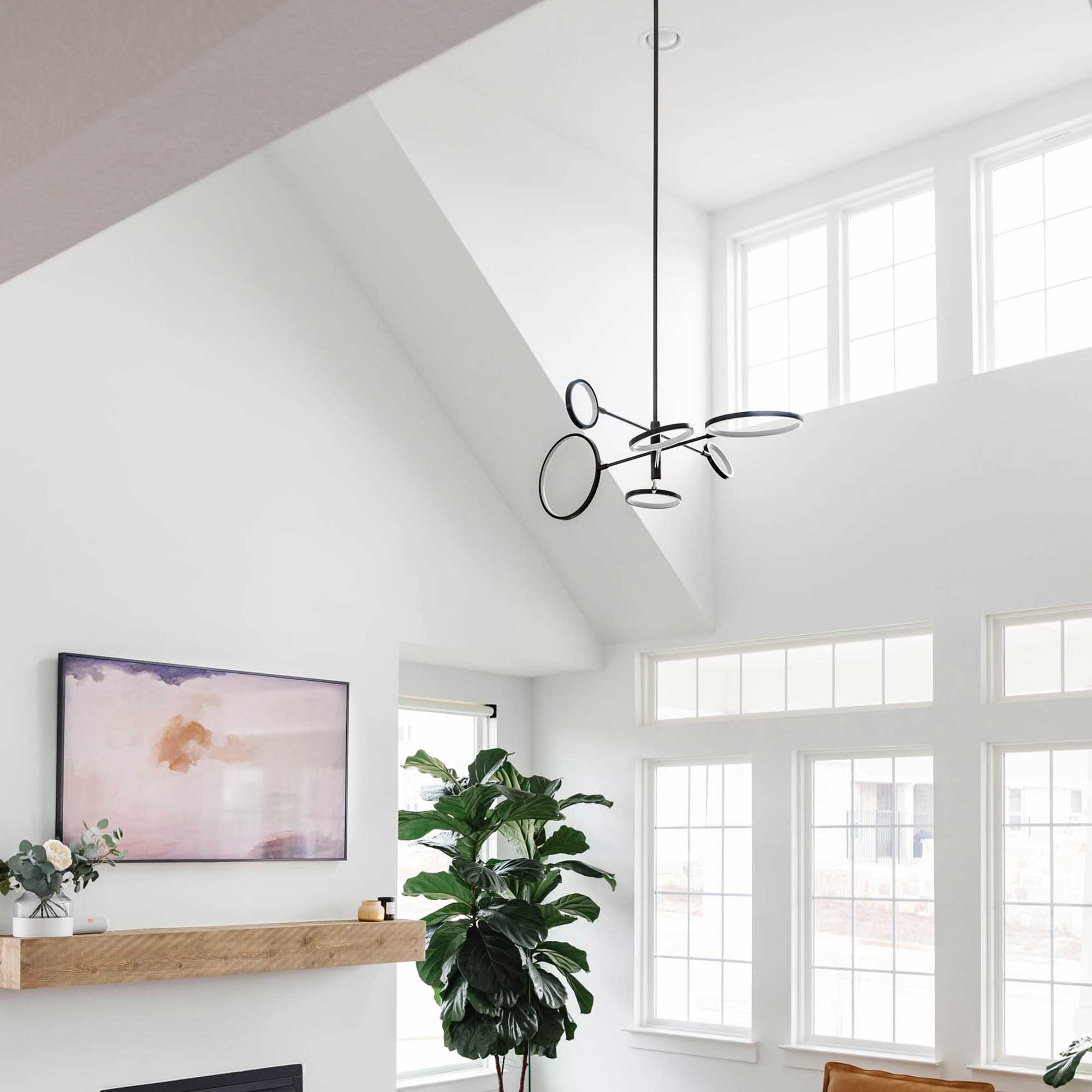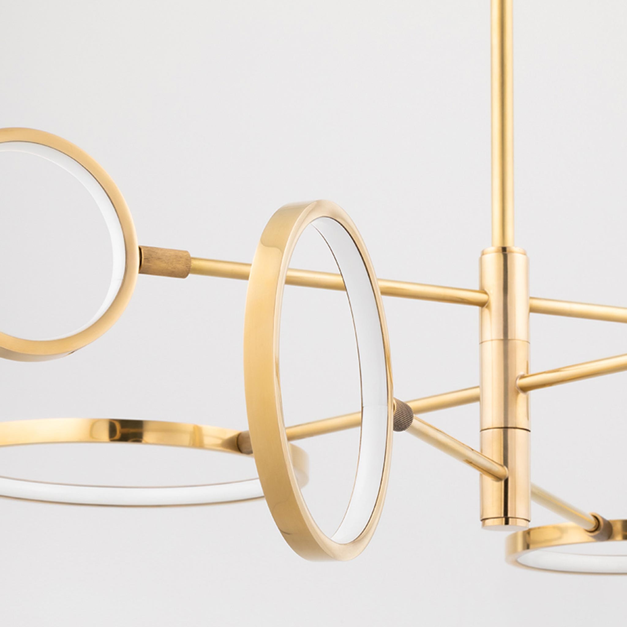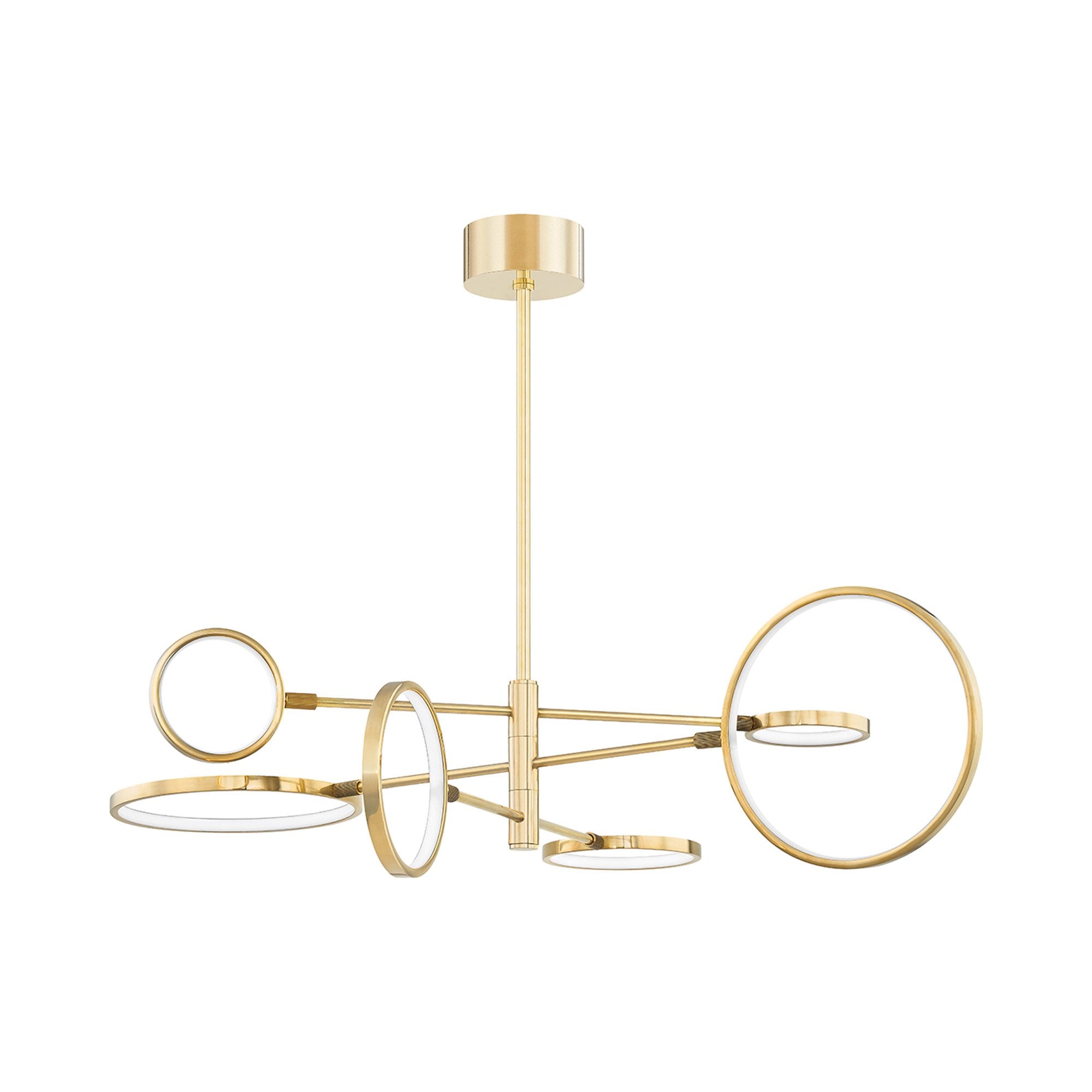 Utilizing both the vertical and horizontal plane, the Saturn LED Chandelier from Hudson Valley Lighting shows off impressive asymmetric balance.