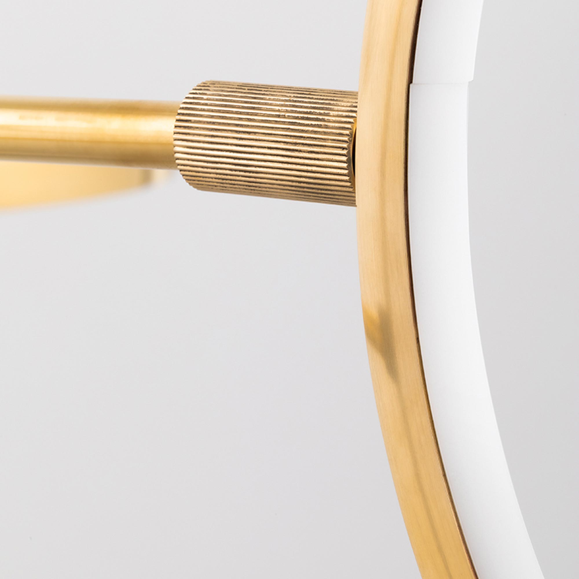 Orbs of light highlight the asymmetric sensibility of the energy-efficient Saturn LED Wall Light from Hudson Valley Lighting.