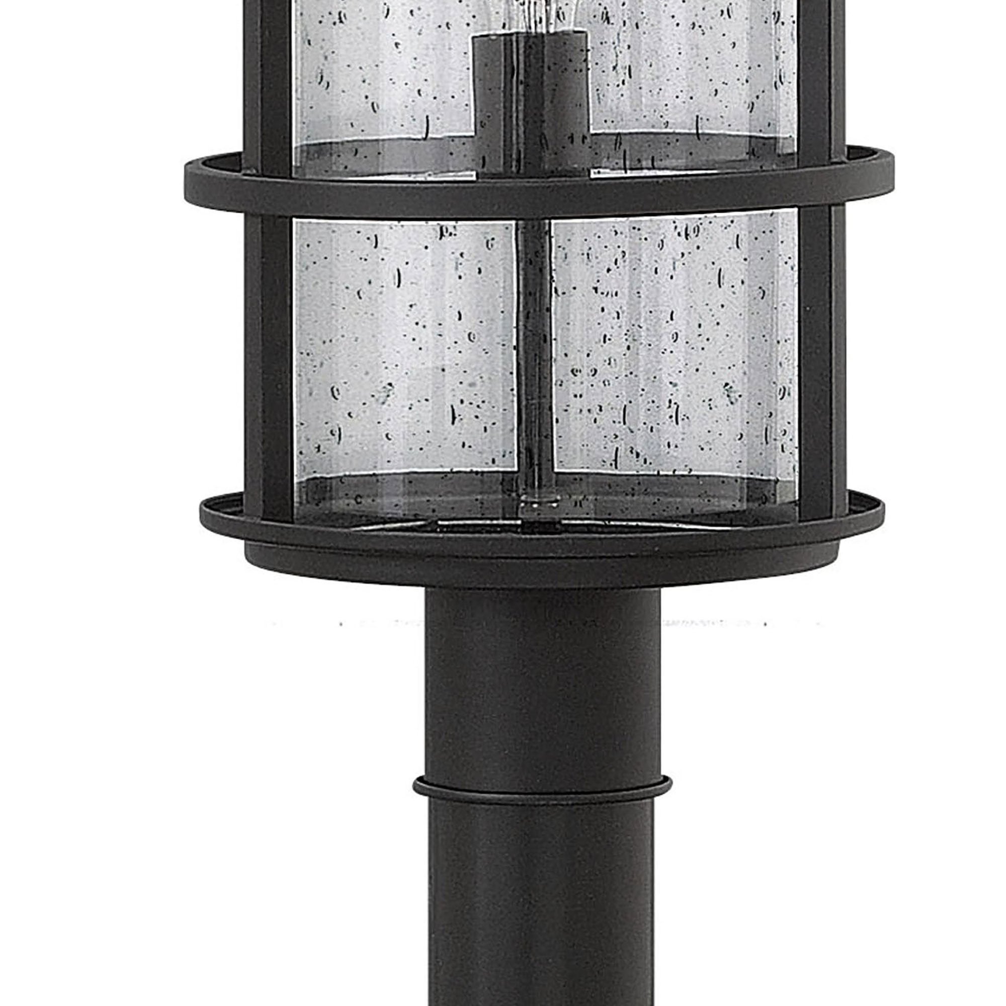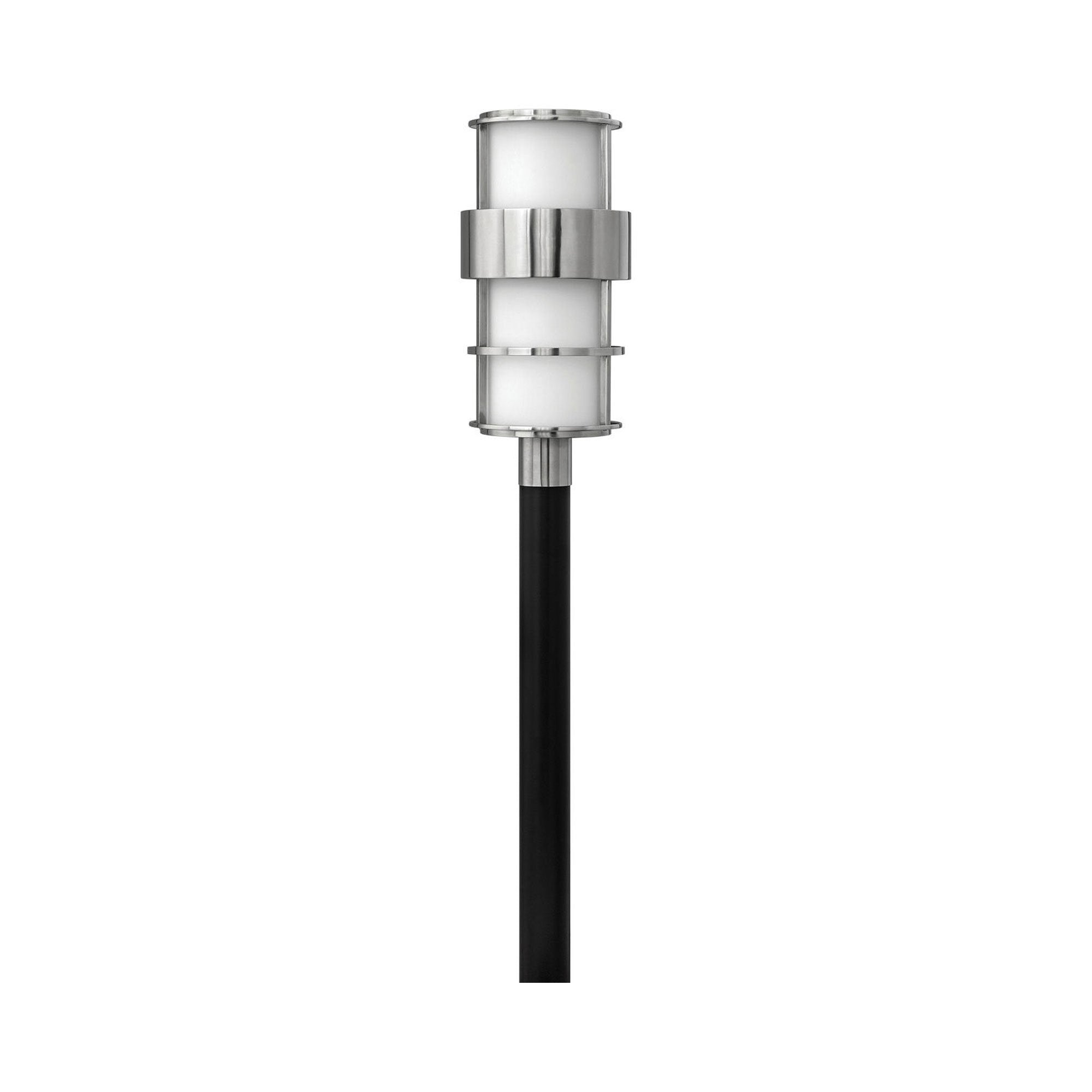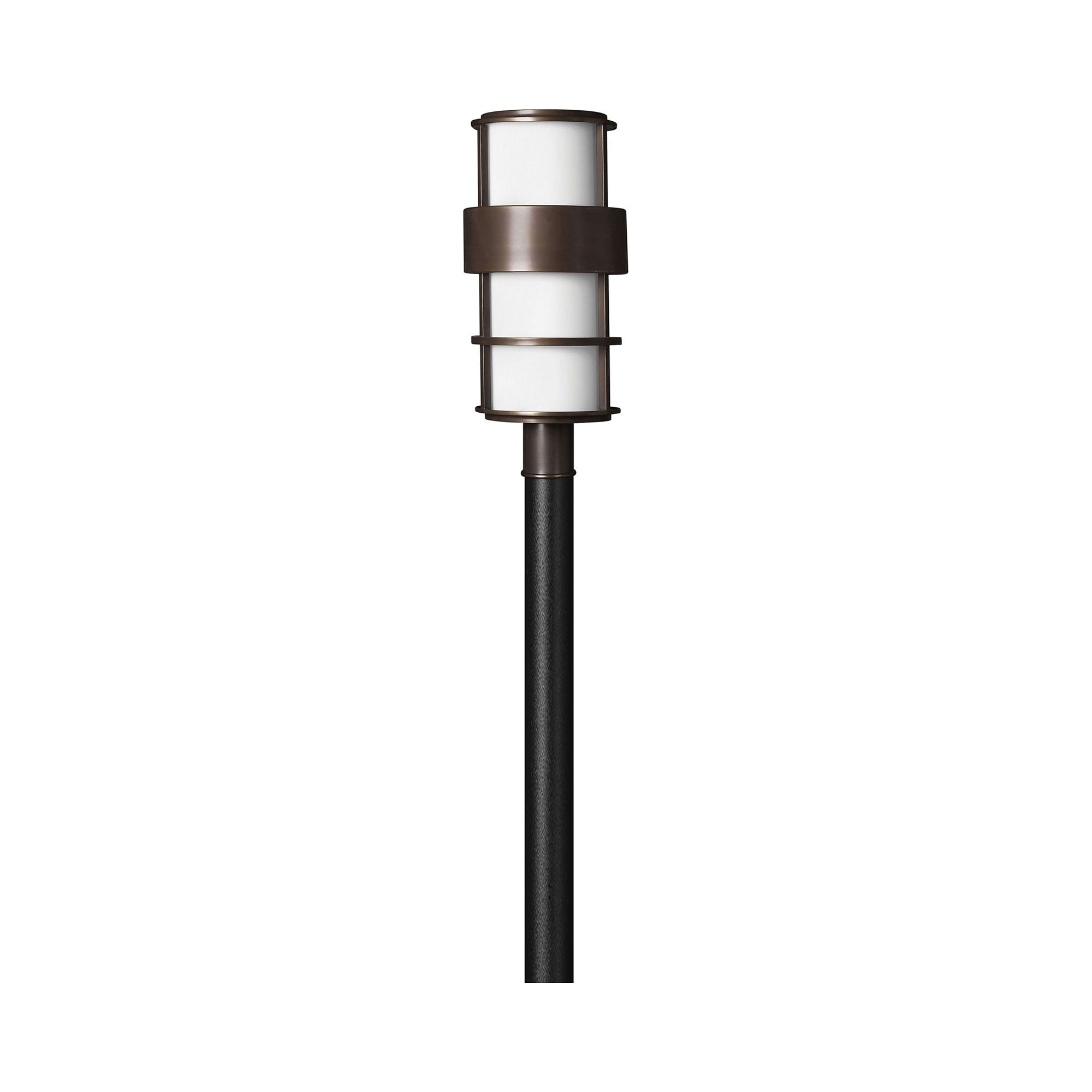 Saturn Outdoor Post Light is a stunning; modern design offering robust construction and intersecting lines that create a striking contrast against the etched opal or clear seedy glass.