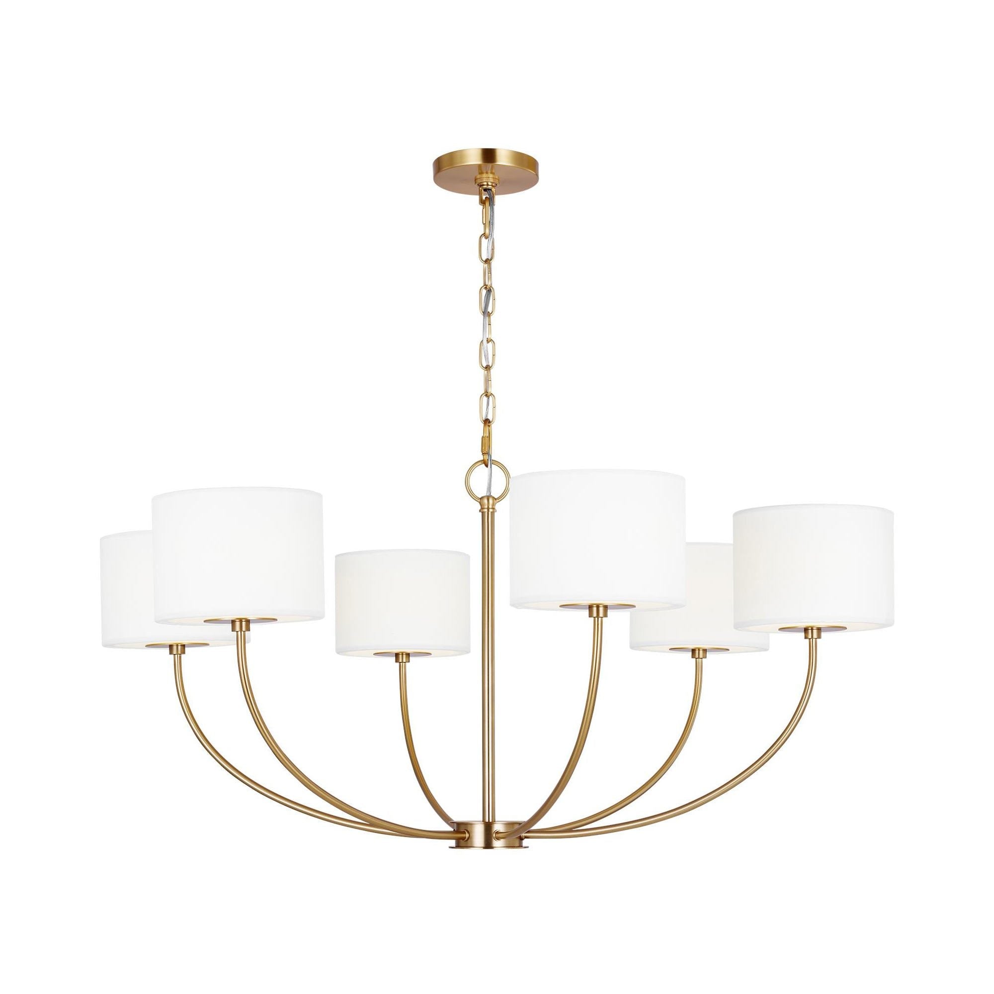 Inspired by Kate Spade whimsical geometry and playful lines, Sawyer has a striking silhouette with graphically taped shades. The Sawyer Chandelier by Kate Spade New York in burnished brass/polished nickel is a wide playful chandelier with arched lines and wide, graphically taped shades. This simple and graphic chandelier would be great over a dining table or nook, as well as in a living room scenario.