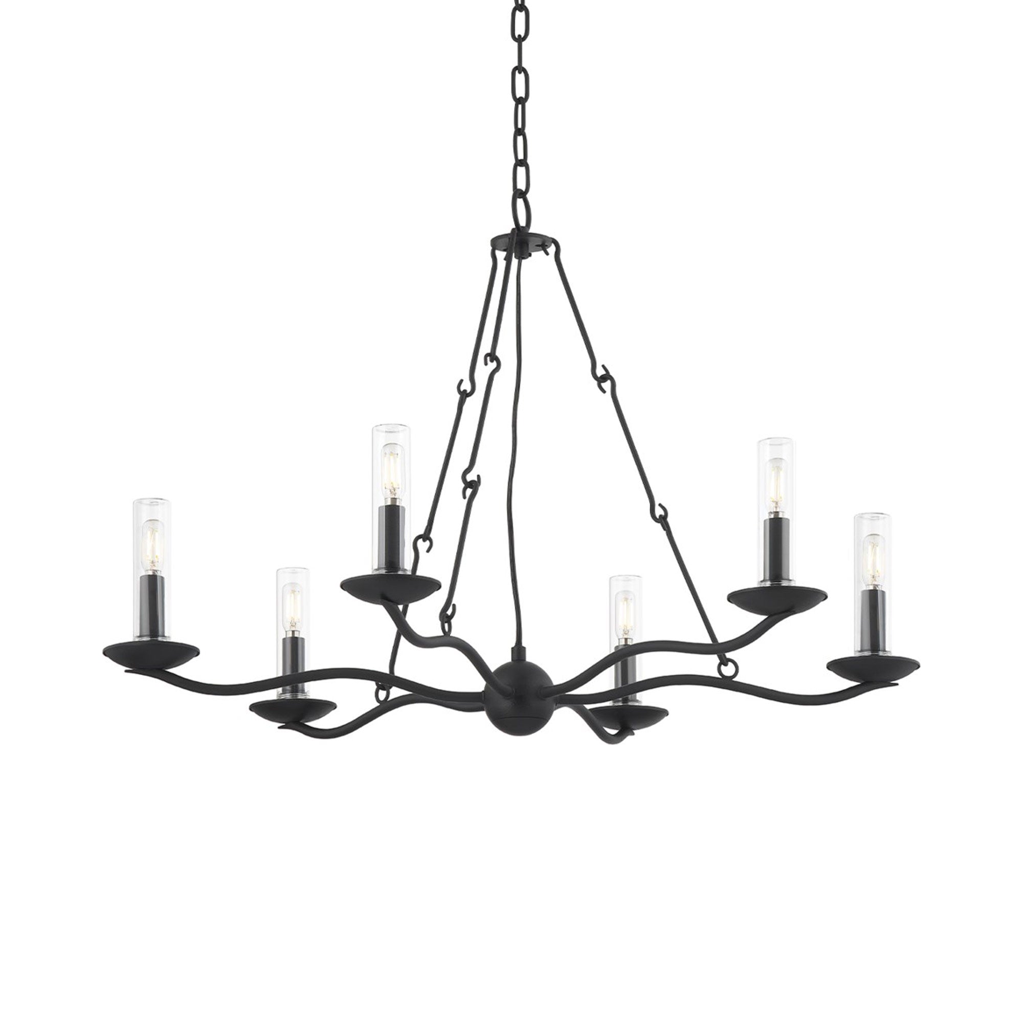 Create a dramatic patio or gazebo ensemble with the elegant Sawyer Outdoor Chandelier from Troy Lighting. Focused on light artistry, this forged iron finish metal fixture is a superb mix of chic and gritty industrial, striking a compromise and offering ambient illumination through delicate glass covered candlestick holders.