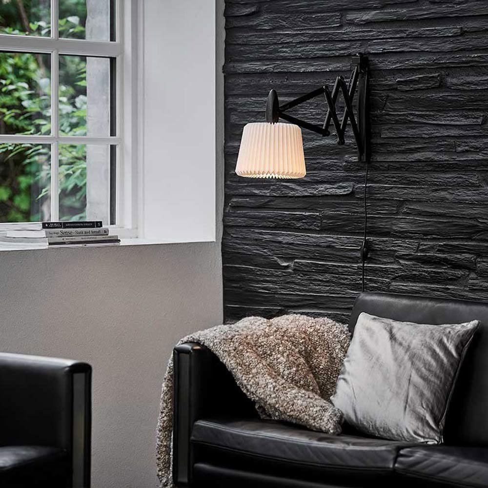 Light design elements create organic inspiration as the Sax 223 Wall Light from Le Klint blends style and versatility into a single fixture. Wood framing with a retracting scissor arm mechanism creates a charming look of casual ambiance. An accordion shade made of paper filters ambient lighting.