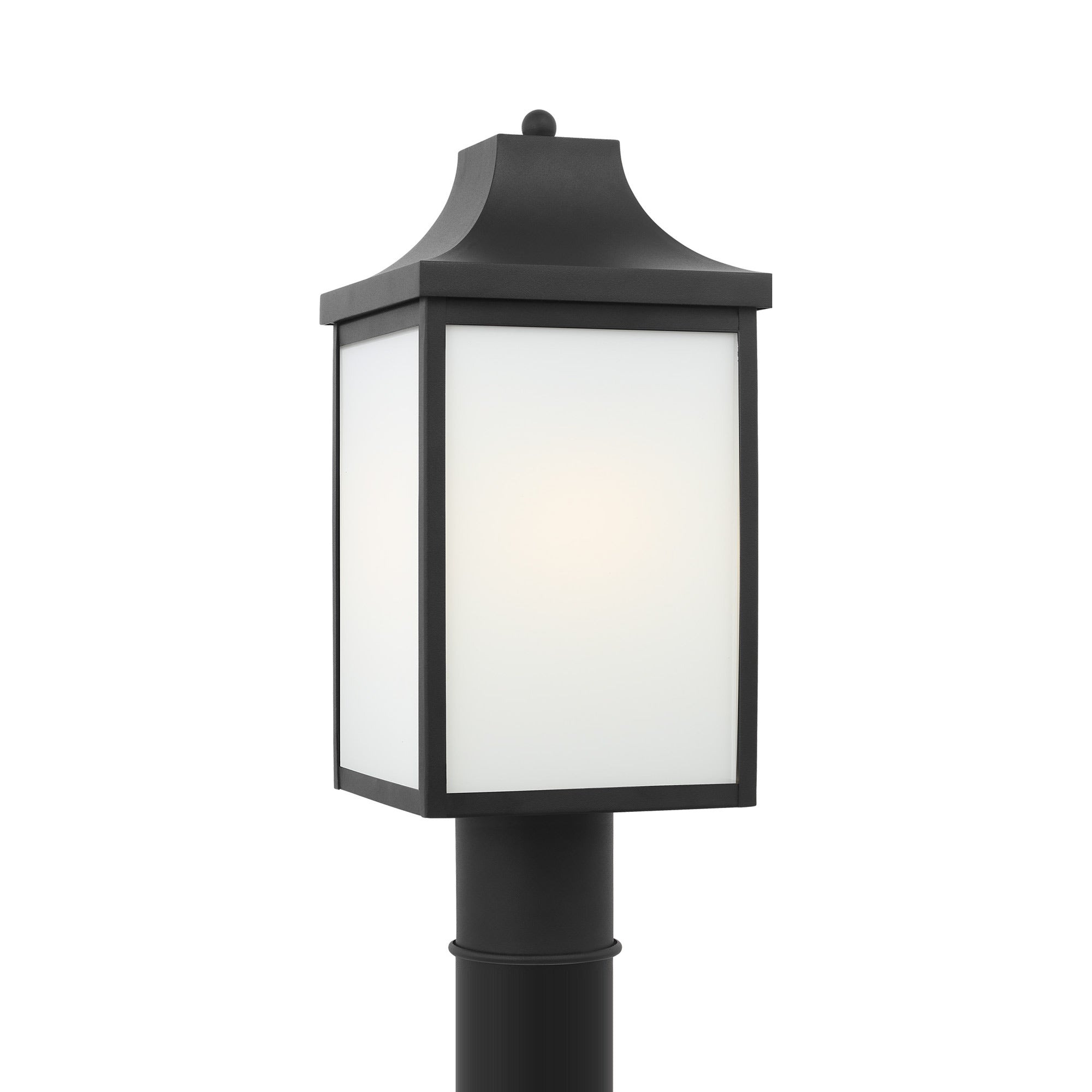 Low key village charm reworks a lantern motif to fashion an exterior light adding romance to a pathway or garden space. The Saybrook Outdoor Post Light from Generation Lighting blends beautifully with a casual design motif, delivering an iconic mix of metal and glass with crisp, linear silhouetting.