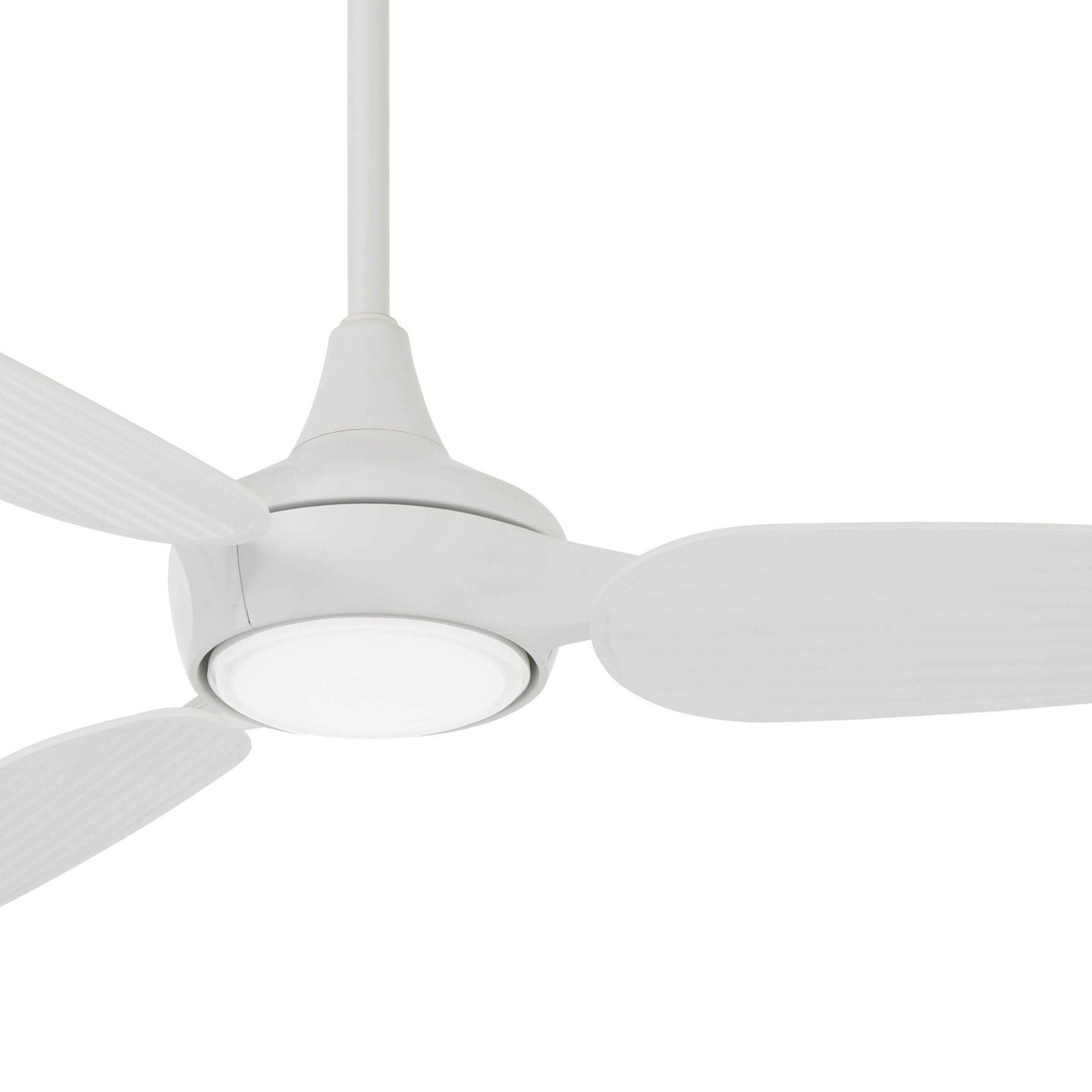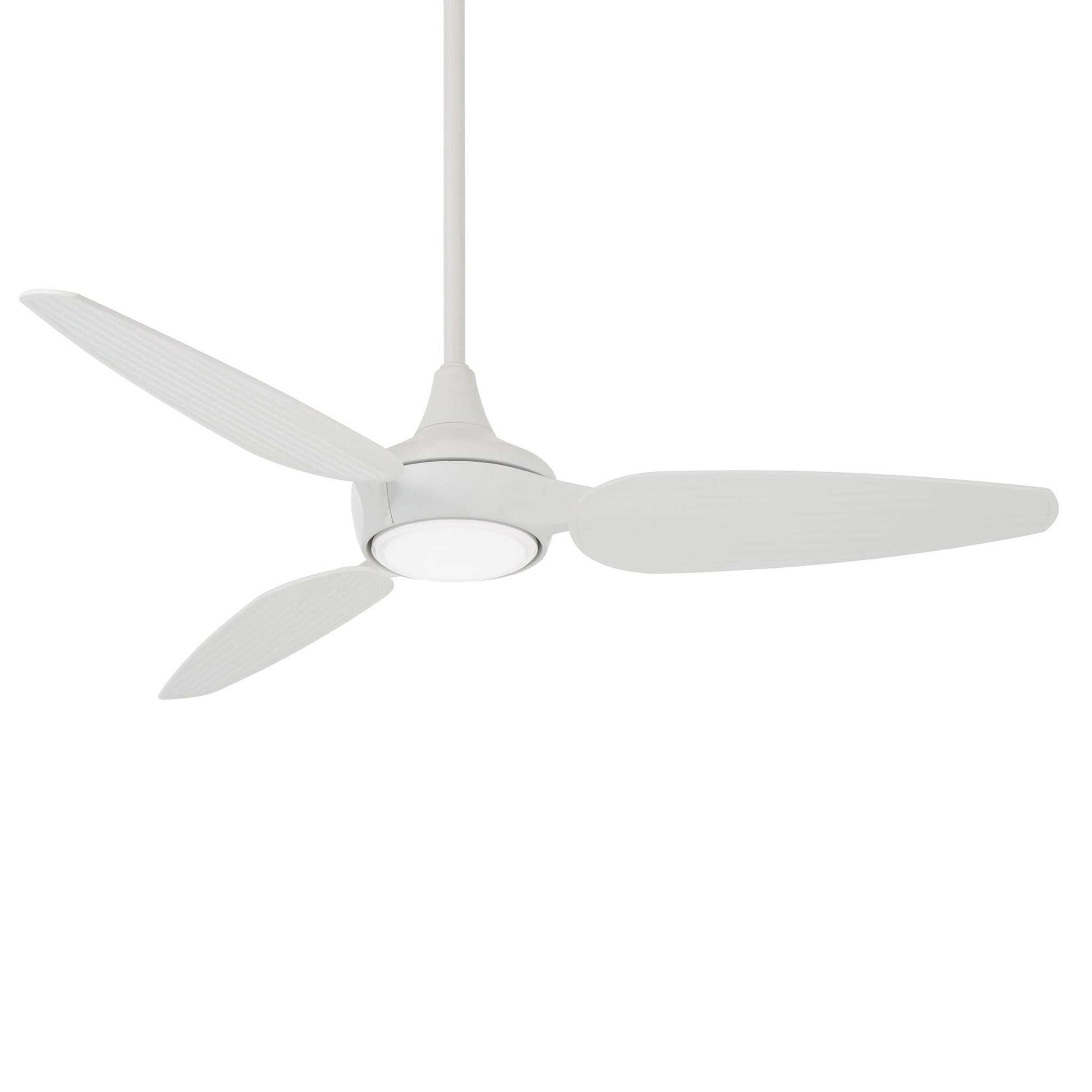 Smart technology multiplies the utilitarian features of the Seacrest Outdoor LED Smart Ceiling Fan from Minka Aire, adding convenience to a simple yet romantic design. This three-blade, energy-efficient fan and its three contoured blades diffuse ambient lighting through a chic etched glass shade, with handy control functions in a hand-held remote featuring a canopy receiver.