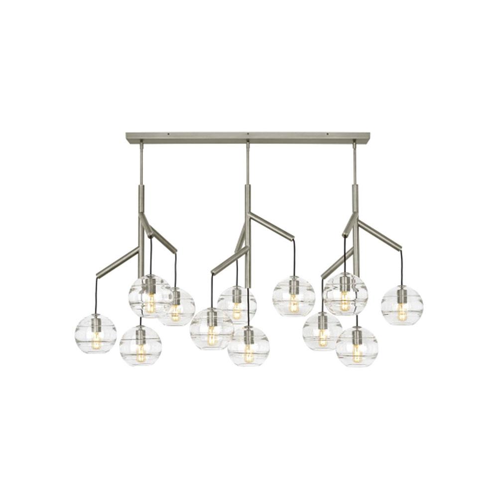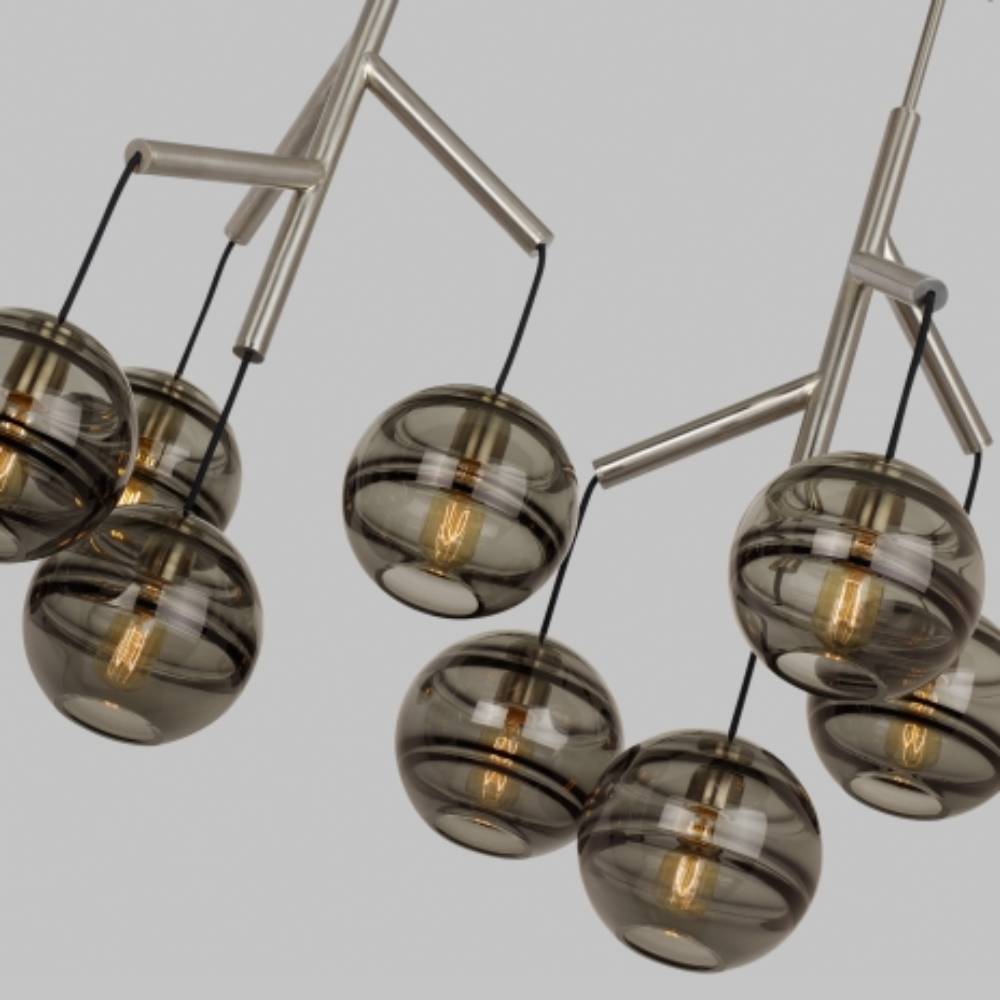 The Sedona Triple Chandelier from Visual Comfort Modern perhaps is best described as a deconstructed modern chandelier, where four glass orbs are each suspended from the sleek branchlike central hub via contrasting textured cloth covered cords to make a distinctly alluring visual statement. While each transparent clear or transparent smoke glass orb is perfectly spherical and smooth on the exterior surface, the interior surface features gradually thickening bands of glass which are artfully crafted by talented artisans to add alluring visual interest and dimension to your space. Whether you select the single, double or triple chandelier, you are sure to find a option perfect for your kitchen island lighting, dining room lighting or living room lighting application. Its two fully dimmable vintage tubular style LED lamping options are not only energy efficient, but also allow you to customize these pendant lights to your desired ambiance.