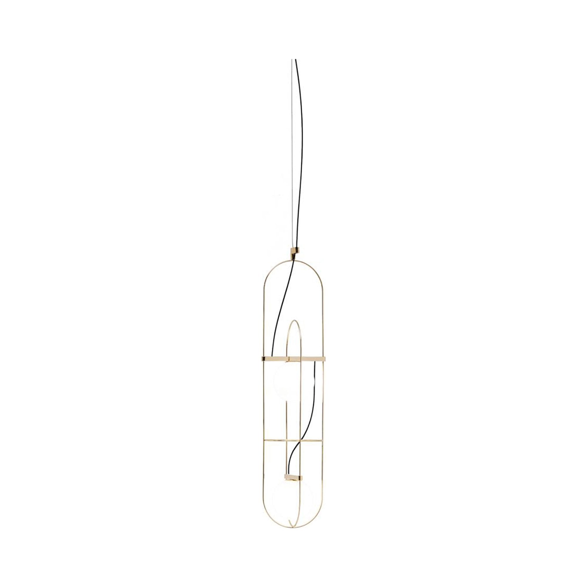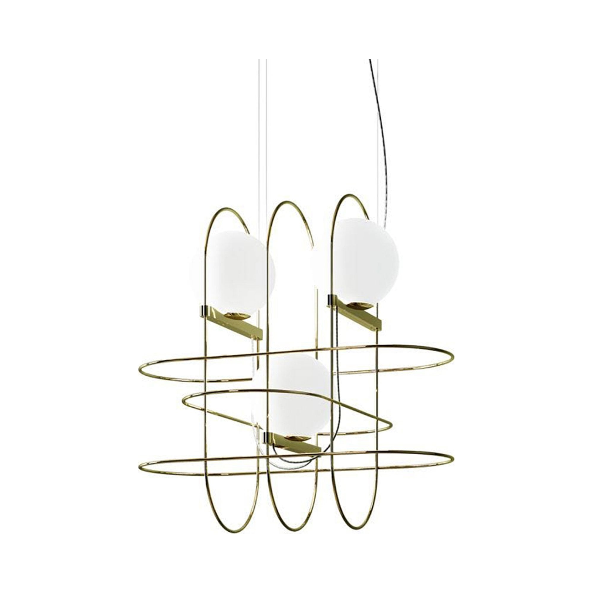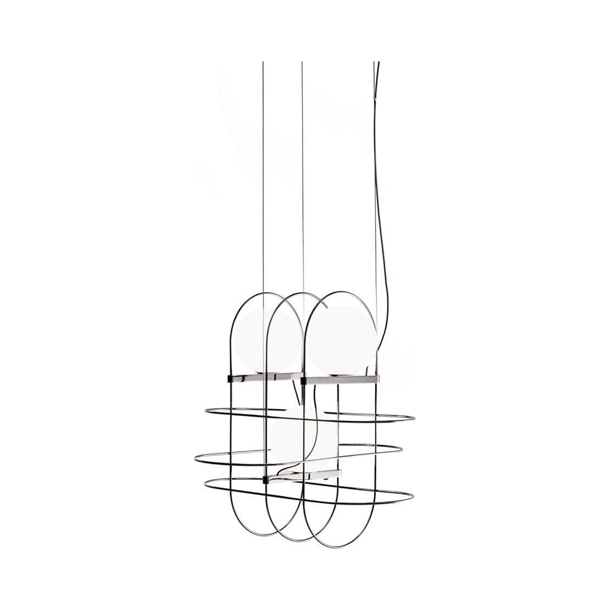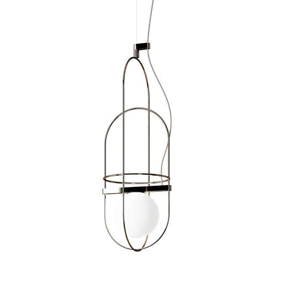 A sphere suspends seamlessly within the open cage featured on the Setareh LED Pendant Light from FontanaArte. Architectural in its precision, the pendant is a stellar choice alone or clustered.