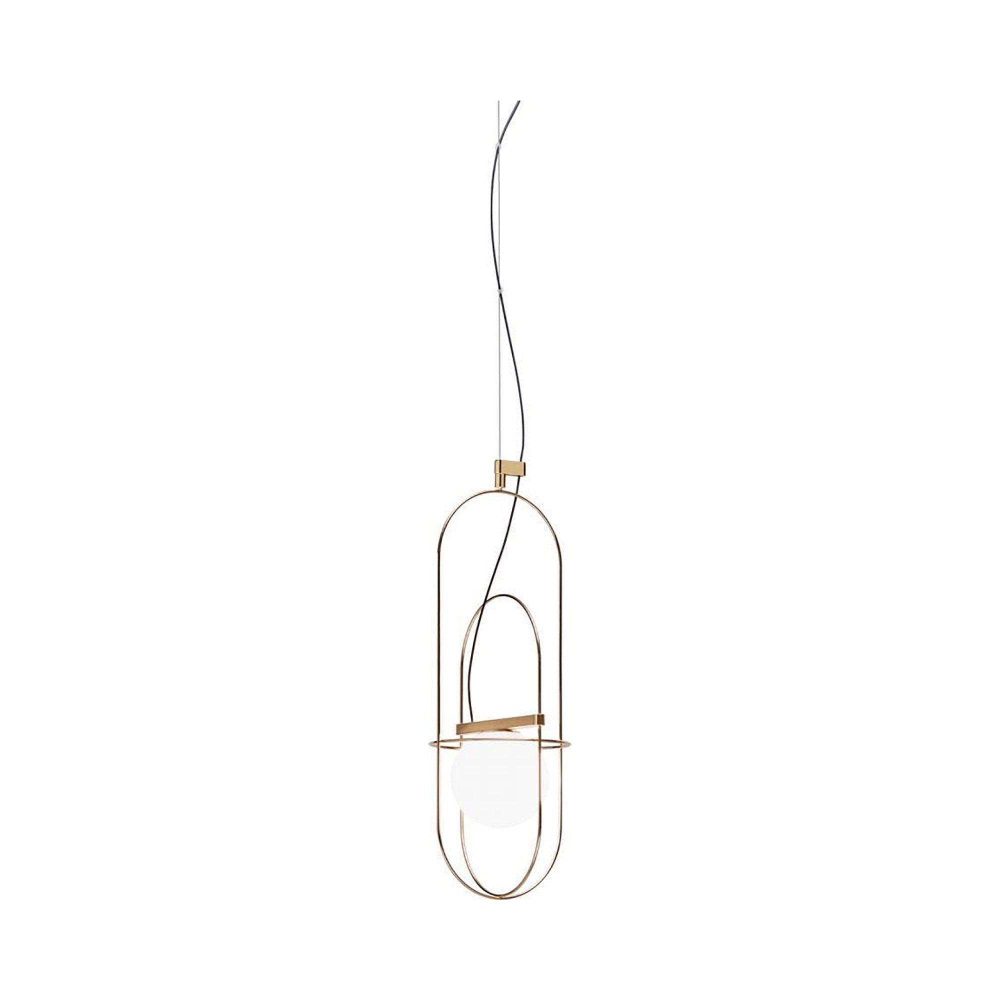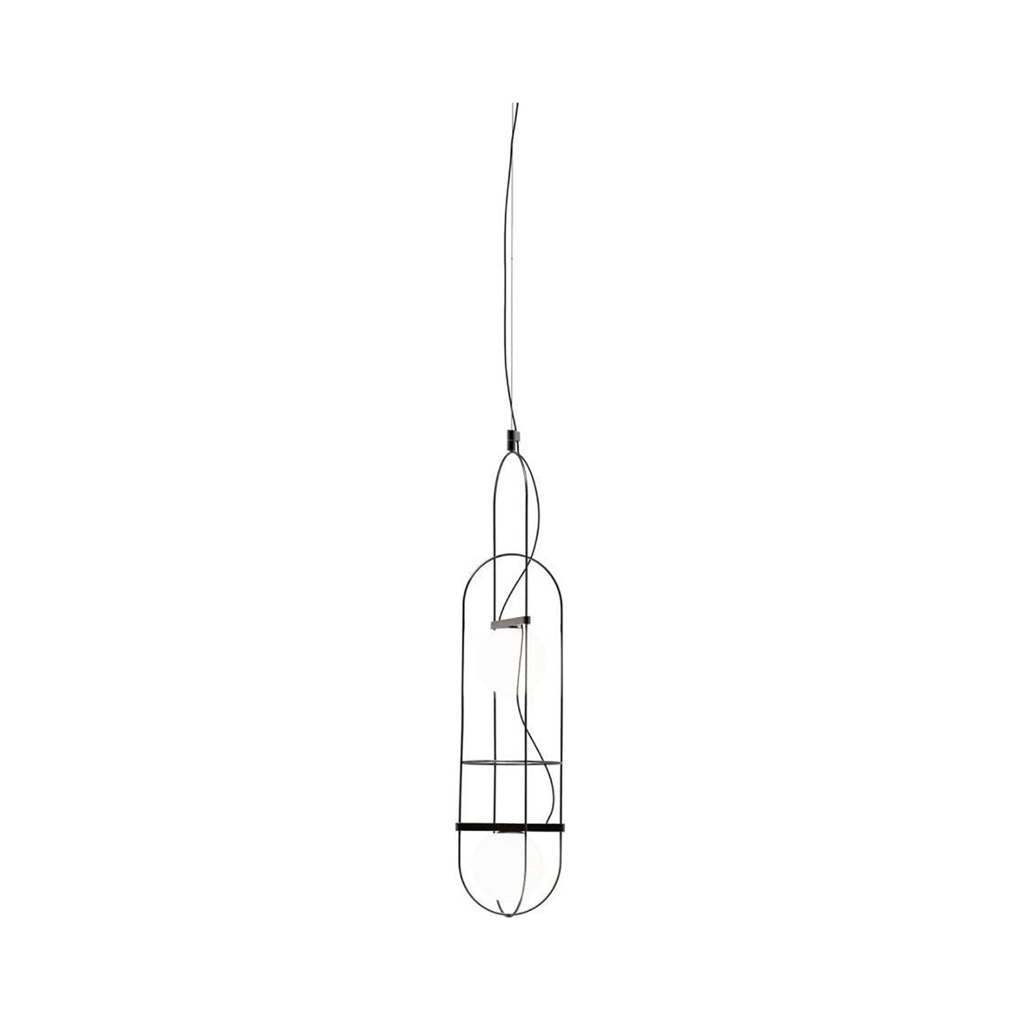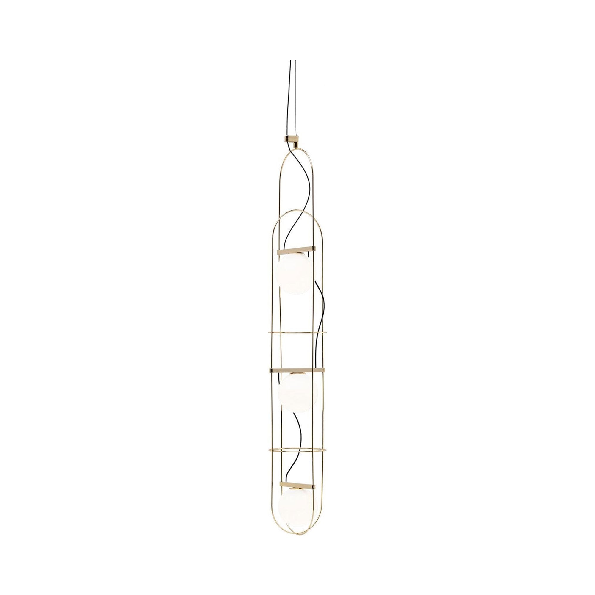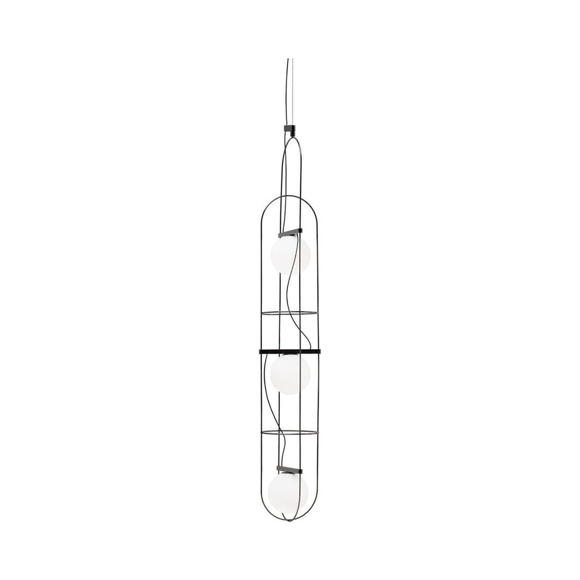 A sphere suspends seamlessly within the open cage featured on the Setareh LED Pendant Light from FontanaArte. Architectural in its precision, the pendant is a stellar choice alone or clustered.