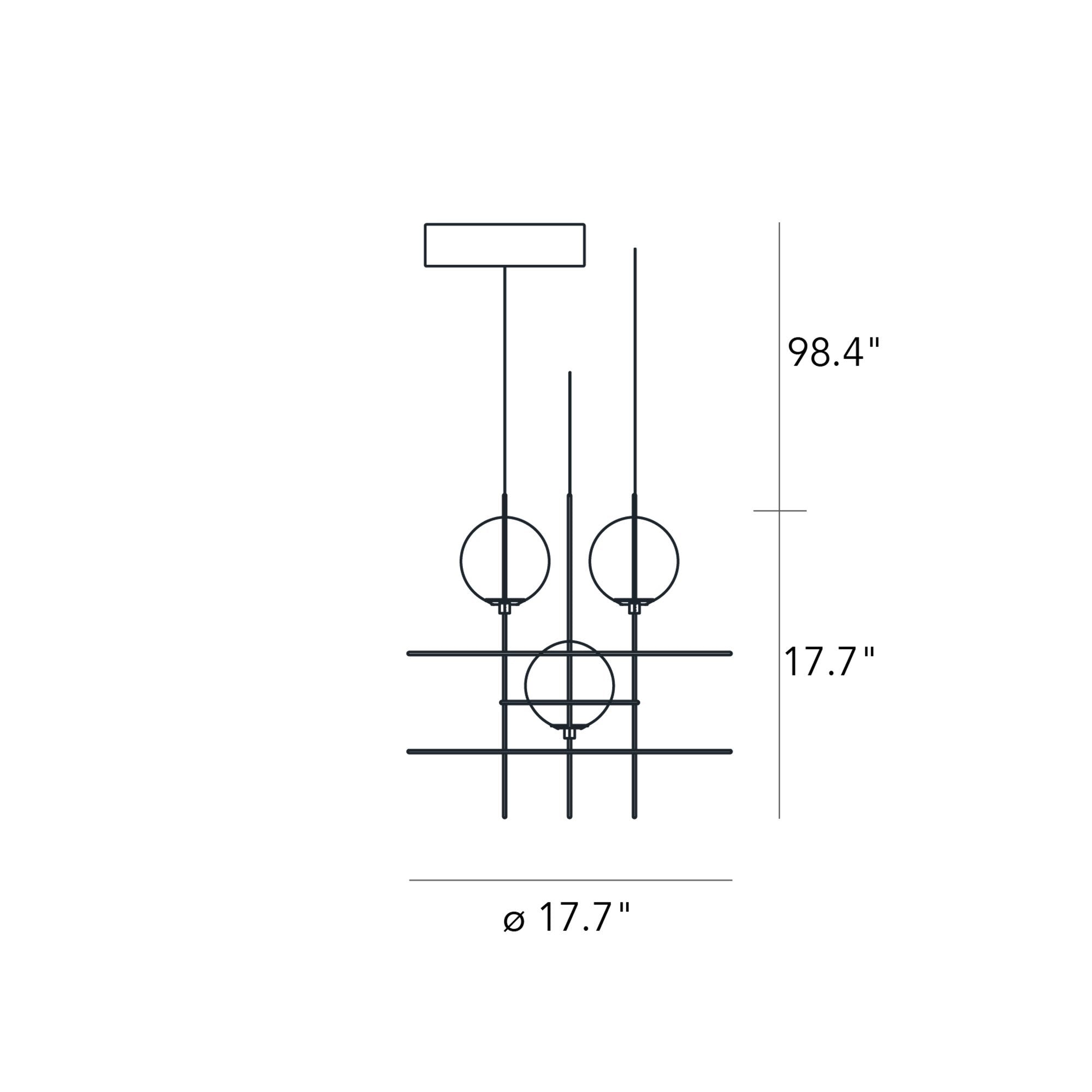 - Small (3-Light): 17.7"D X 17.7"H; 98.4" max height