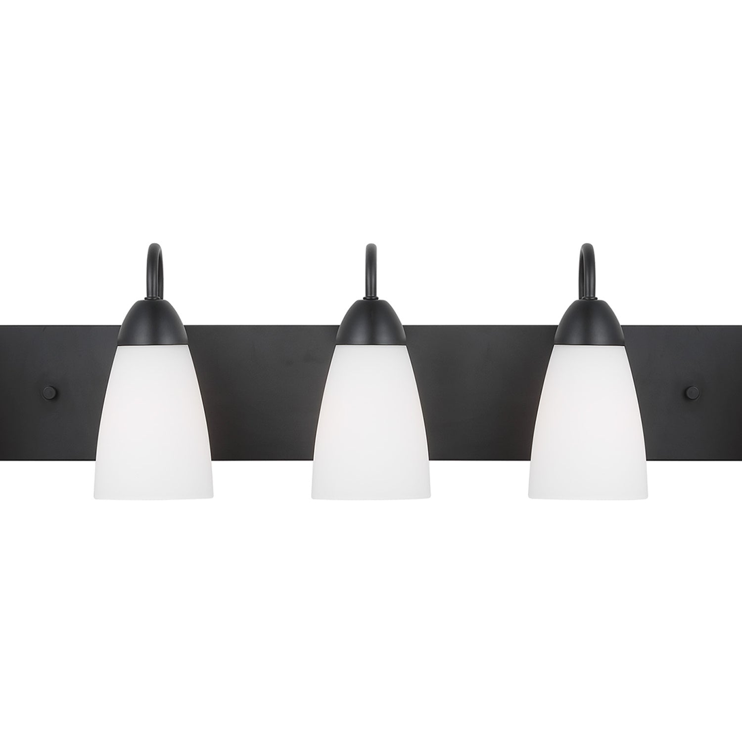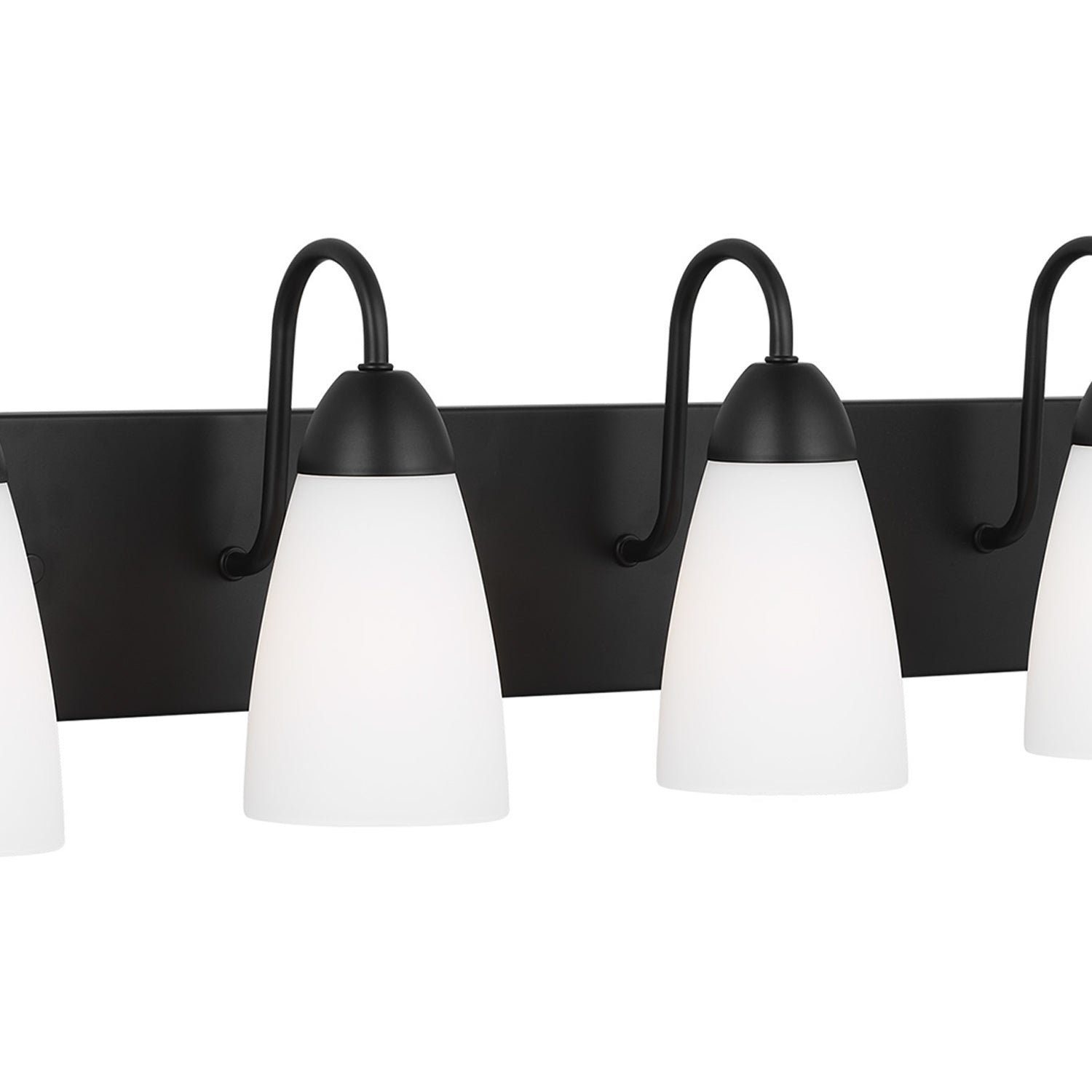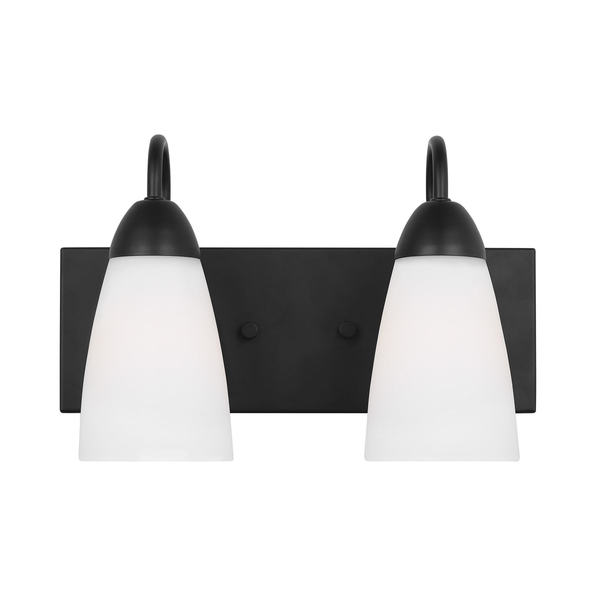 Energetic and sleek in silhouette, the Seville Bath Wall Light from Generation Lighting adds a compelling element to an en suite or guest bathroom. Contrasting finishes are cleverly arranged, with metal framing and milky glass placed perfectly as positive-negative outputs. Delightfully arched arms offer a nautical twist to this stylish fixture.