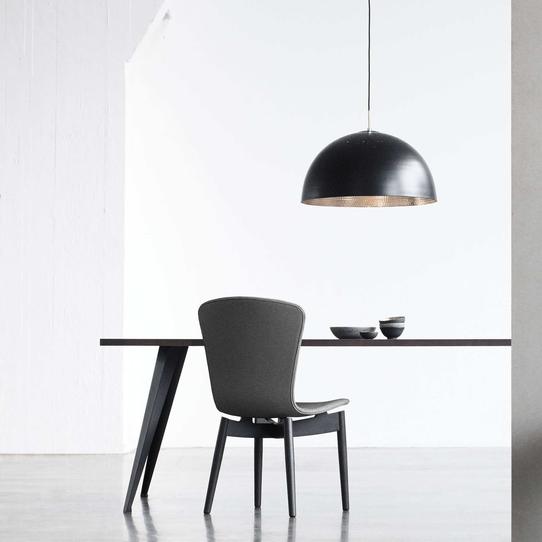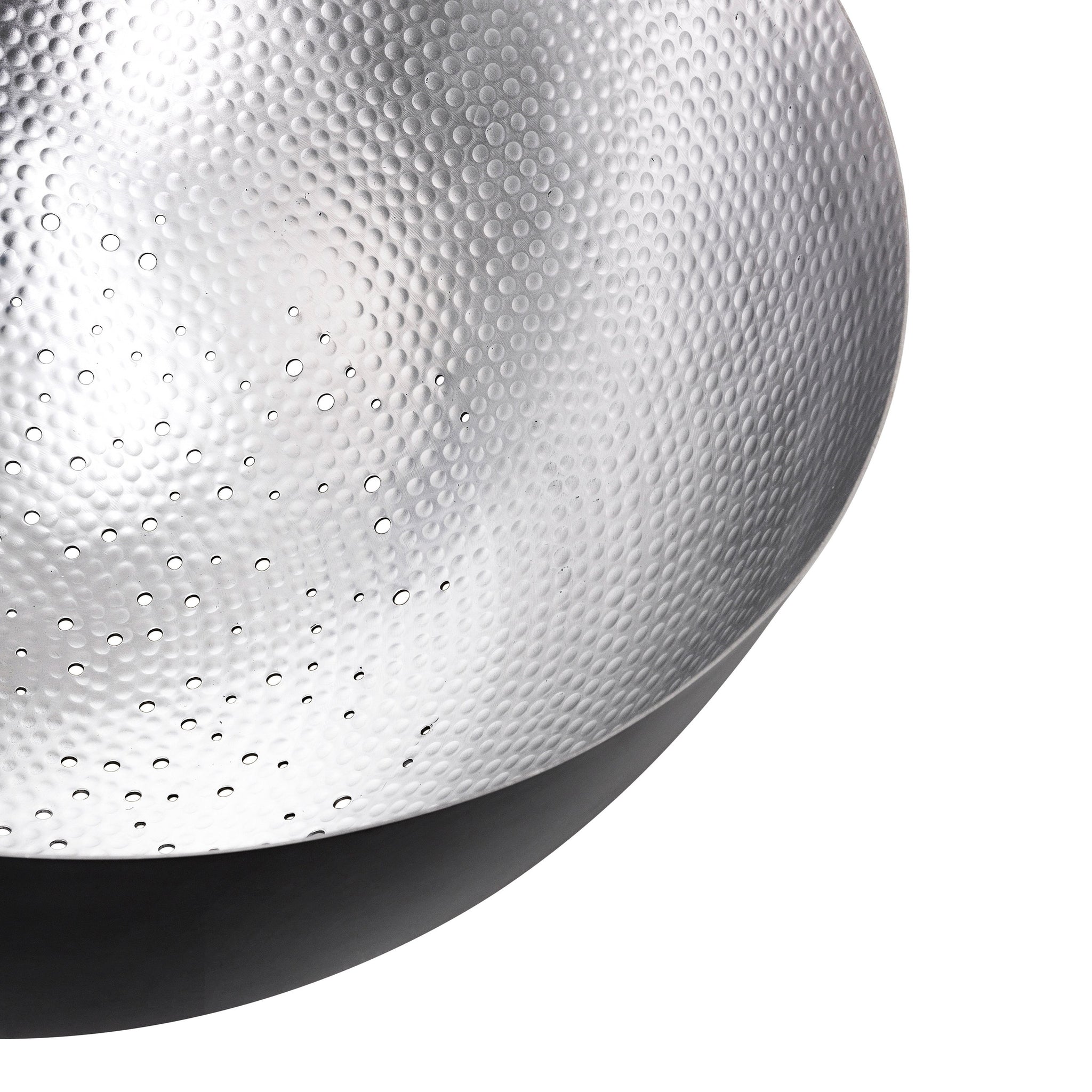 A quintessential blend of classic and contemporary, this eye-catching pendant is a gorgeous addition over a breakfast nook or in an entry. The Shade Light Pendant Light from Mater is made from hand-spun aluminum and its hand-hammered interior features a polished silver finish contrasted against a powder coated satin black outer finish, all accentuated with small punctures that evoke stars scattered across the night sky.