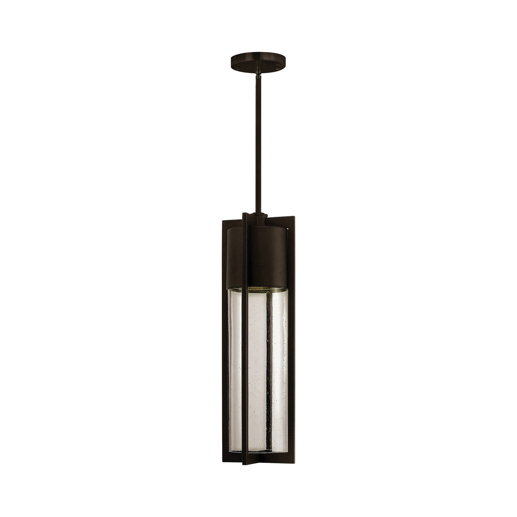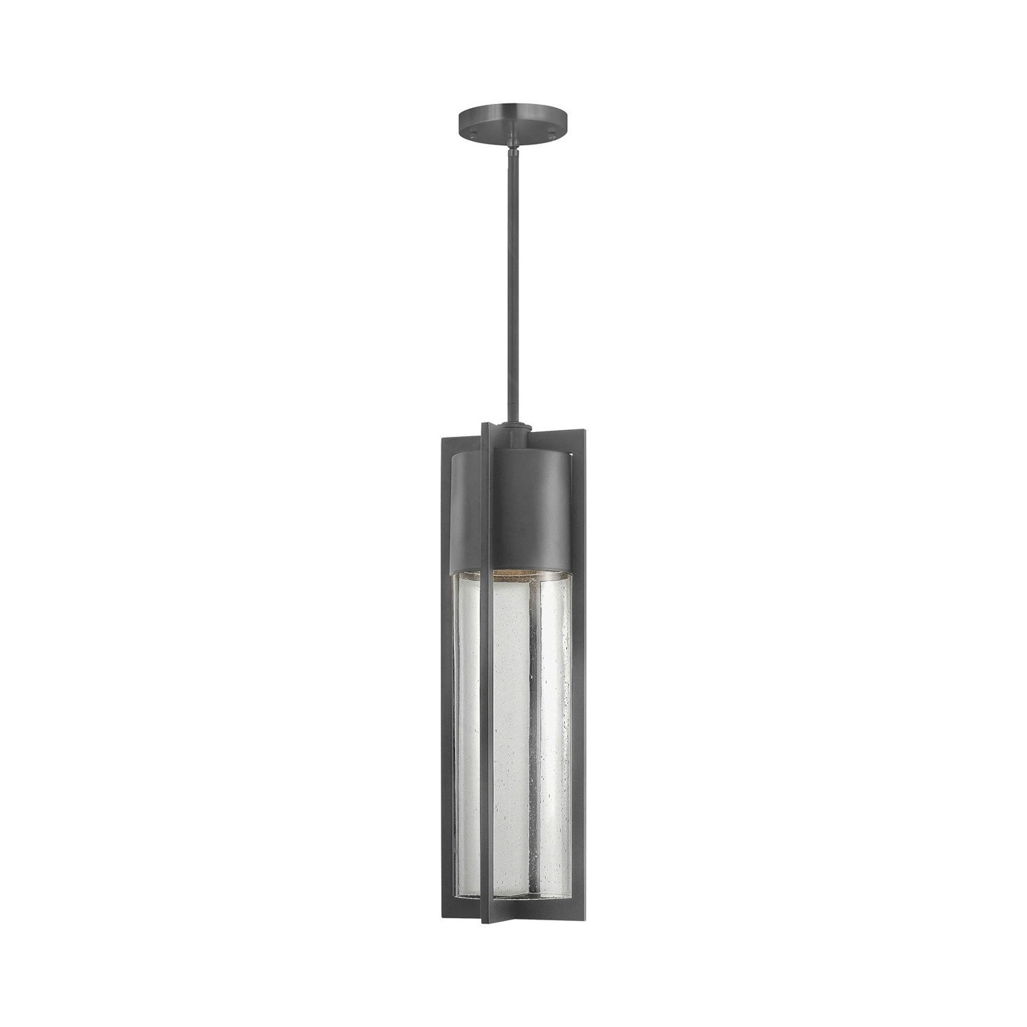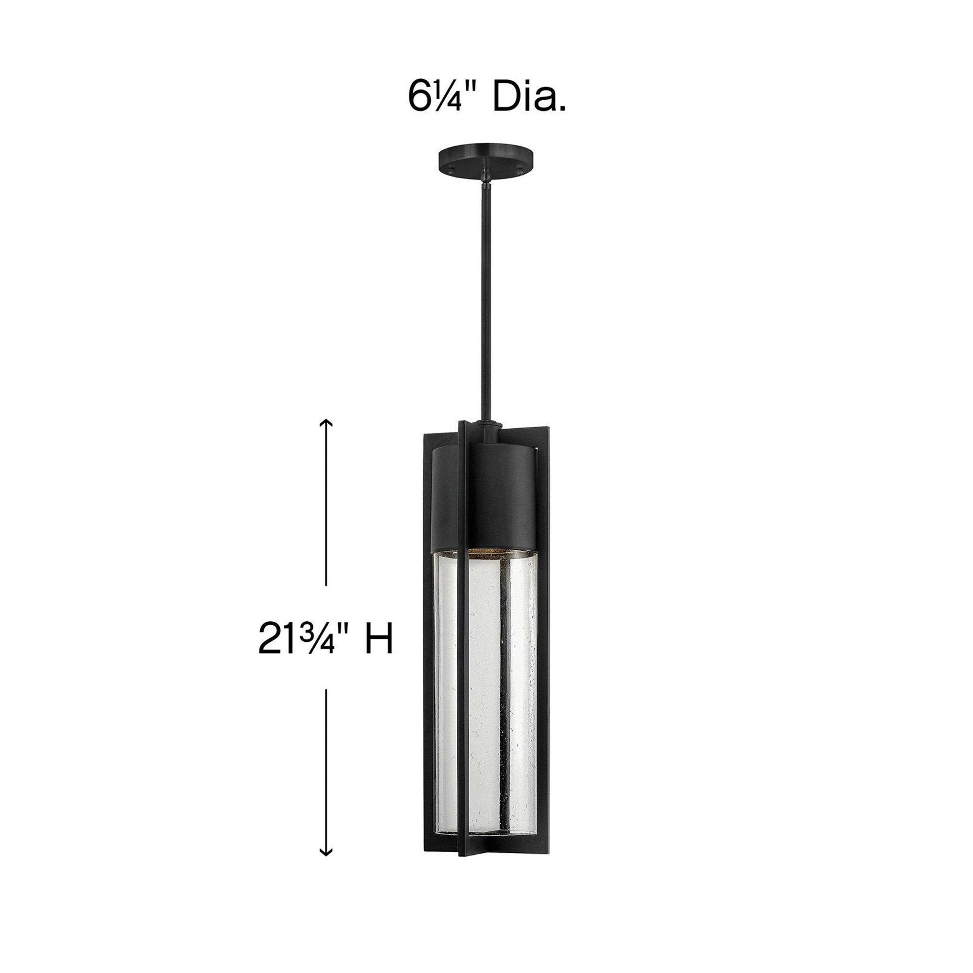 Shelter Outdoor Pendant Light’s minimalist style in aluminum creates a chic, dramatic statement as the light from above grazes through its clear seedy glass. Shelter comes standard Dark Sky compliant.