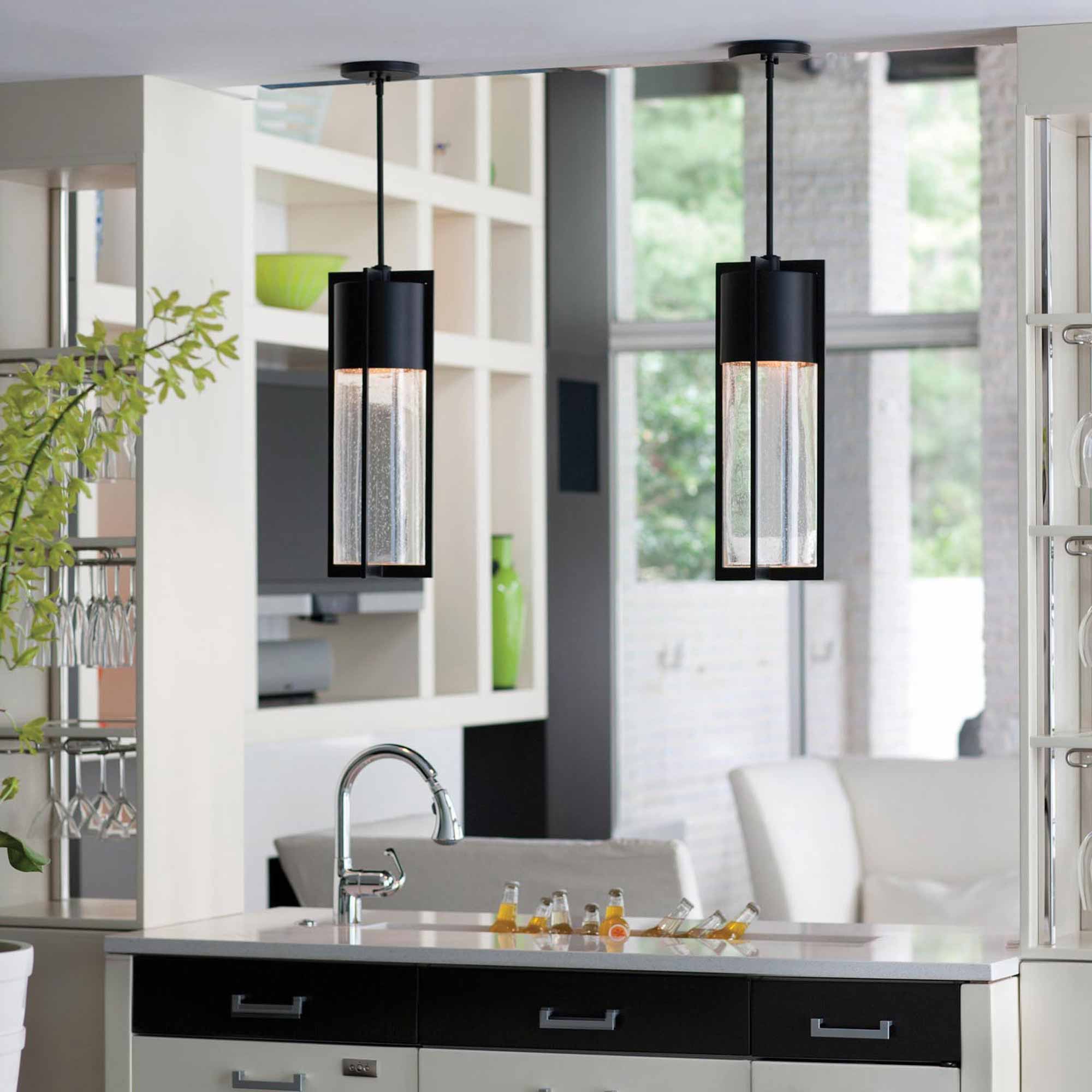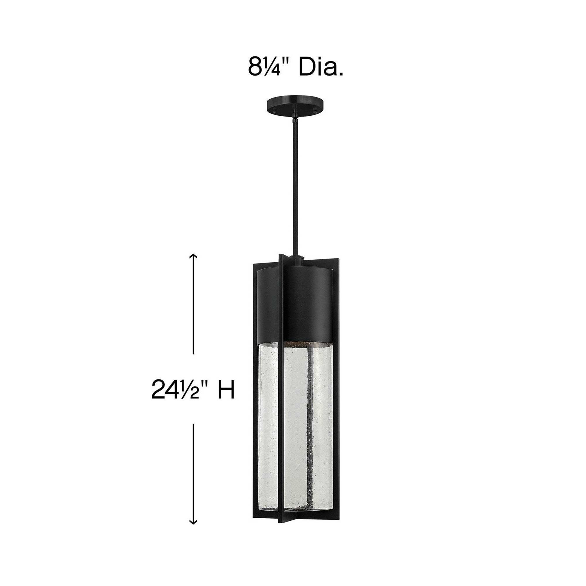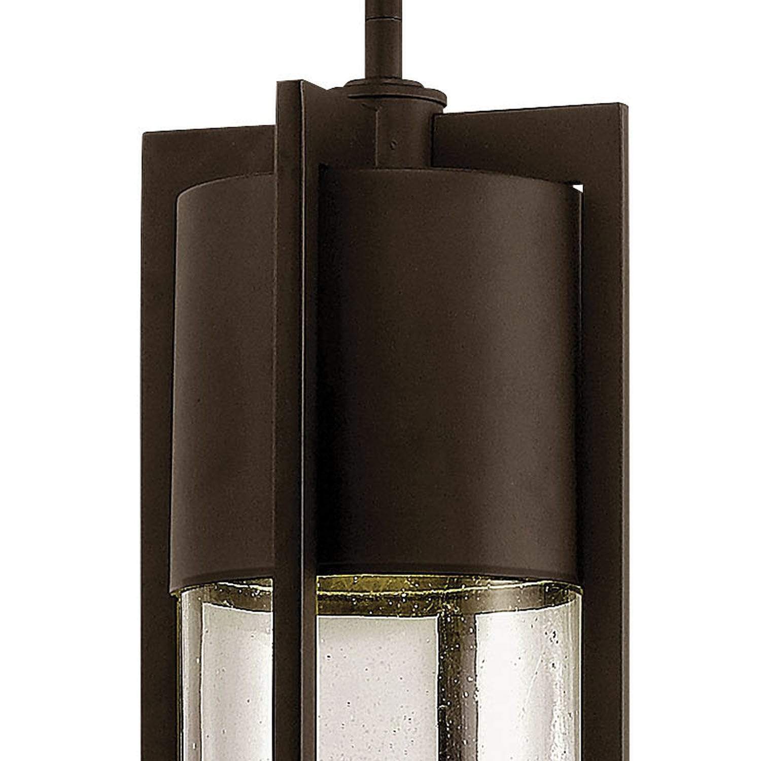 Shelter Outdoor Pendant Light’s minimalist style in aluminum creates a chic, dramatic statement as the light from above grazes through its clear seedy glass. Shelter comes standard Dark Sky compliant.