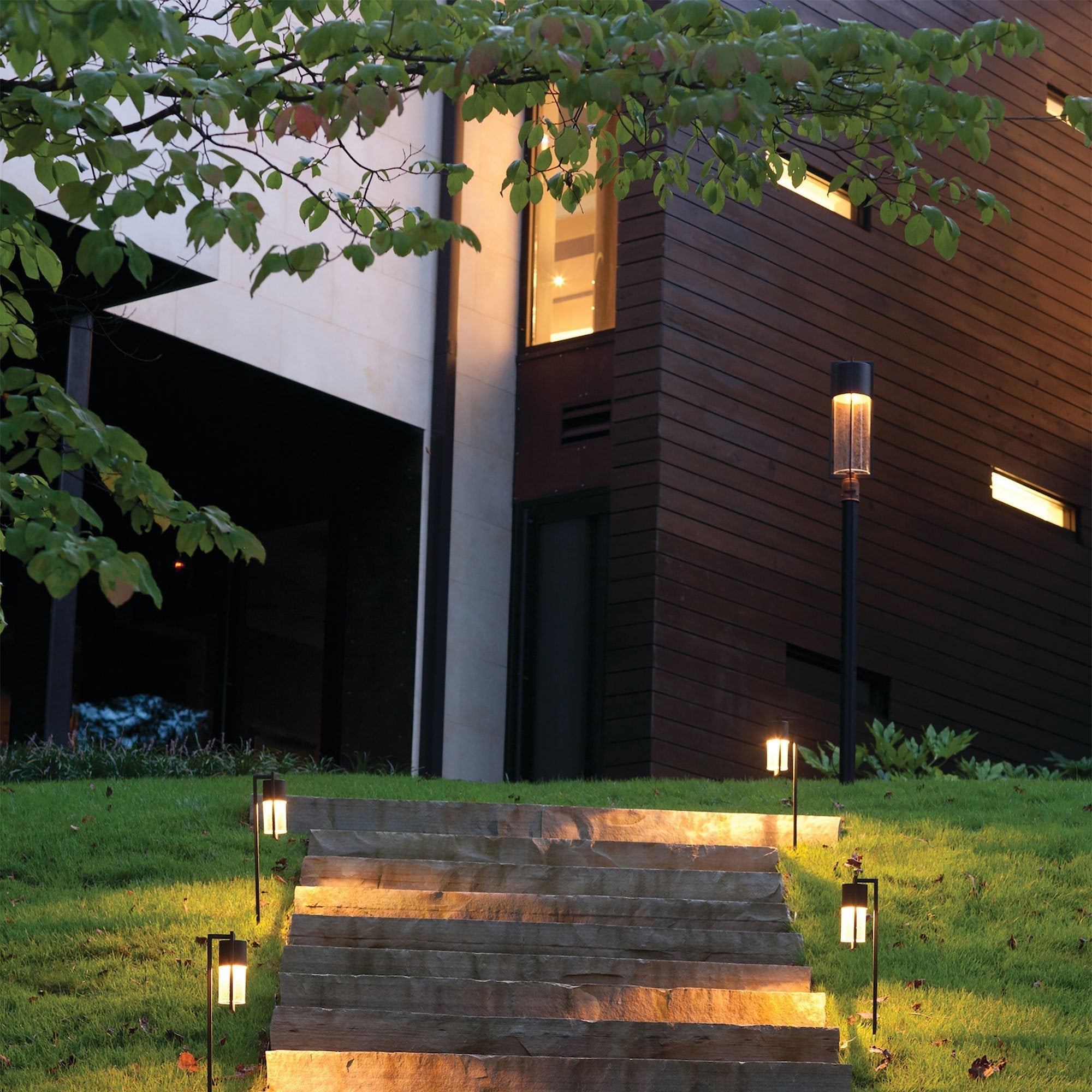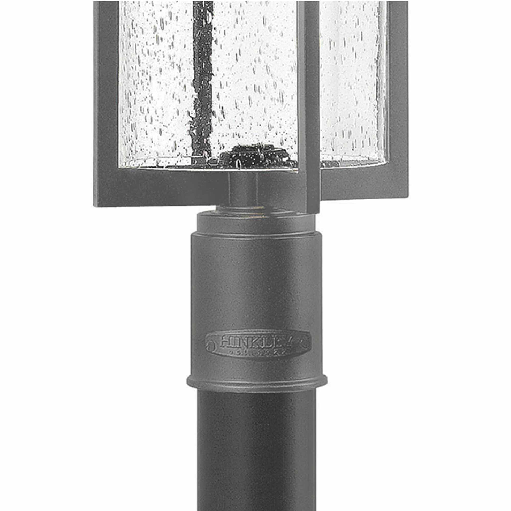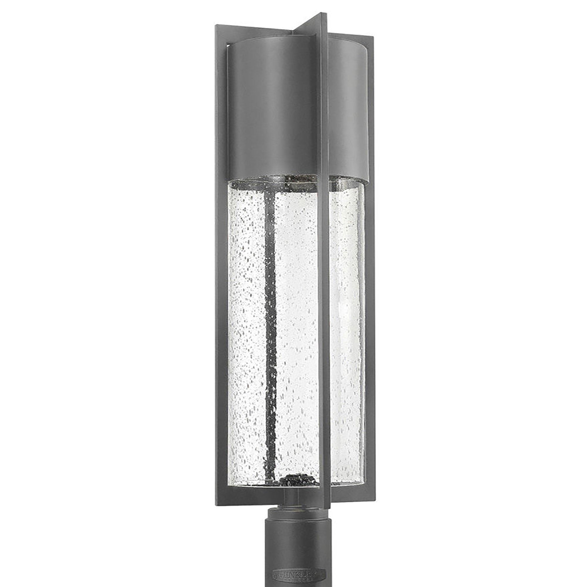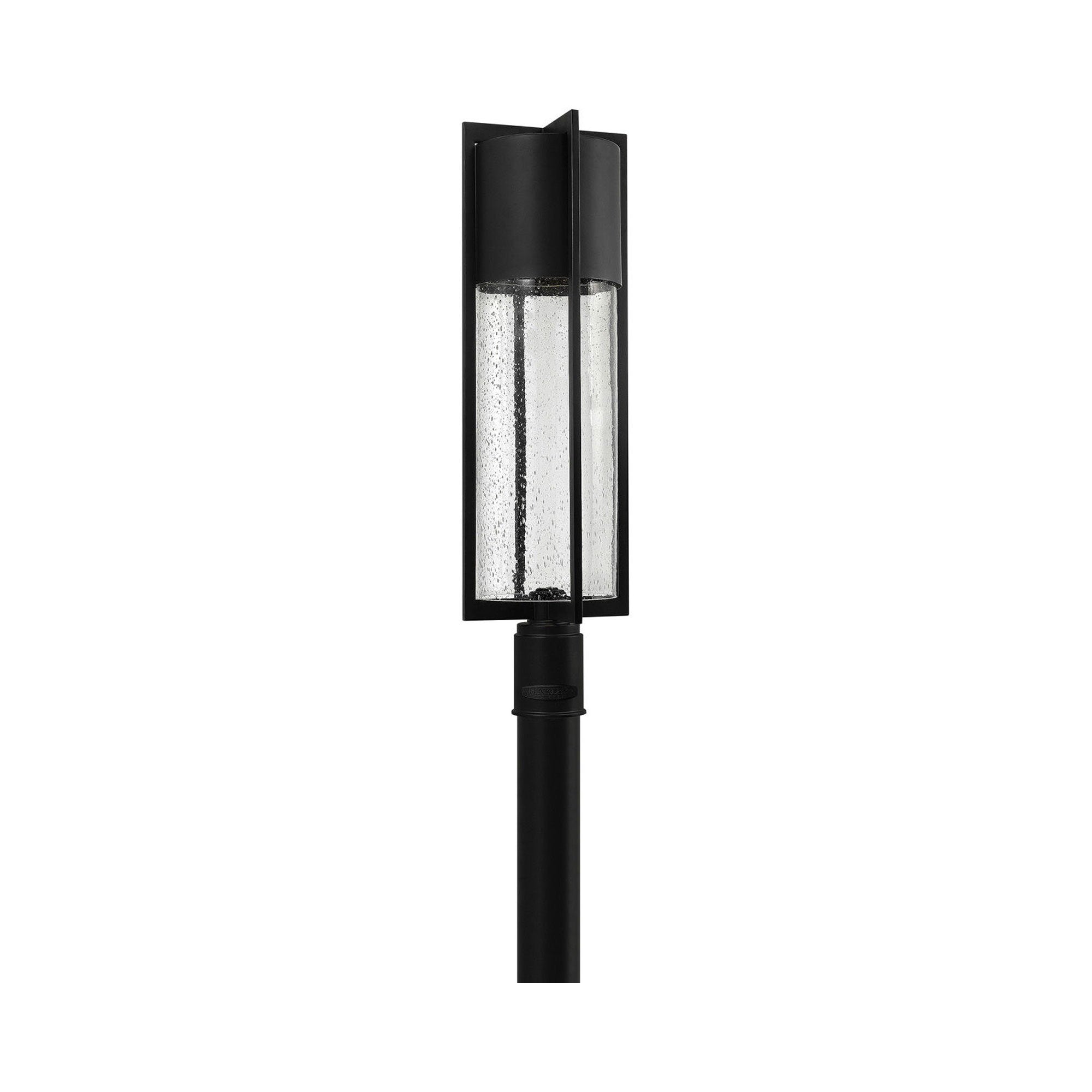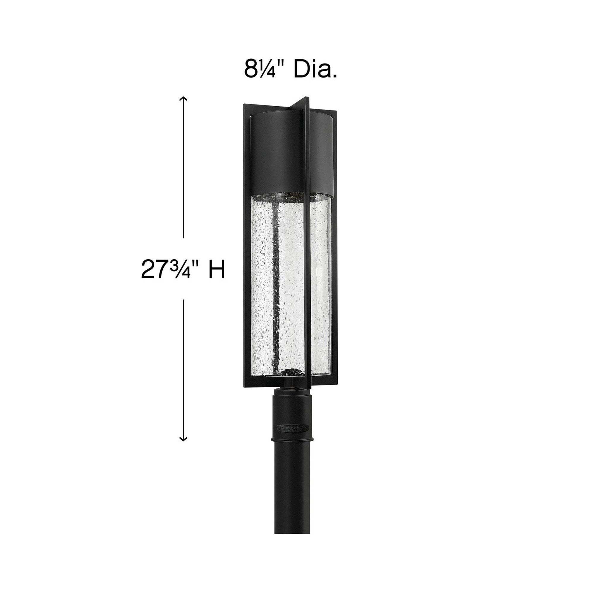 Shelter Outdoor Post Light’s minimalist style in aluminum creates a chic, dramatic statement as the light from above grazes through its clear seedy glass. Shelter comes standard Dark Sky compliant.
