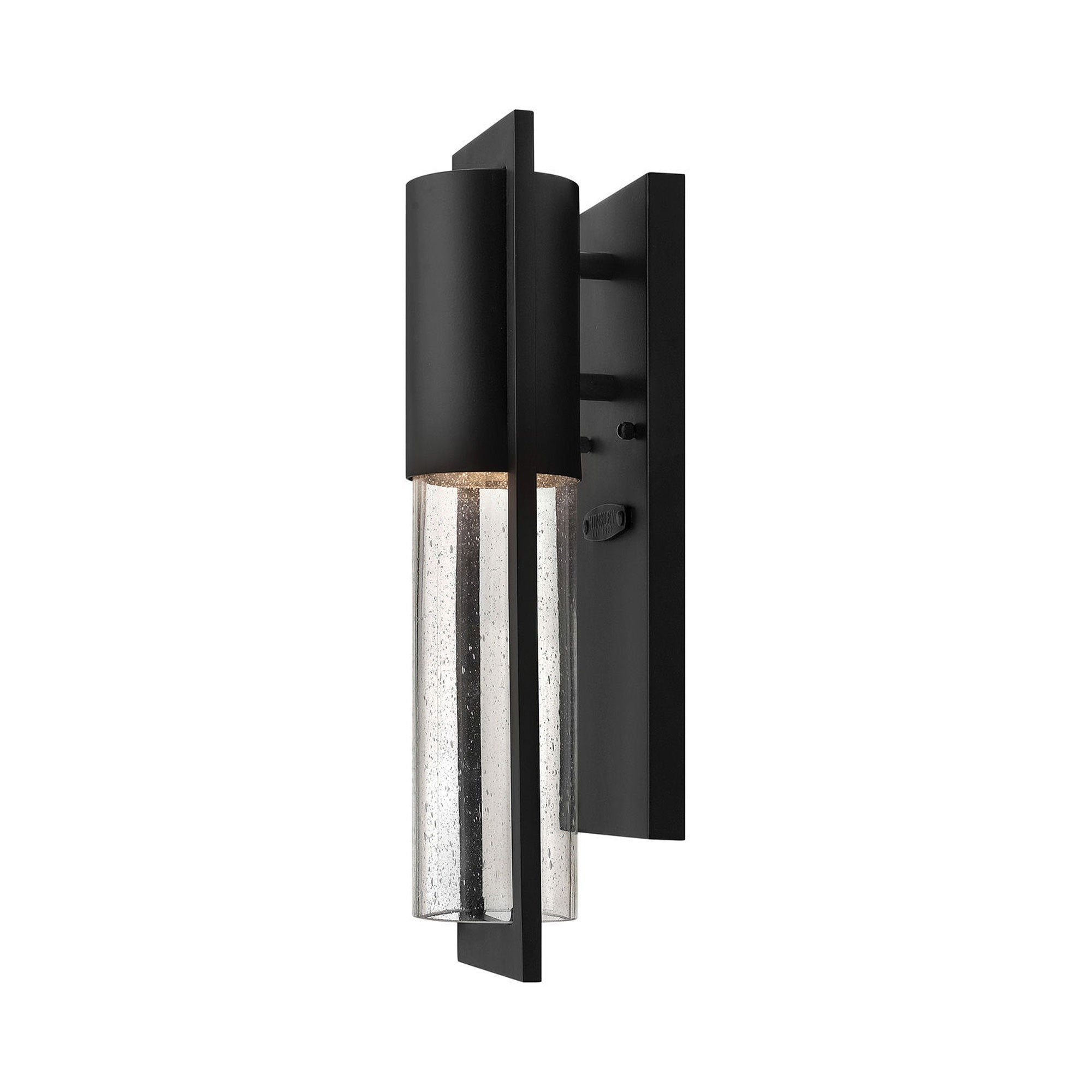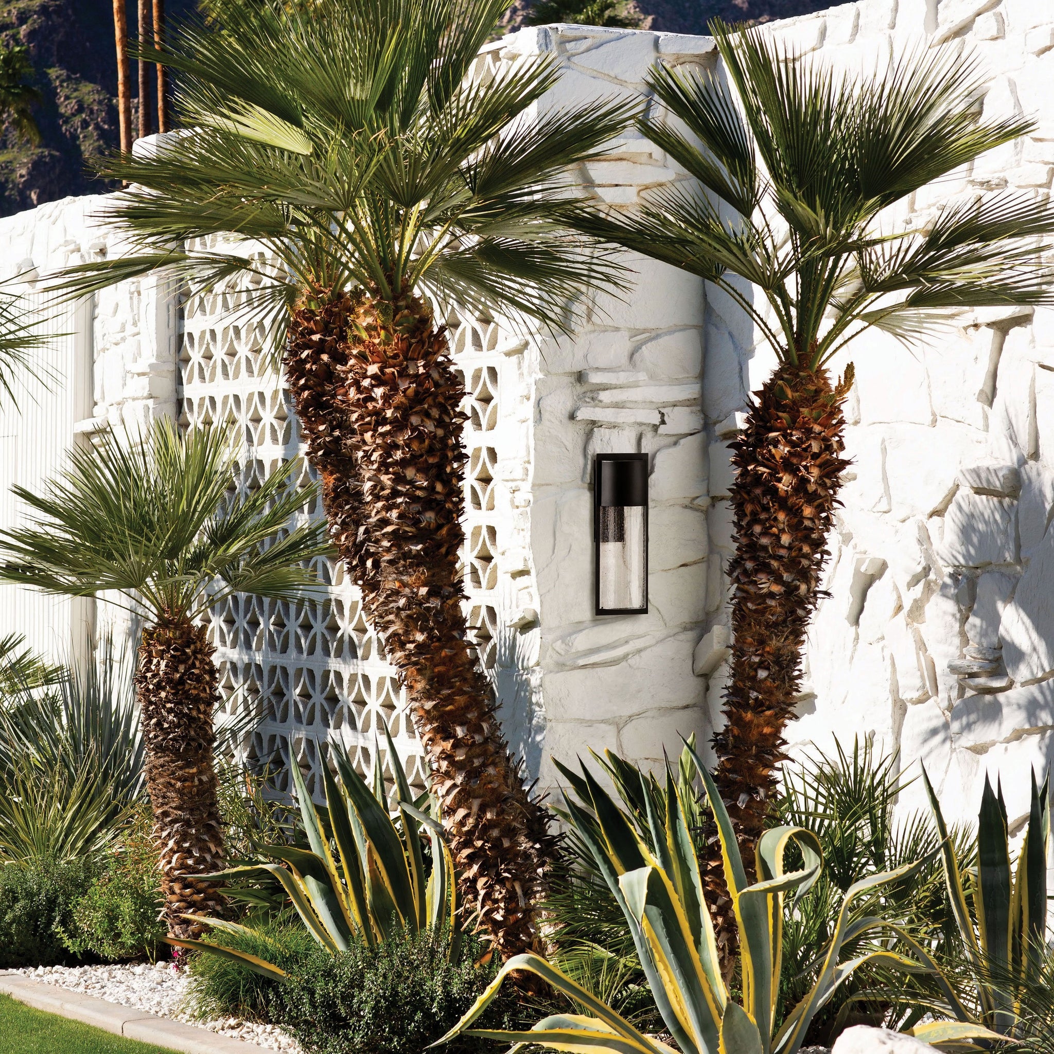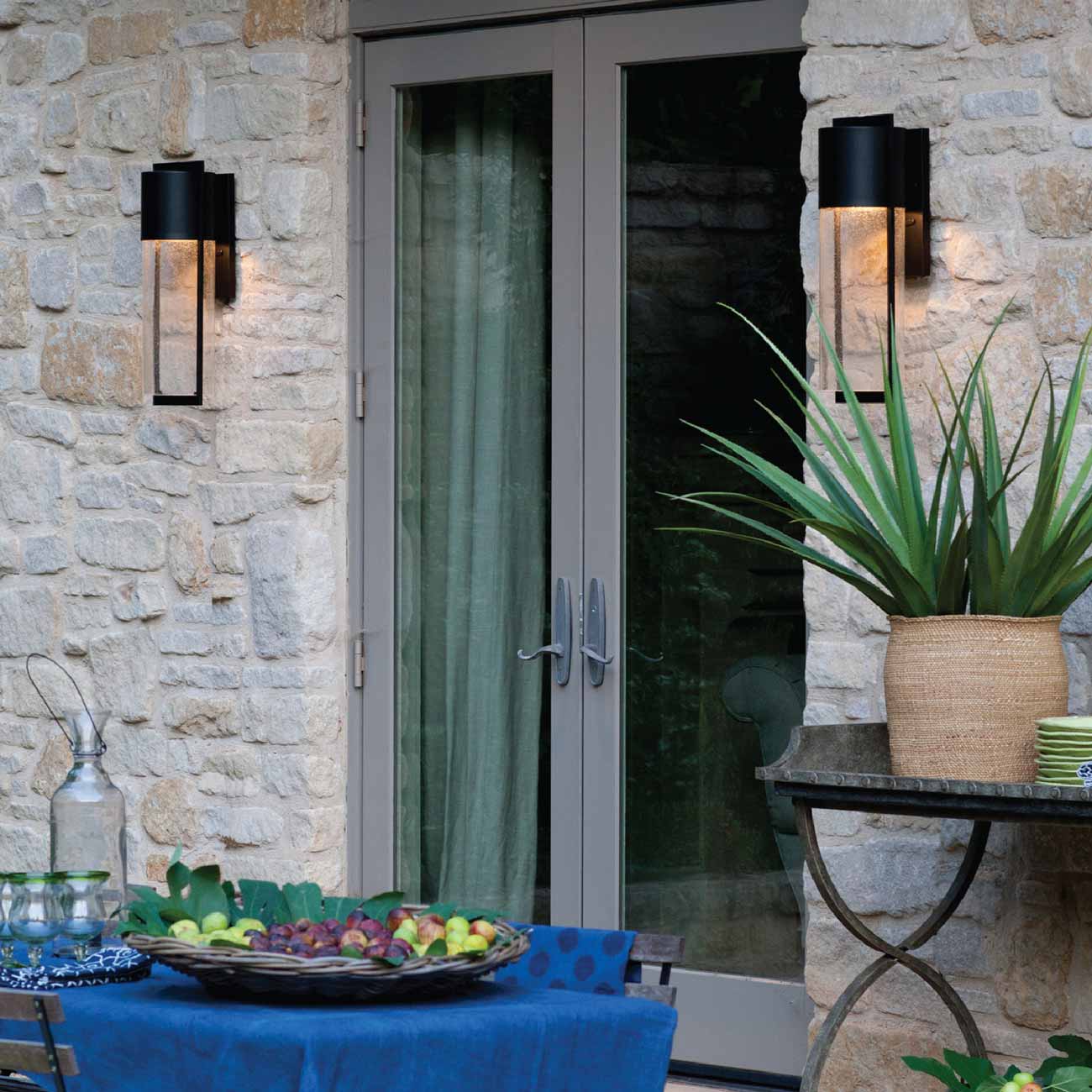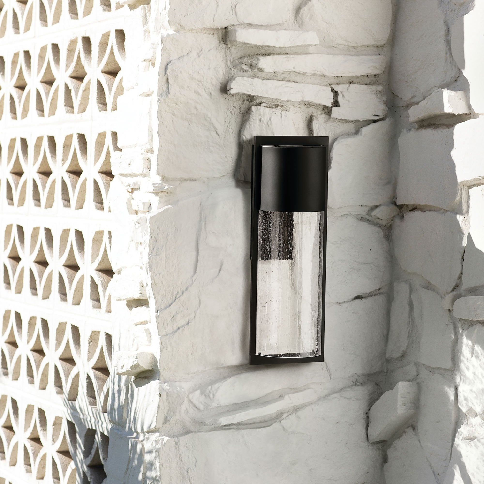 Shelter Outdoor Wall Light’s minimalist style in aluminum creates a chic, dramatic statement as the light from above grazes through its clear seedy glass. Shelter comes standard Dark Sky compliant.