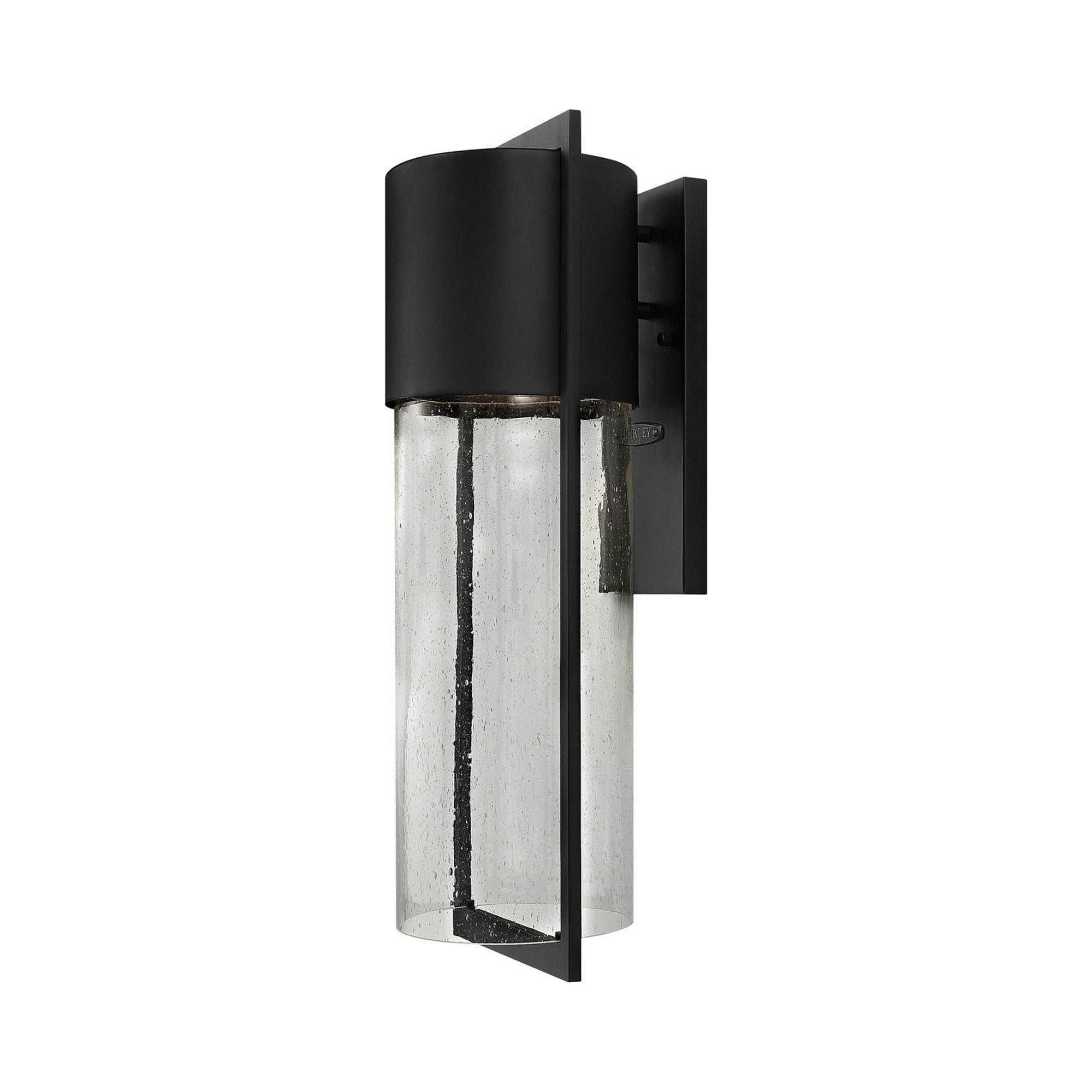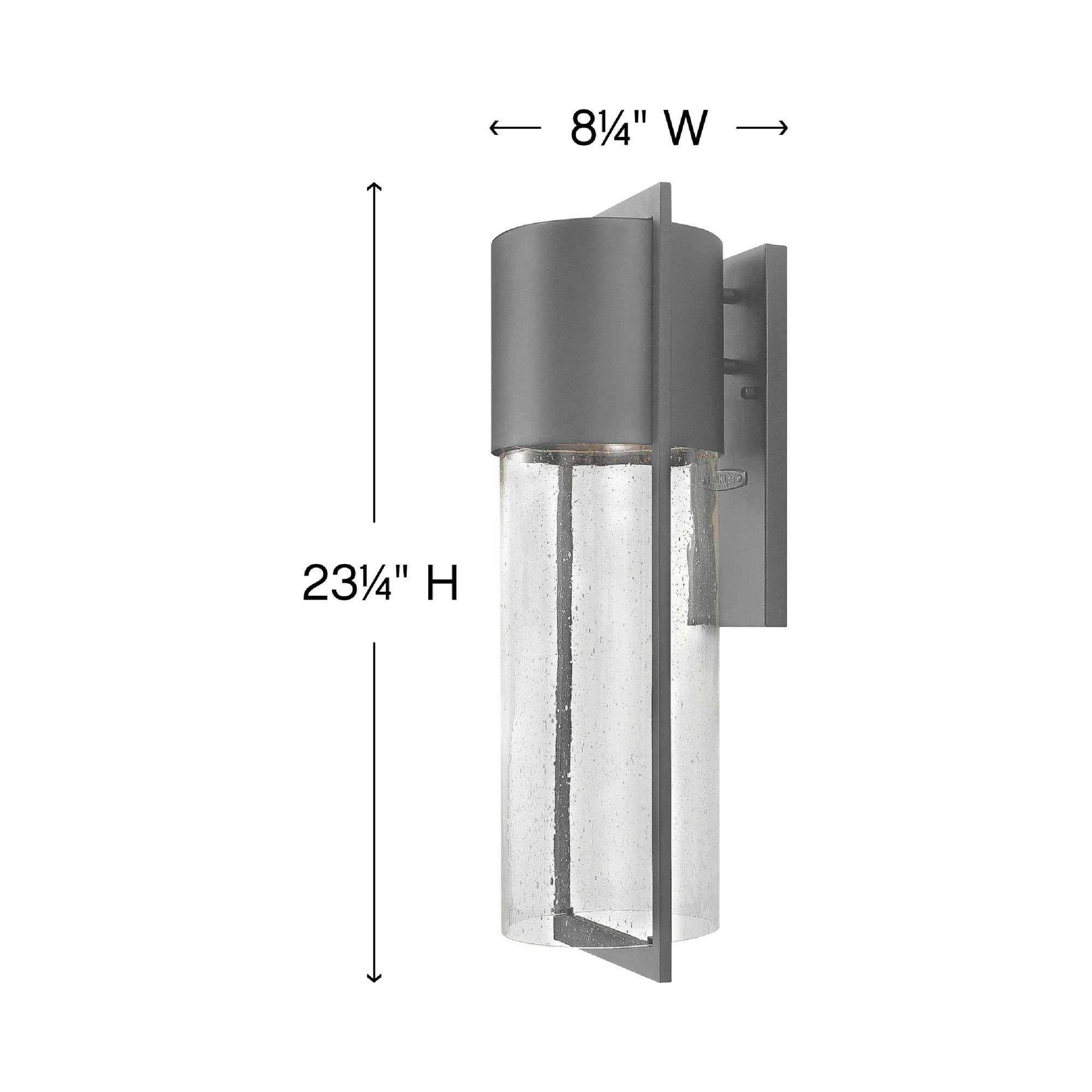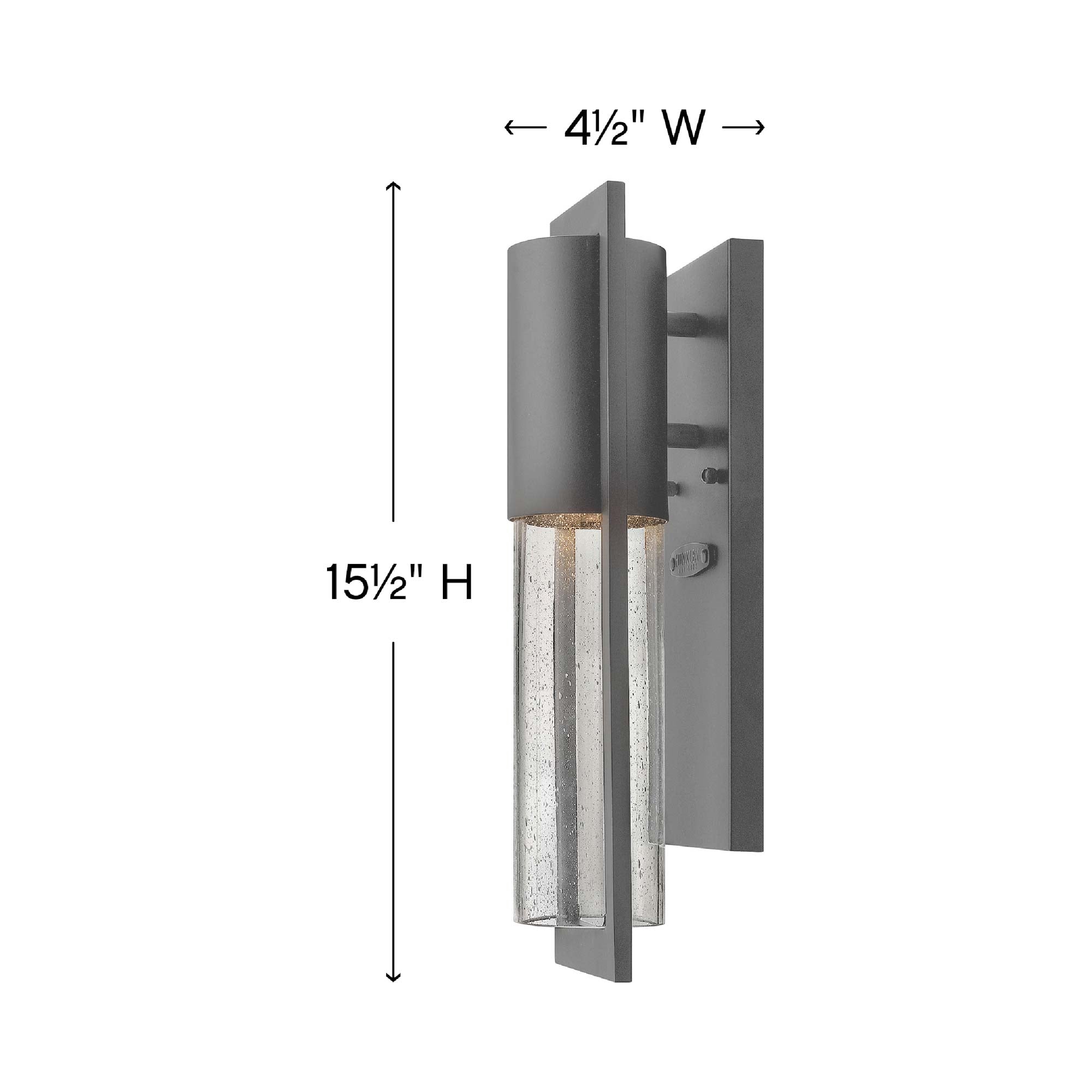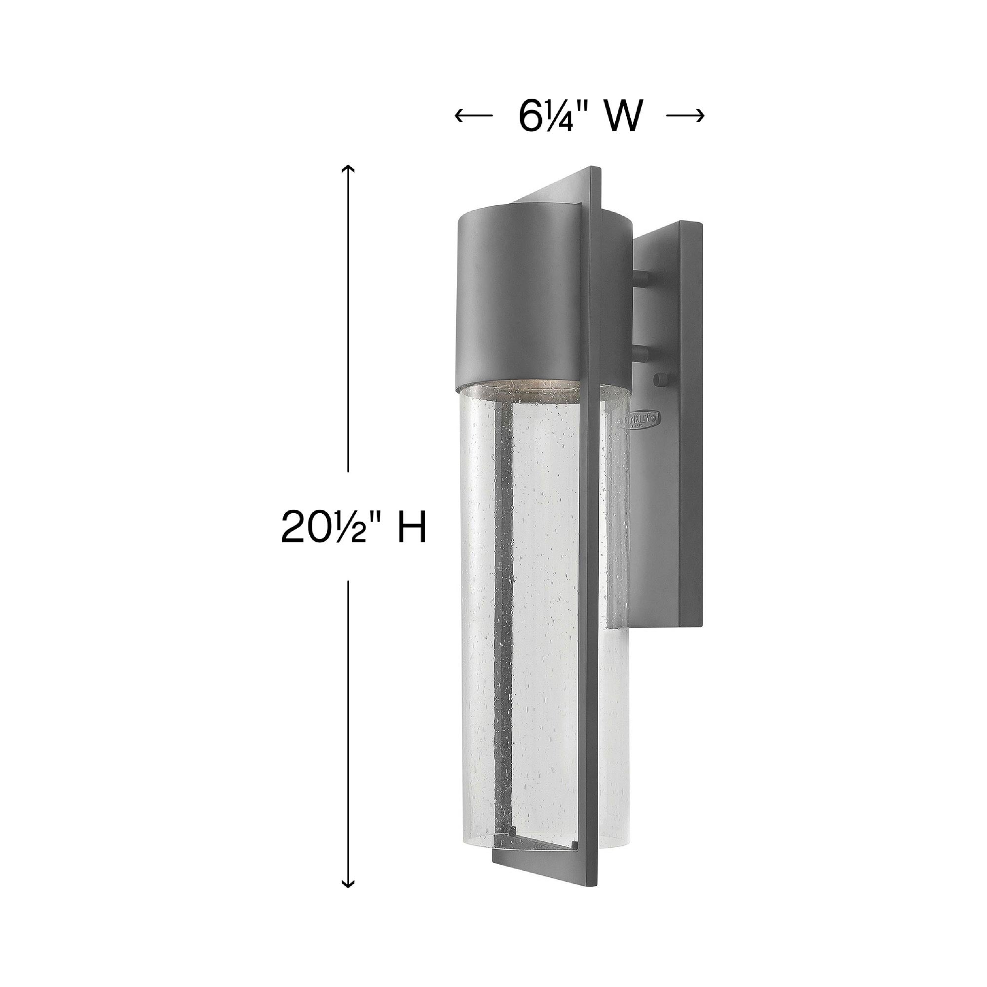 Shelter Outdoor Wall Light’s minimalist style in aluminum creates a chic, dramatic statement as the light from above grazes through its clear seedy glass. Shelter comes standard Dark Sky compliant.