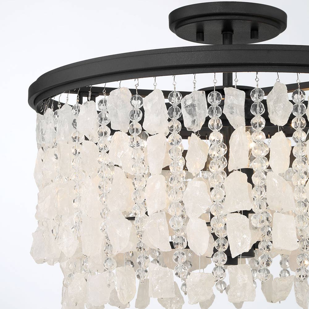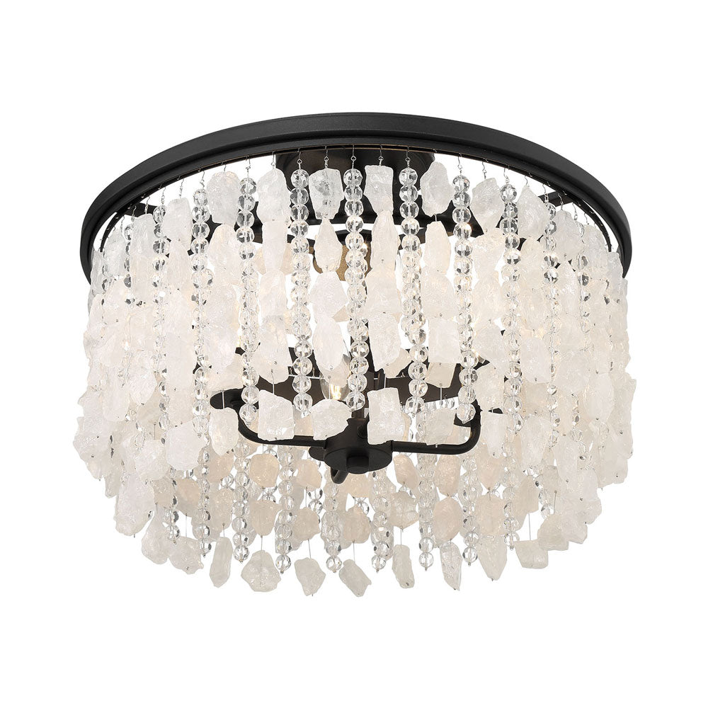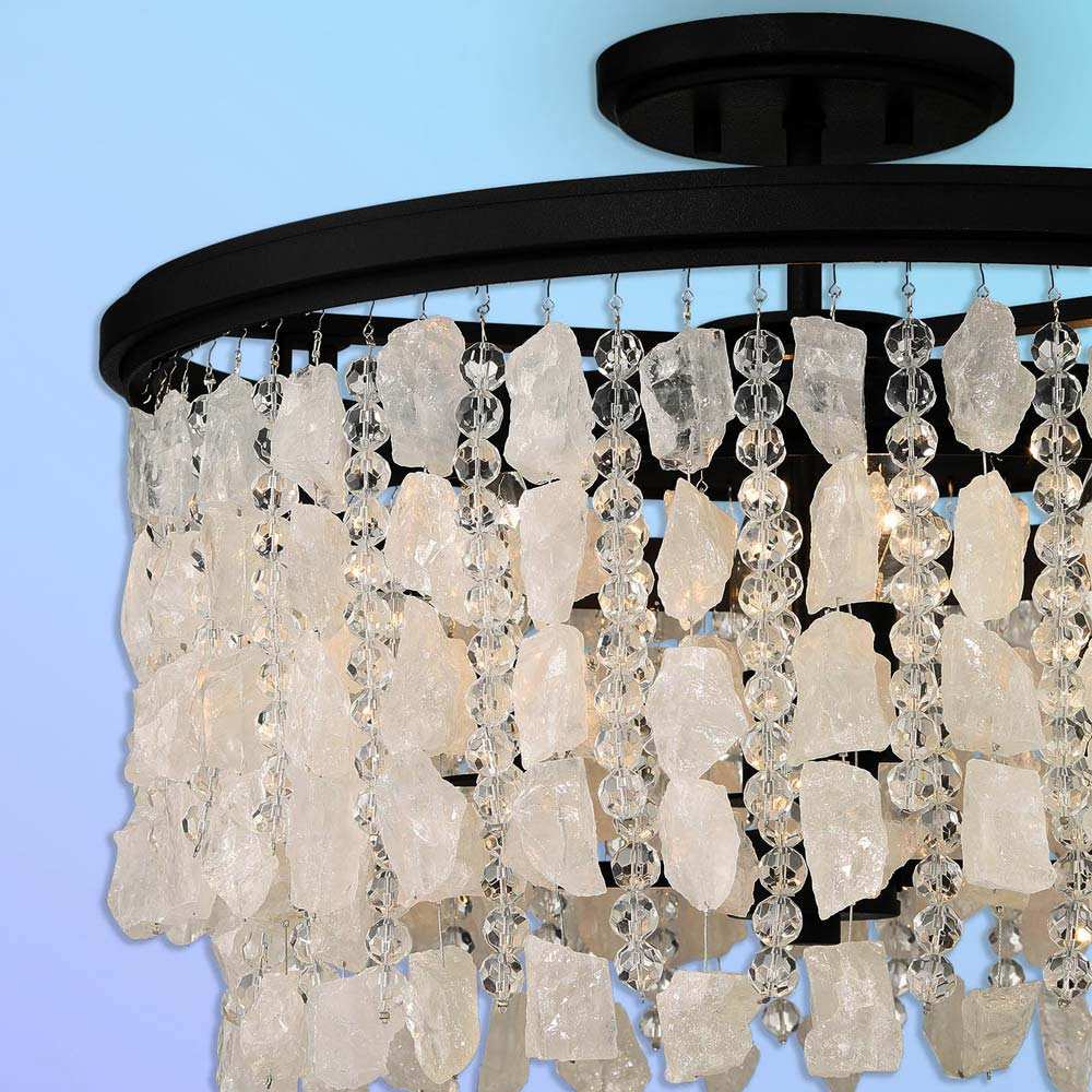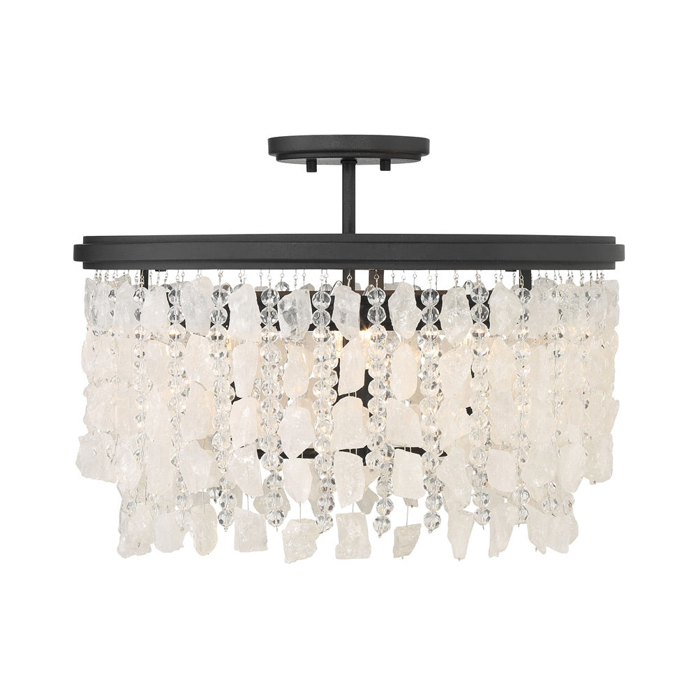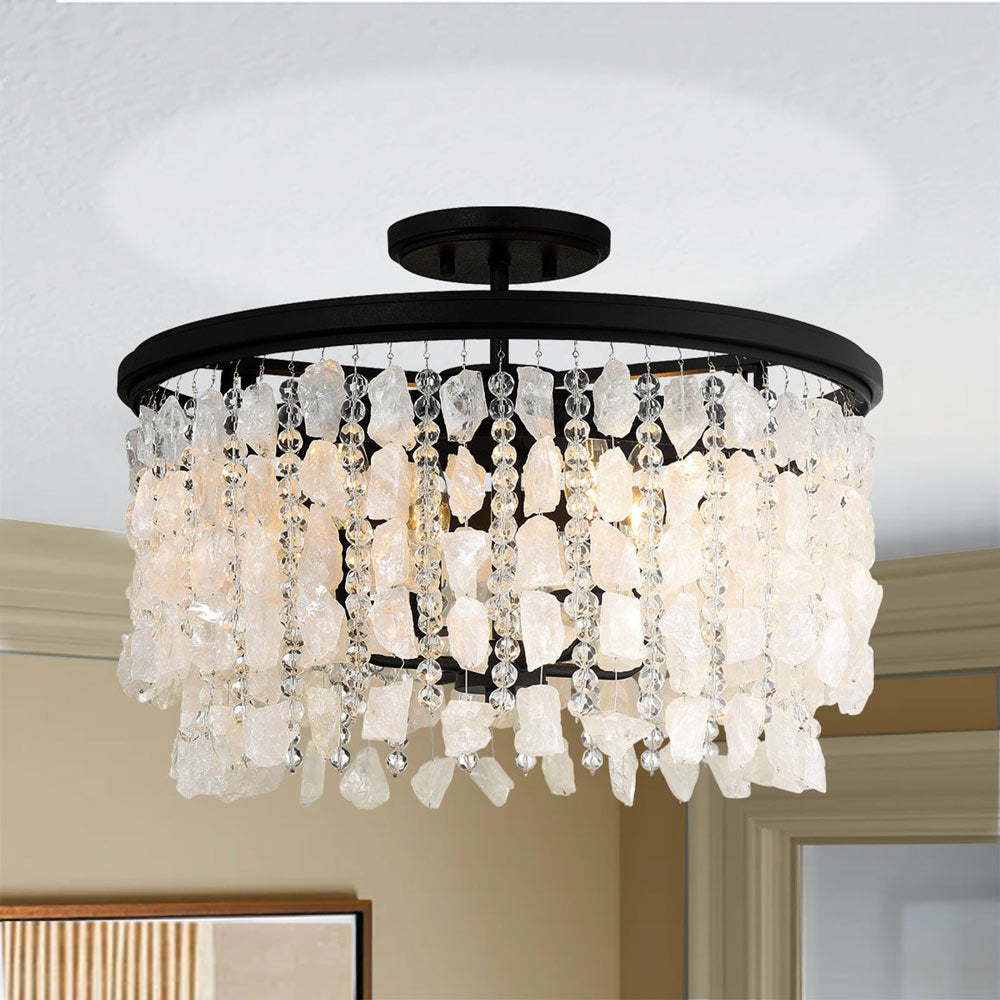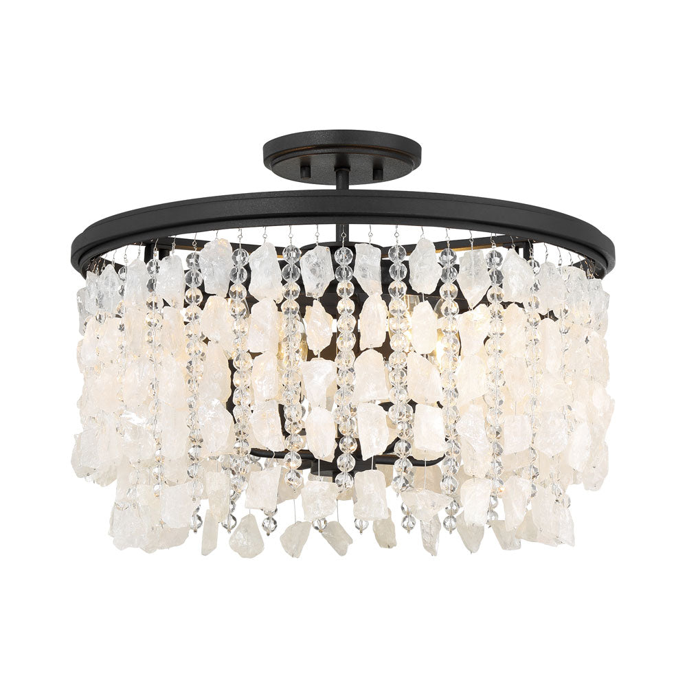 Repurpose Art Deco charm fitting for a vintage era, modernized to make lighting a décor sensation. Strands of quartz crystalline and cut glass beads embellish the Shimmering Elegance Semi Flush Mount Ceiling Light from Minka Lavery, leaving behind a tribute to boho inspiration. Visually pleasing with a round openwork metal frame, this fixture delivers charming style to upscale kitchens, foyers, and living areas.