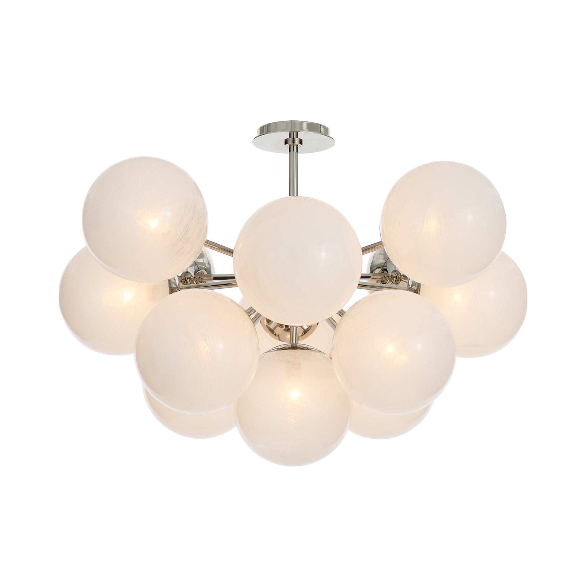 The Shine Flush Mount Ceiling Light from Regina Andrew puts a new spin on iconic Mid-Century Modern elegance with plenty of festivity that translates to a dedicated focal point. Envision a cluster of pearls as you select a transitional setting to mount a multi-light fixture featuring white swirled glass spheres. Both classic glam and vintage retro style reflects in a truly artisan and inspirational fixture.