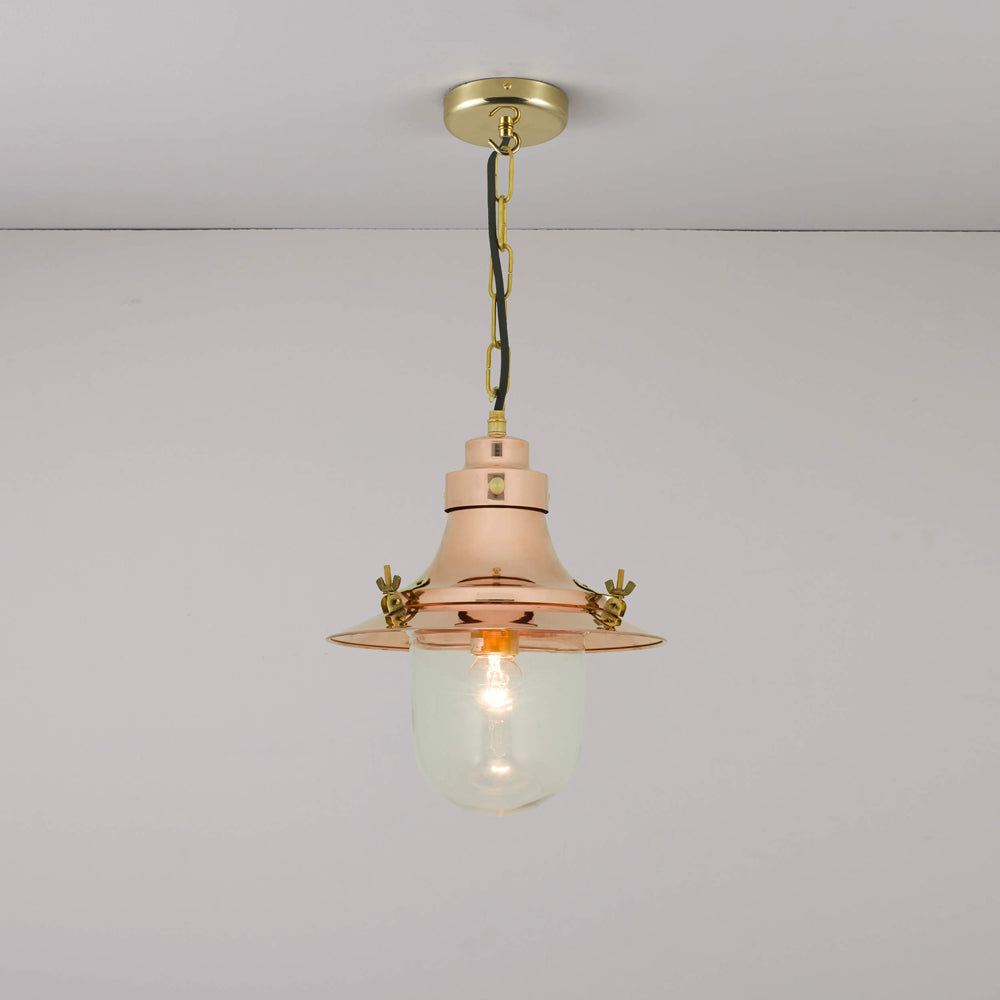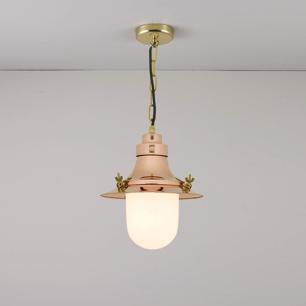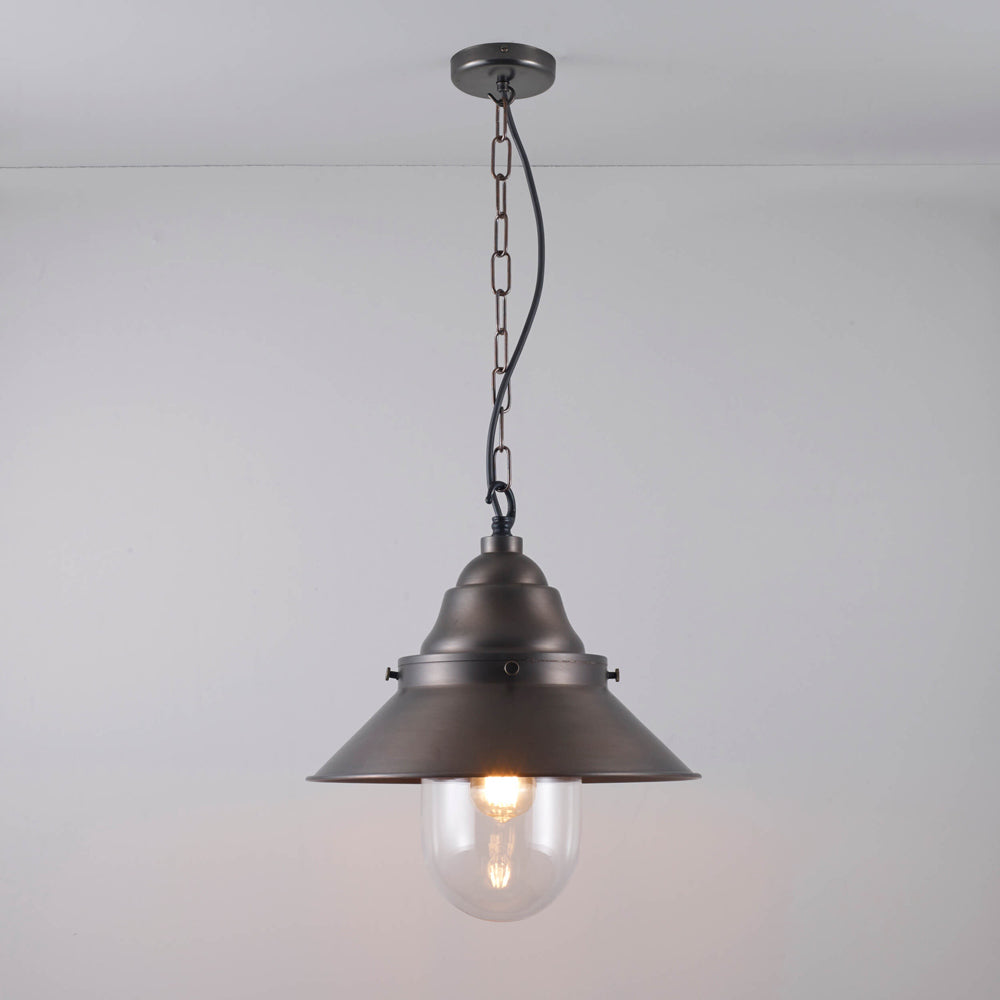 A transformation of vintage nautical fare results in decadence as the Ship's Deck Pendant Light from Original BTC reworks an iconic design motif. An ornate metal shade grabs attention with its bell silhouette, artful and impressive, with intricate detailing attracting warranted attention. Light filters through a glass diffuser and warms a dining room or living area with elegance.