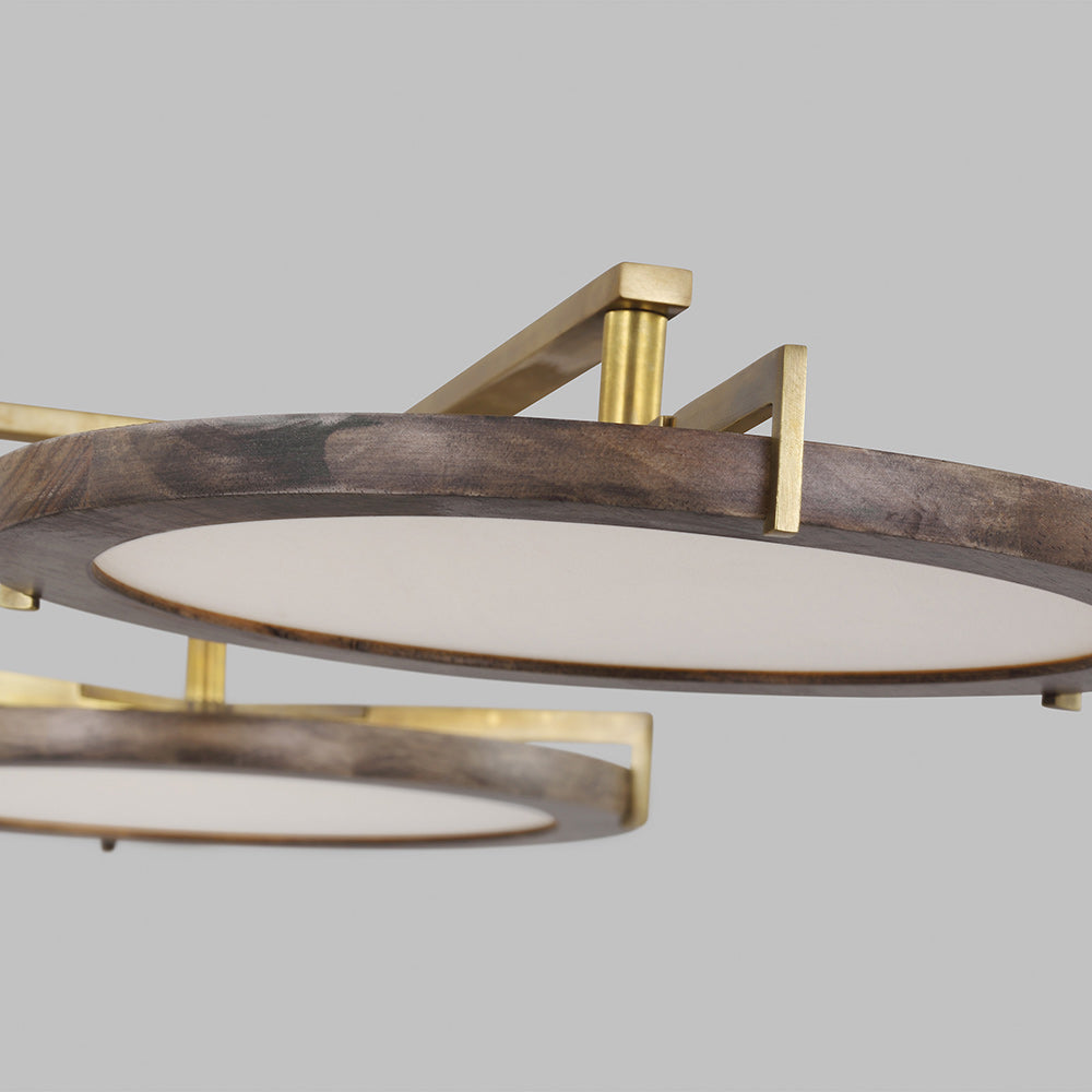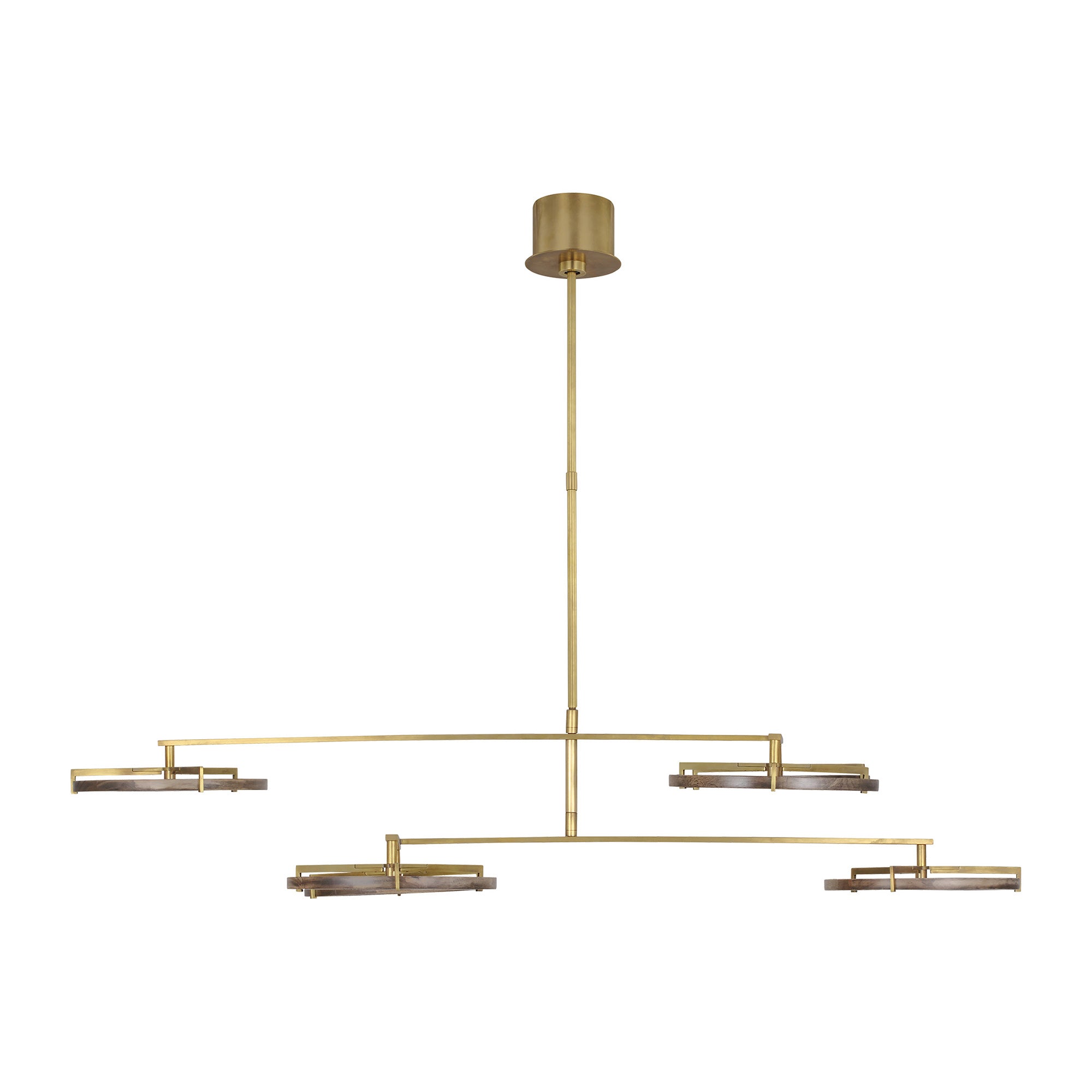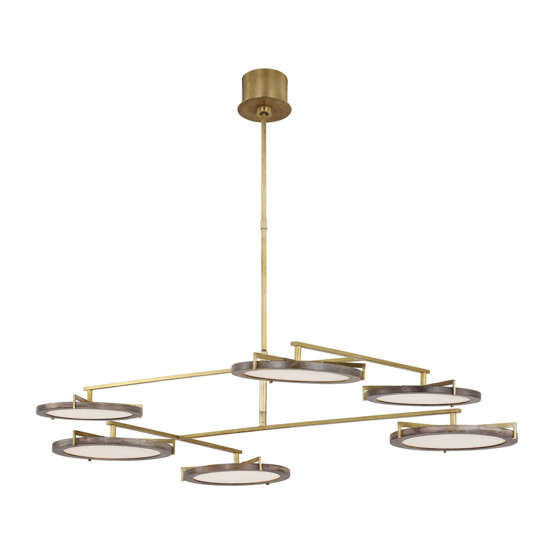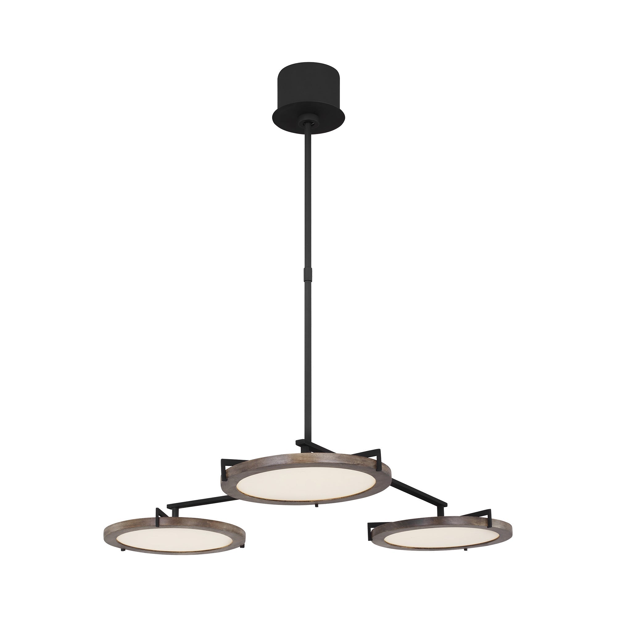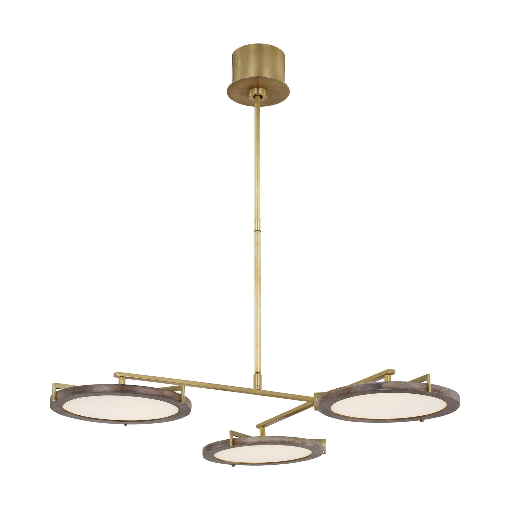 At the intersection of energizing futuristic and character-rich Art Deco vintage styles, the Shuffle LED Chandelier from Visual Comfort Modern becomes a focal point in any contemporary setting. Whimsical disc lights encased in metal shades arrange in a triangular distribution, delivering a notable vintage flavor that softens a modern light fixture. Energy-efficient illumination glows, casting warm light over a dining ensemble, kitchen, or entryway.
