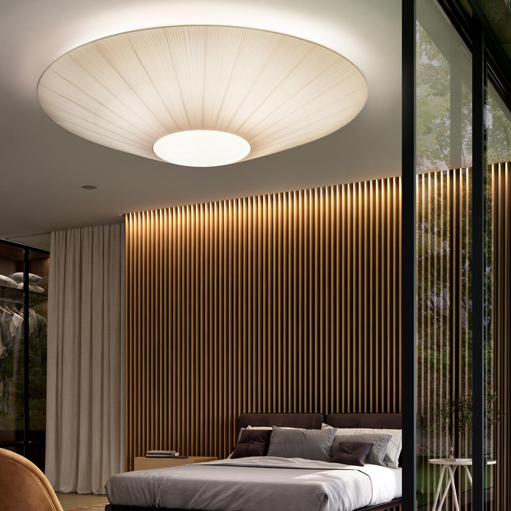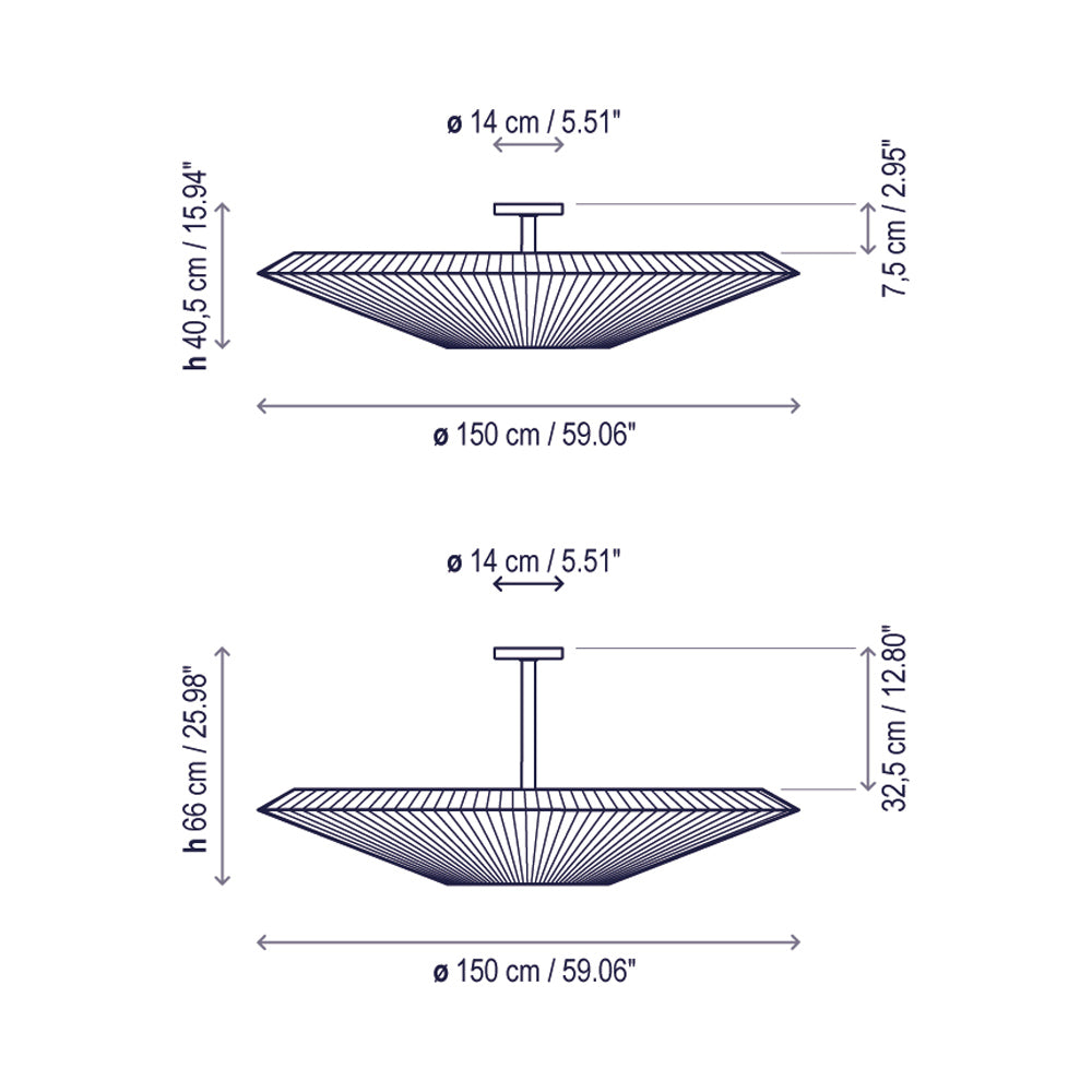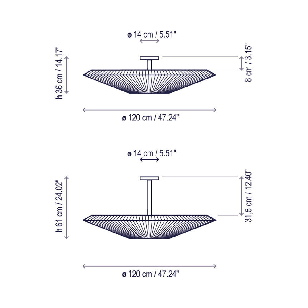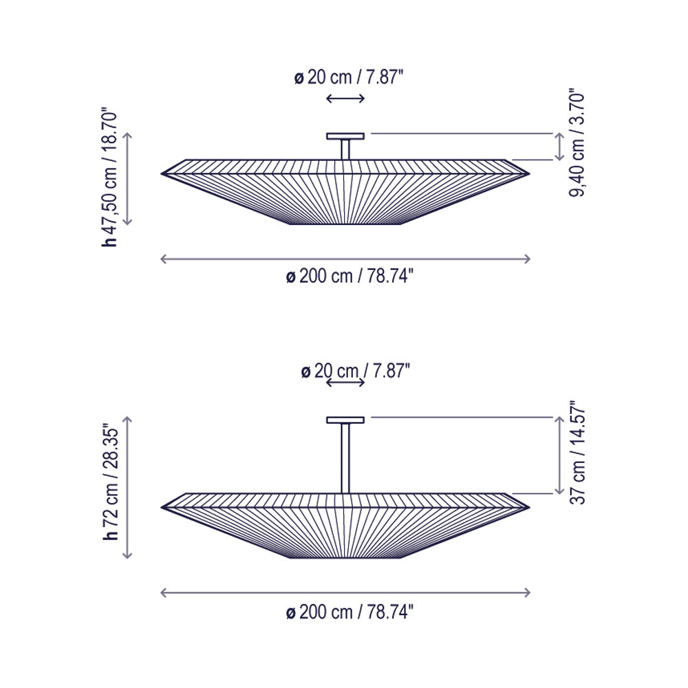 An inverted shade casts a soft, cascade of illumination from the Siam Semi Flush Mount Ceiling Light from Bover. Hints of Asian design influence blend with modern simplicity to create an engaging but streamlined presentation that wows alone or in series, creating a larger lighting installation.