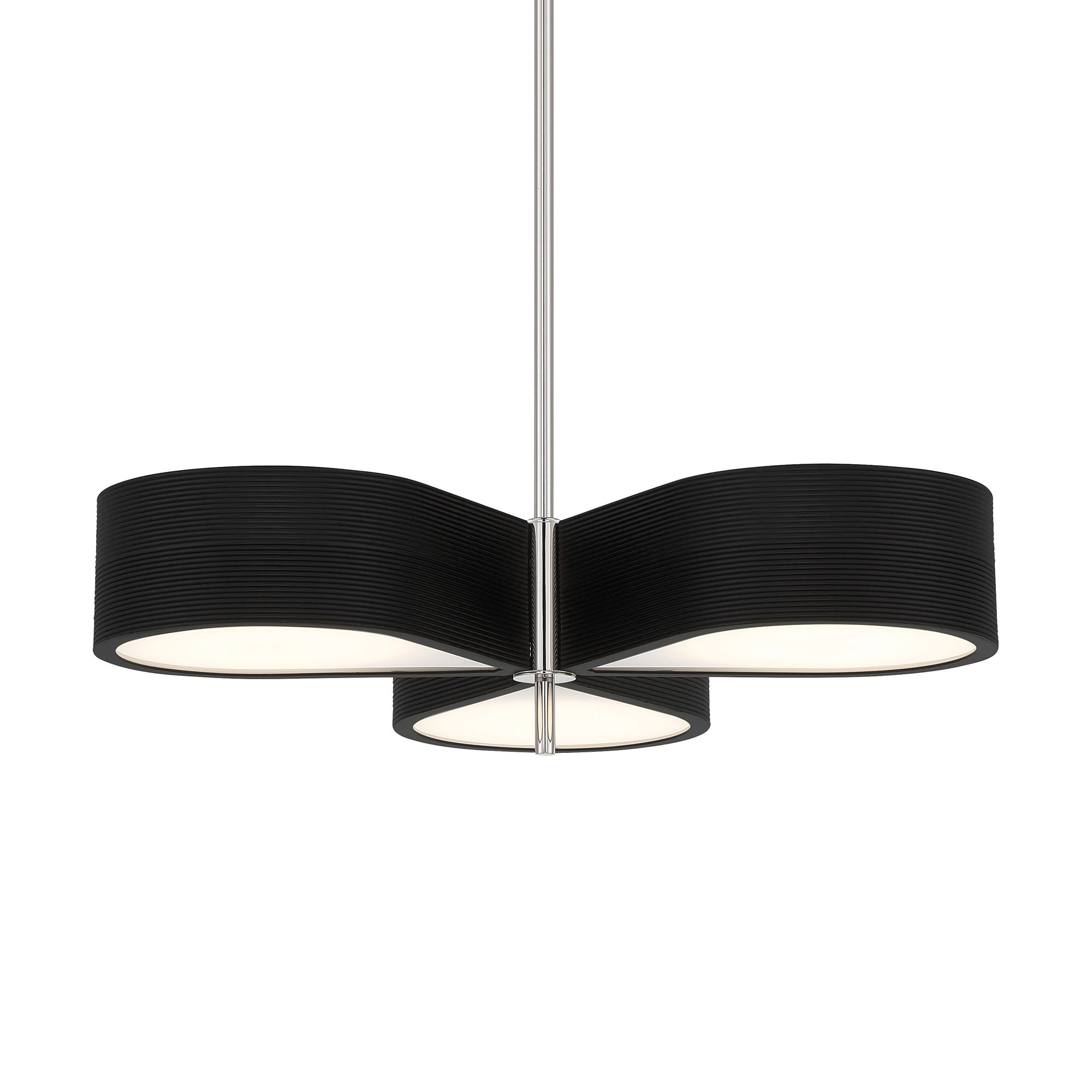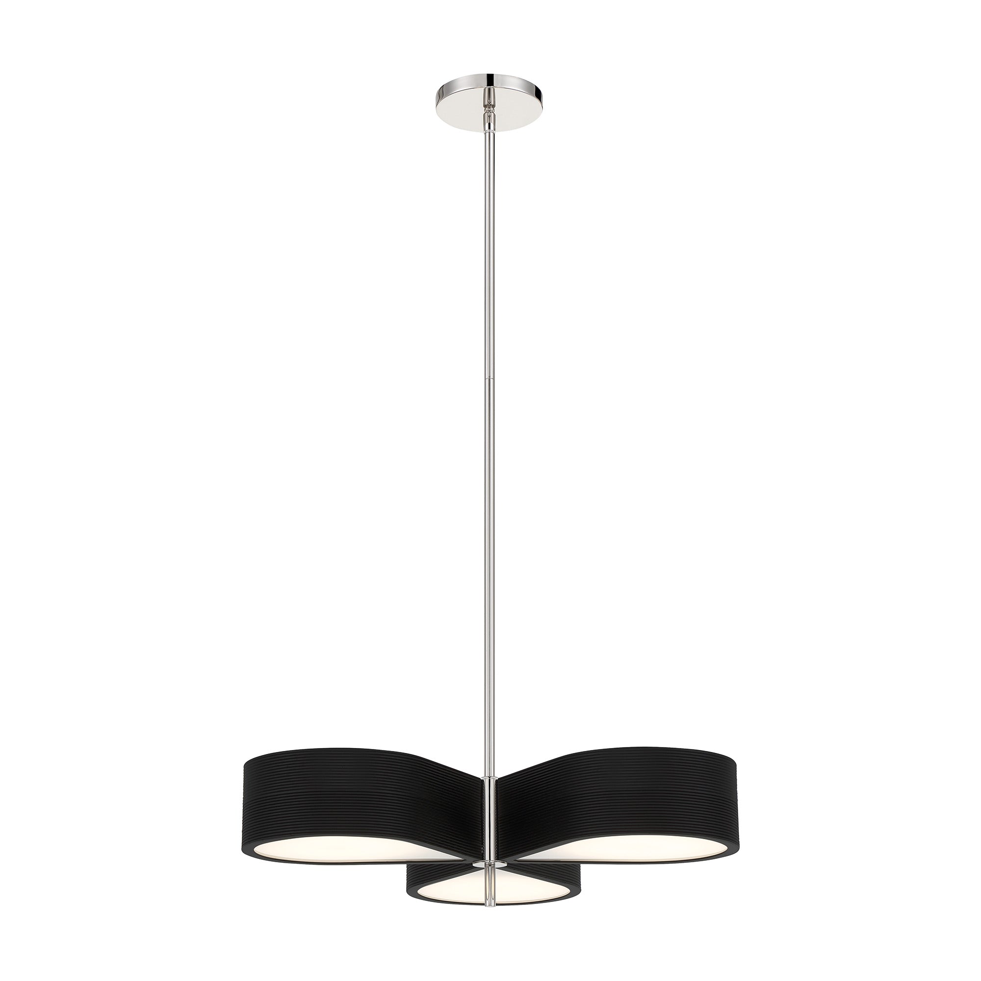 A trio of teardrop petals are fused to create the impeccable profile of the modern Side Step LED Chandelier from George Kovacs. Polished nickel and coal finishes deliver superb contrast while etched white diffusers cover each of the three lights for excellent illumination in a kitchen or entryway.