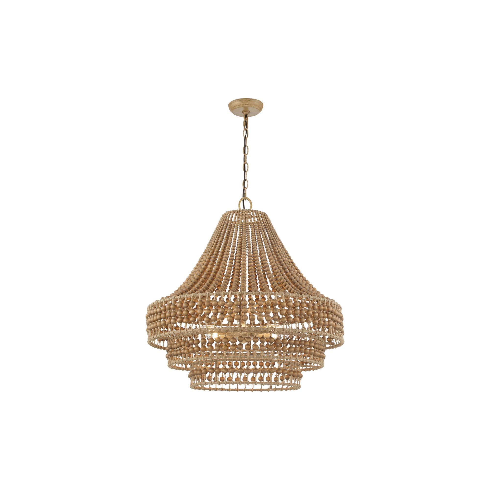 Natural wood beads deliver an easy aesthetic with earthy elegance as the Silas Chandelier from Crystorama puts an artisanal spin on its subtle style. Rows of beads affix to metal framing, classic and elegant. This fixture delivers the best of both chic sophistication and nature-inspired ease.