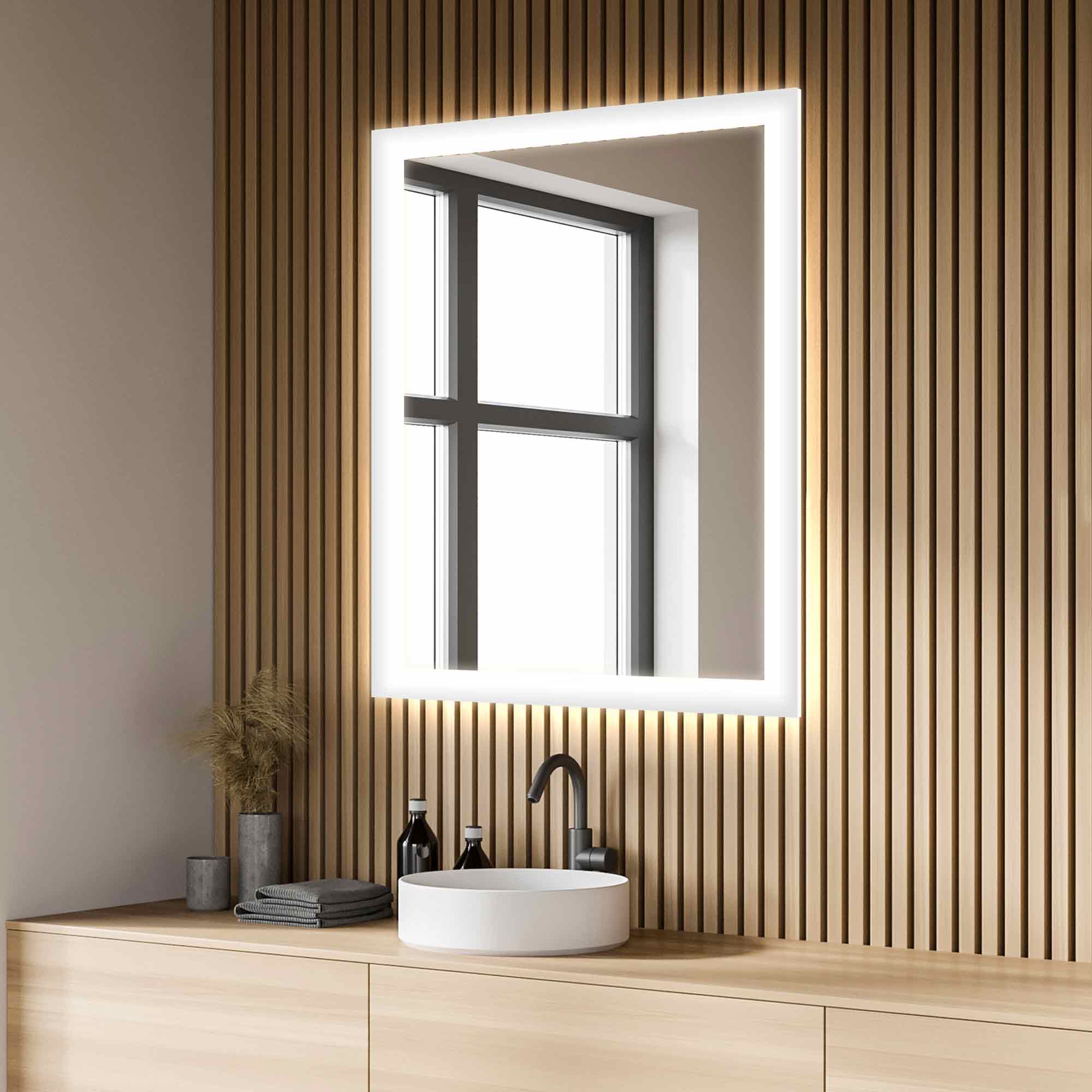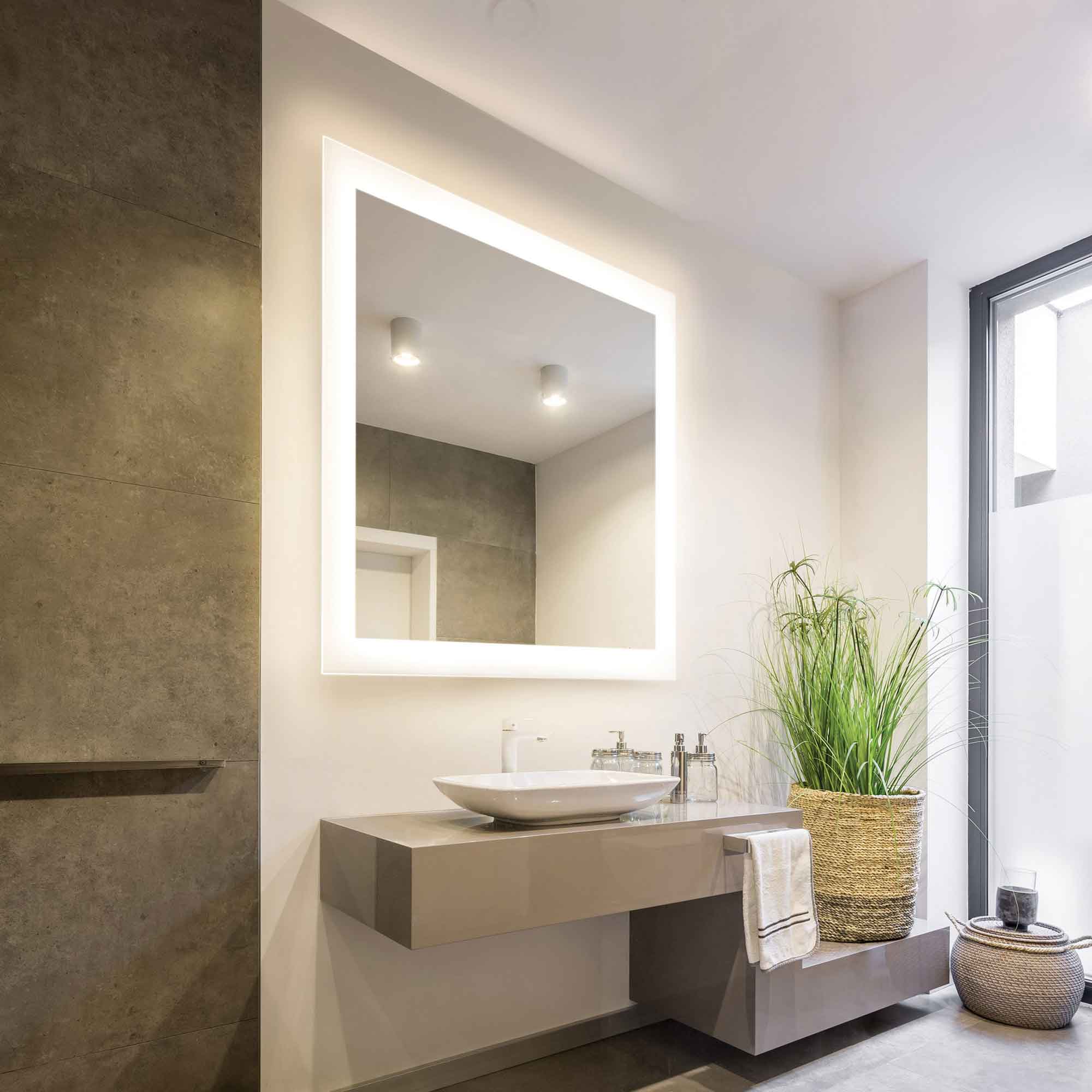 A soft wall glow creates an almost free-floating effect for the impressive, modern Silhouette LED Lighted Mirror from Electric Mirror.