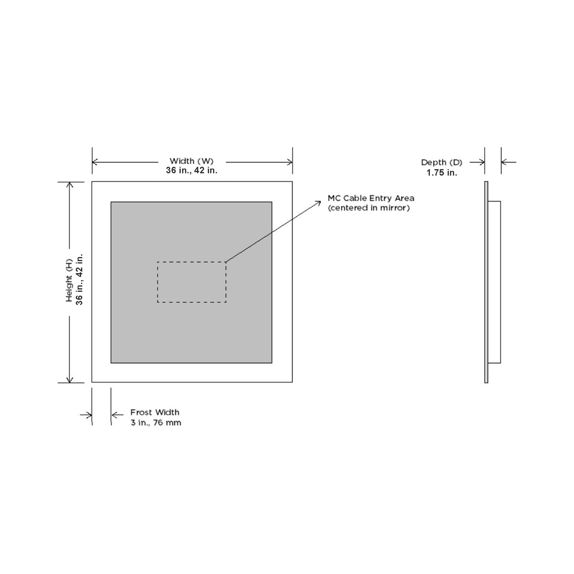 - Vertical Rectangular/Small: 24"W X 36"H; 1.75" Extension