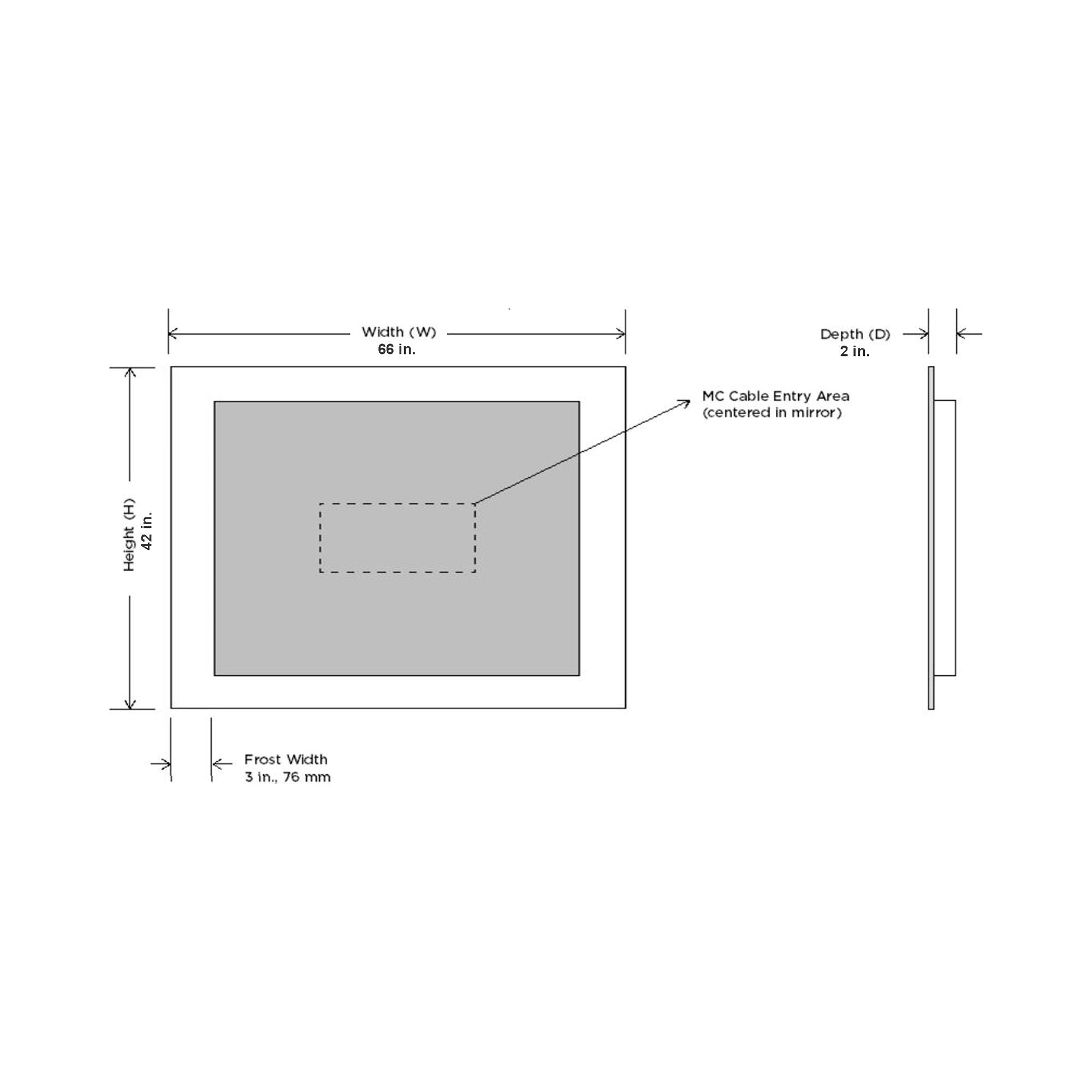 - Horizontal Rectangular/X-Large: 66"W X 42"H; 2" Extension