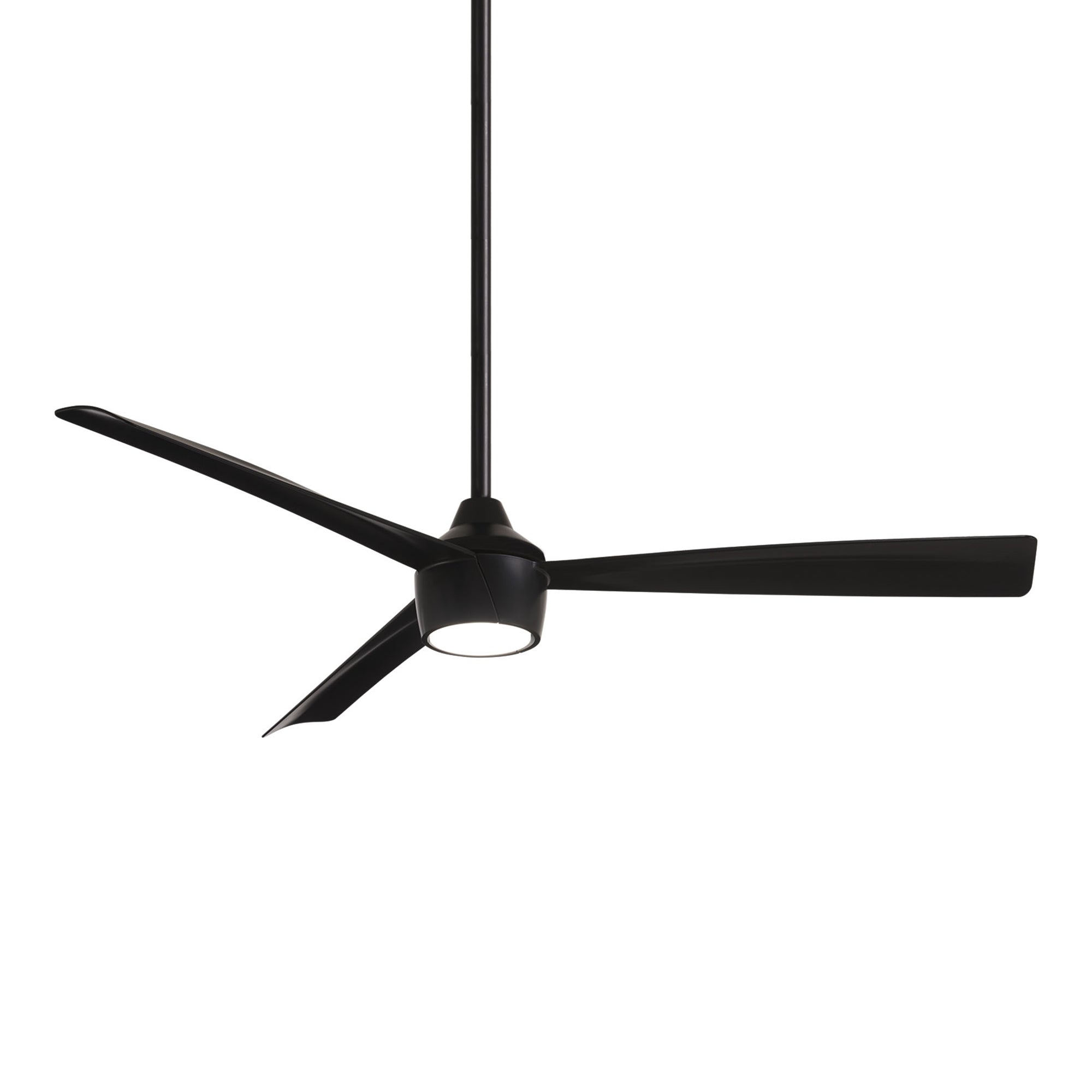 The Skinnie LED Ceiling Fan from Minka Aire reinforces a less-is-more design concept ideal for laid-back yet sophisticated living spaces. This three-blade fan offers energy-efficient lighting through a simple frosted white lens capping metal housing and matching metal blades, tilted to provide efficient air movement. A prominent down rod emphasizes the linear and basic style factor of a six-speed fan and light combination with a streamlined style that blends in beautifully.