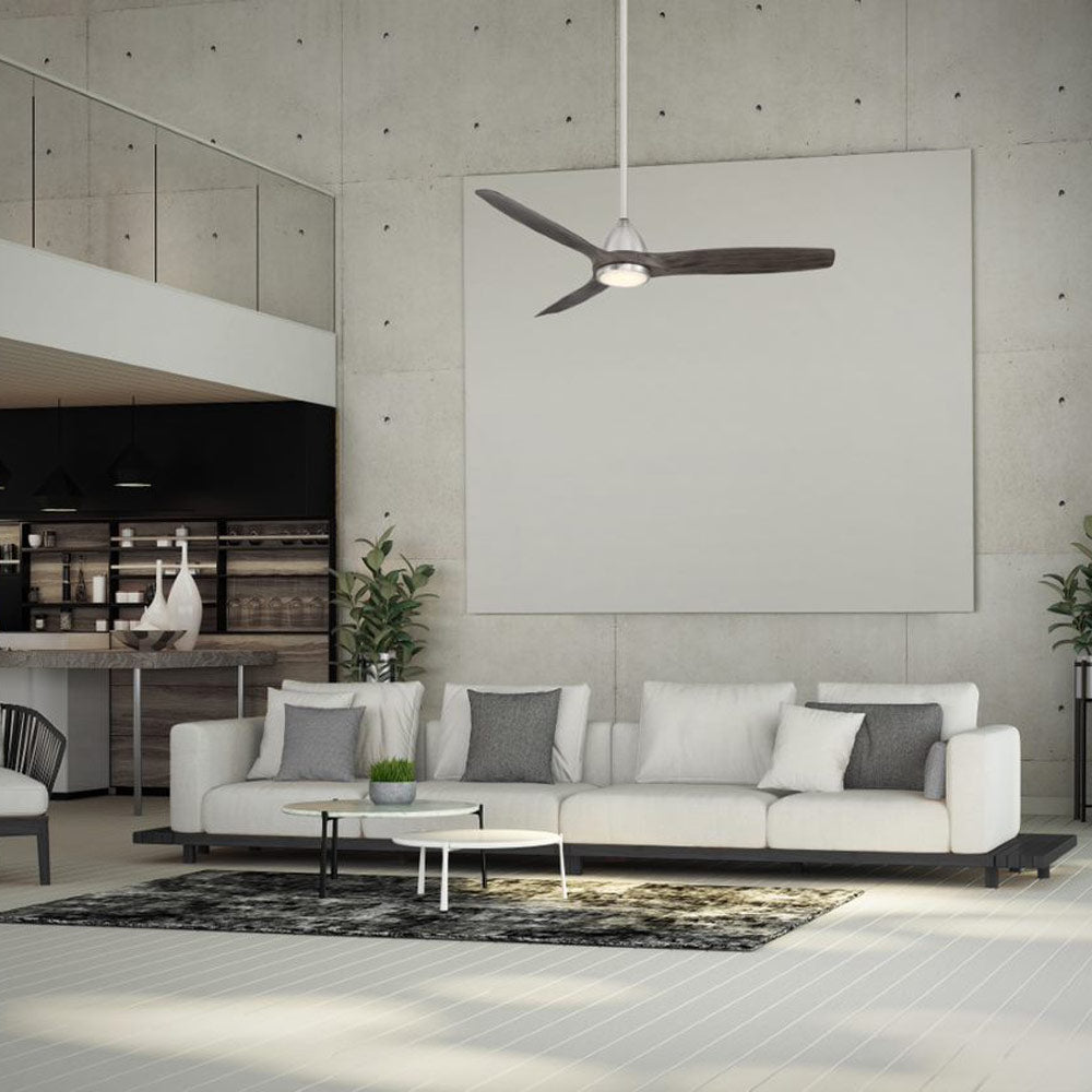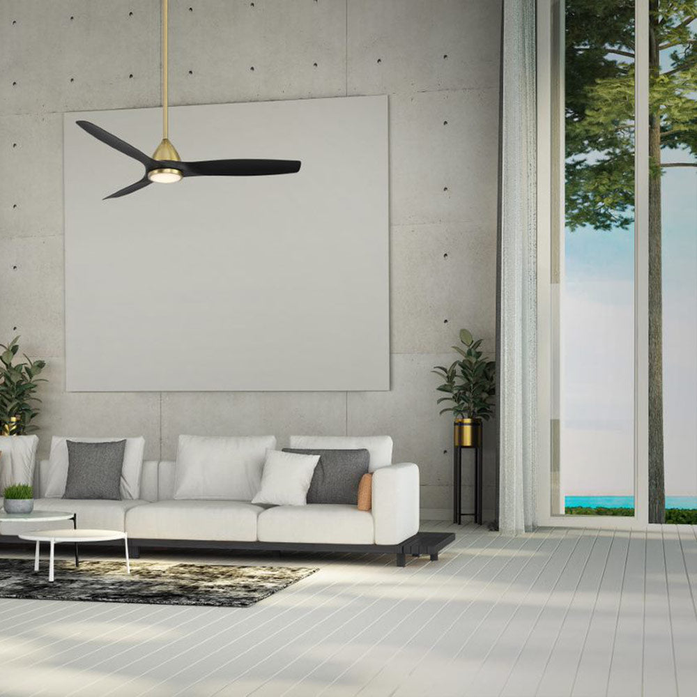 Introduce sleek sophistication to your home with the new Skylark Outdoor LED Ceiling Fan. Spectacular new finishes of soft brass and brushed nickel are unveiled in our Modern Forms Smart Fan collection. Also debuting is the ebony finish which features a new weathered look. The three smartly designed blades circulate air with an agile yet robust gracefulness, bringing incomparable comfort and illumination with an integrated LED luminaire, throughout your space. The convenient, 6-speed set-up can be controlled locally using the included BT remote control or remotely using our Modern Forms app which intuitively integrates with your existing smart home devices, including Google Assistant and Amazon Echo.