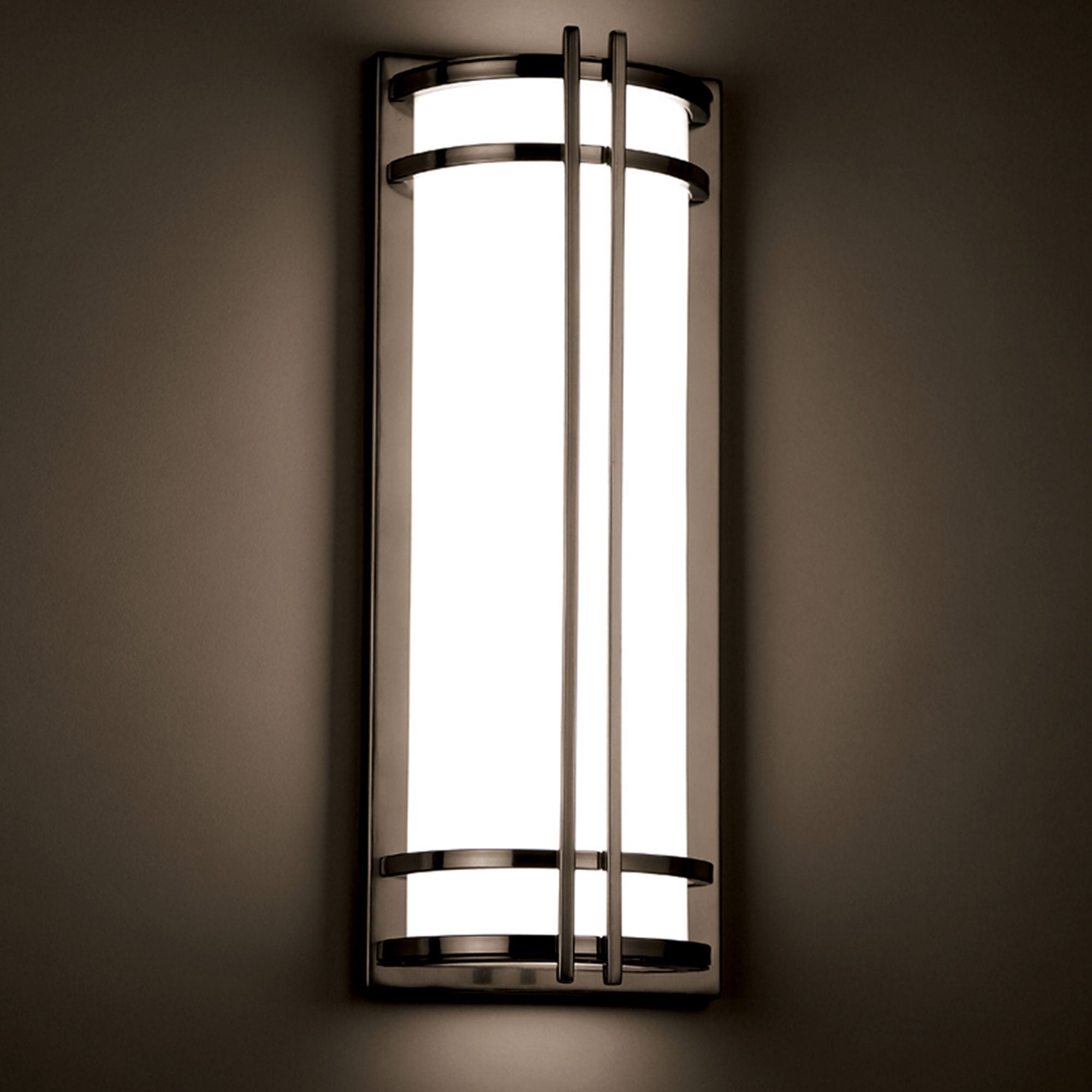 Elevate your space. A classic architectural design thoughtfully engineered for robustness to withstand commercial use for interiors or exteriors. A UV stabilized acrylic diffuser and marine grade stainless steel structure complete this specification-grade wall mount luminaire. Available in either black, bronze of stainless steel finish.