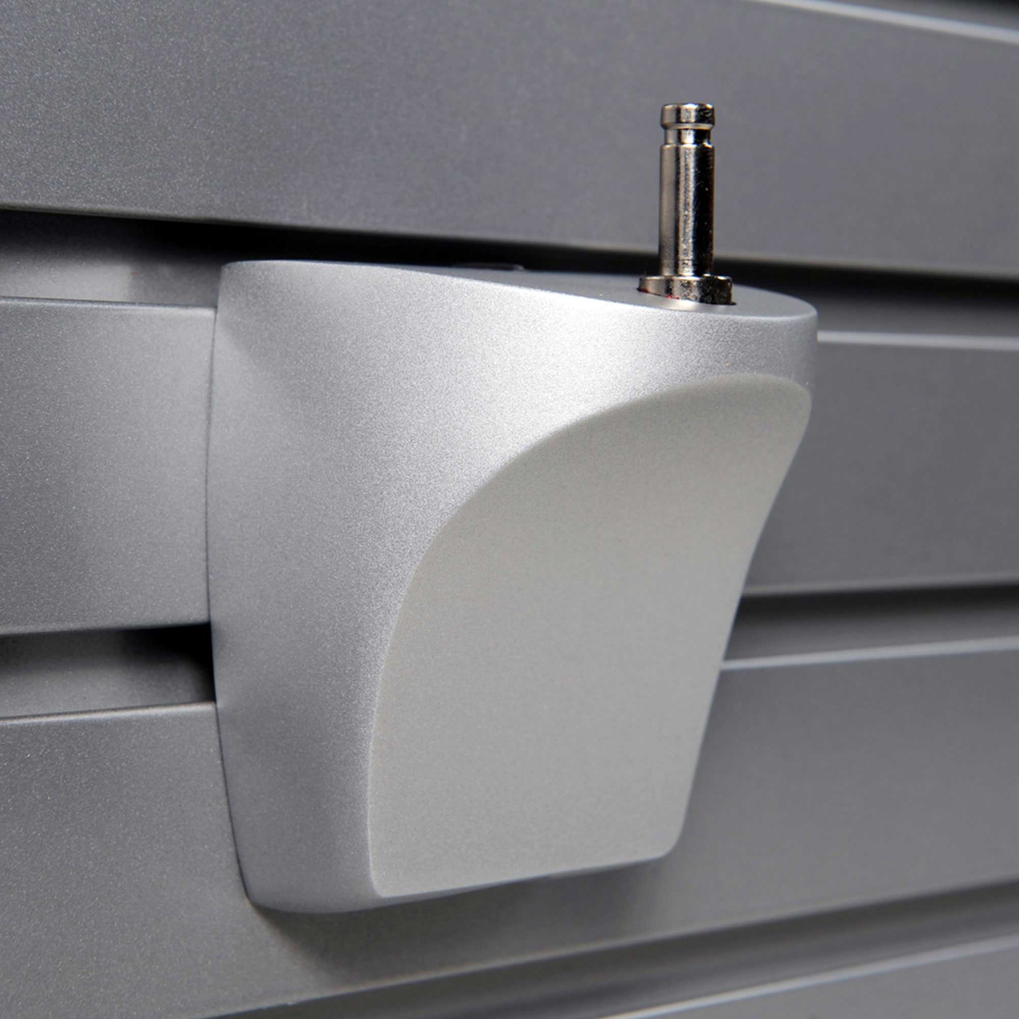 Designed to work with desk lamps, this Slatwall Mount from Koncept Lighting mounts easily to a slatted panel.