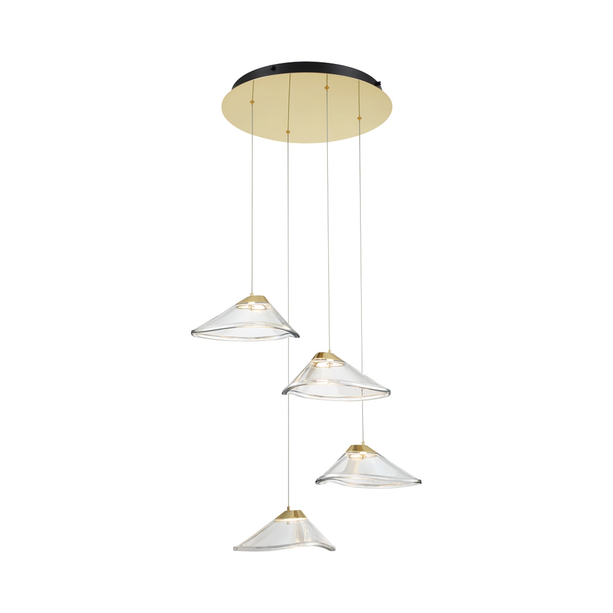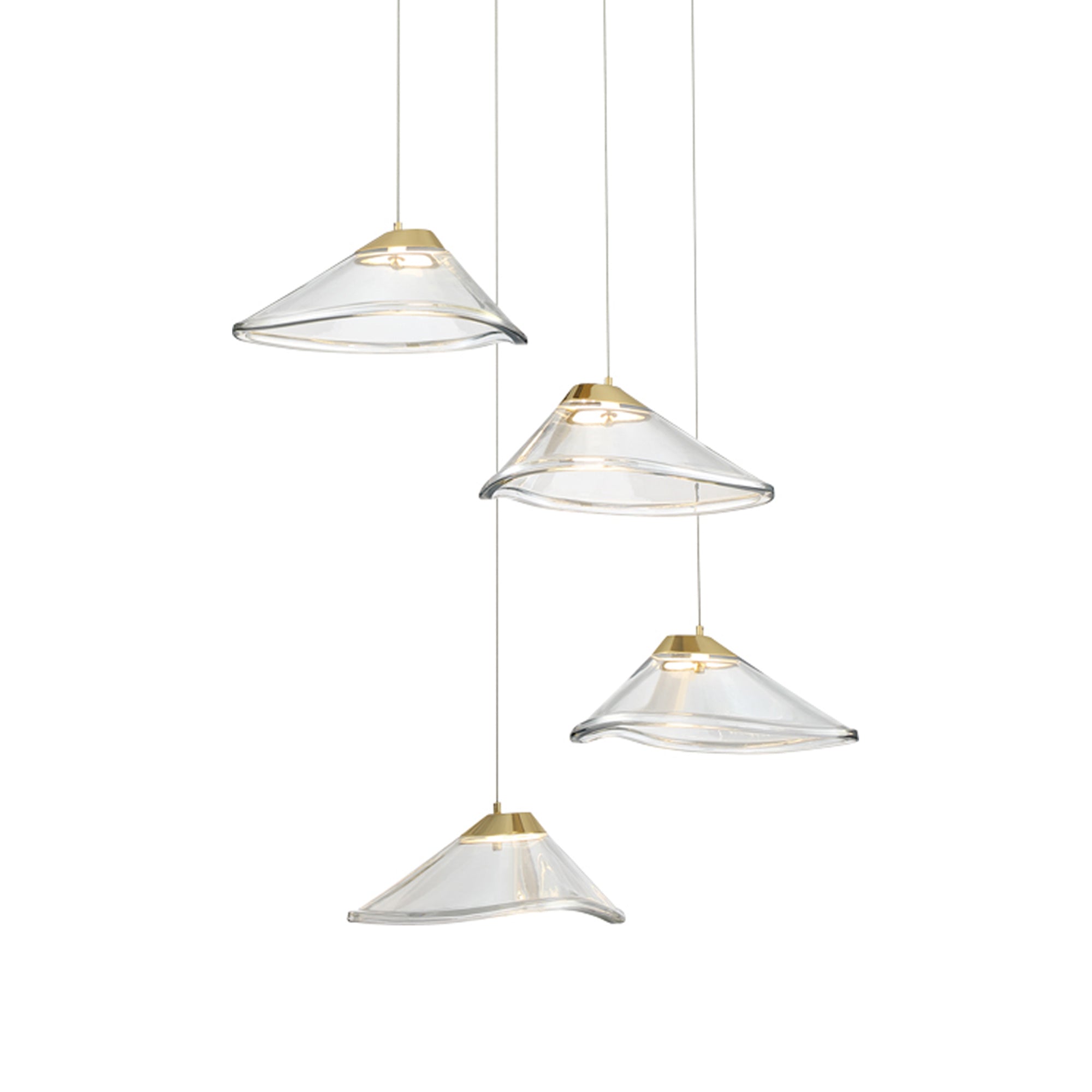 Tinted, pressed glass shades strike a rich, organic aesthetic for the Sneer LED Multi Light Pendant Light from George Kovacs. Gorgeous in a kitchen or living area, it pairs beautiful glass with a modern sun gold finish that glows with warmth.