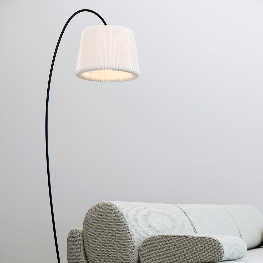Lean in on a statement-making aesthetic with a floor lamp that sets the standard for fashion-forward ambiance. The Snowdrop Floor Lamp from Le Klint creates an exaggerated silhouette of asymmetry with a curved metal frame and matching disc base, as a chic accordion-style shade changes up the motif to reflect prim sophistication and a textural design.