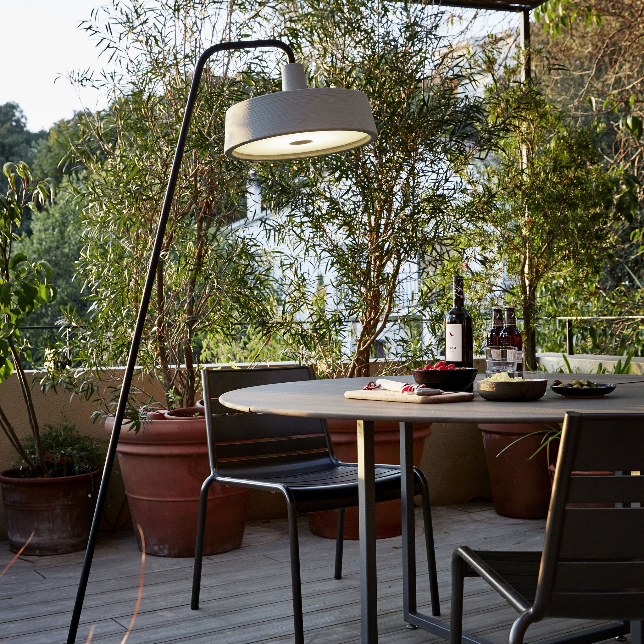 Light up the night as you enjoy warm summer evenings or crisp fall mornings with the Soho Outdoor LED Floor Lamp from Marset. A svelte, angular arm hosts a wide, round shade that delivers excellent, energy efficient illumination to your patio, deck, or outdoor living space.