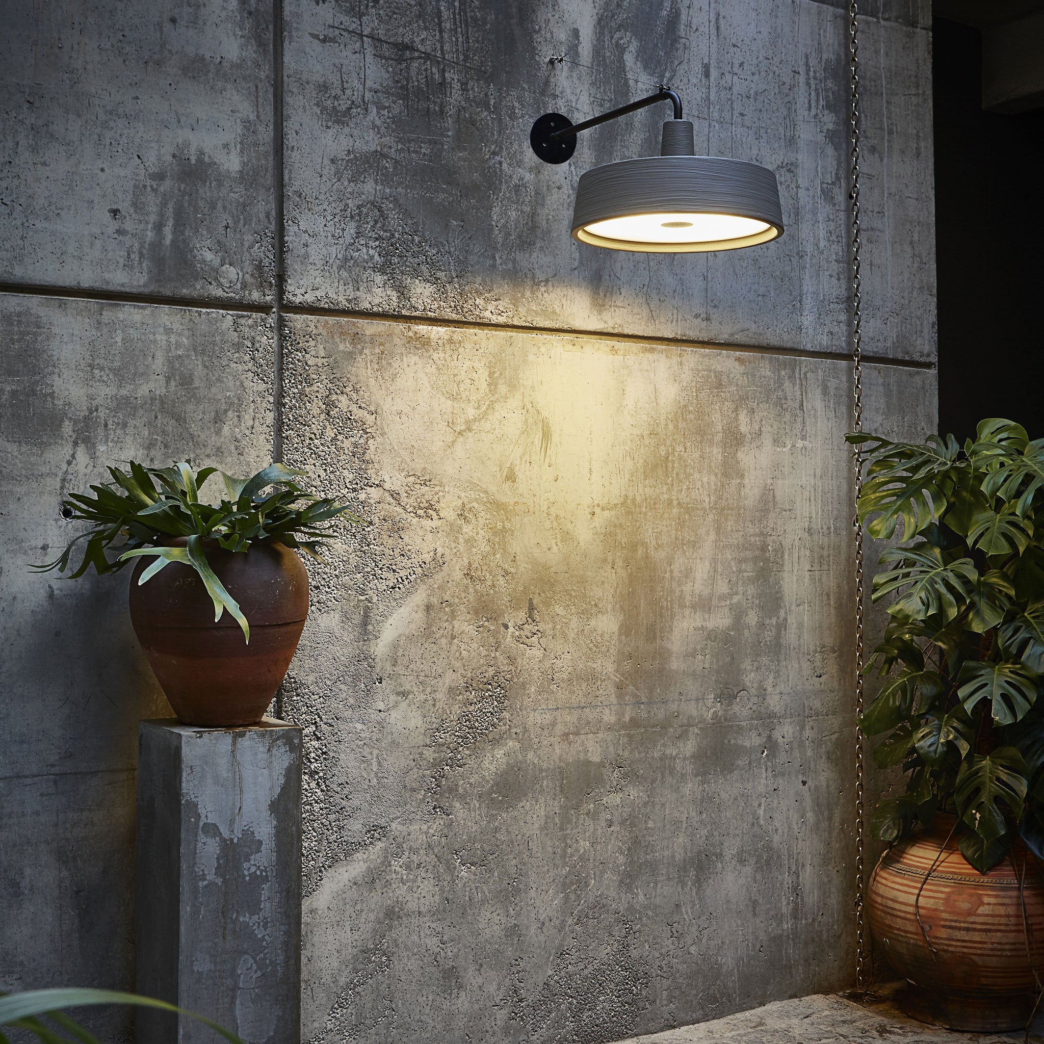 Touches with industrial character, the Soho Outdoor LED Wall Light from Marset is a character-rich design that sets the tone for your elegant exterior space. Its classic silhouette is lightly textured and complete with an opaque diffuser that ensures a lovely glow on the porch, patio, or balcony.