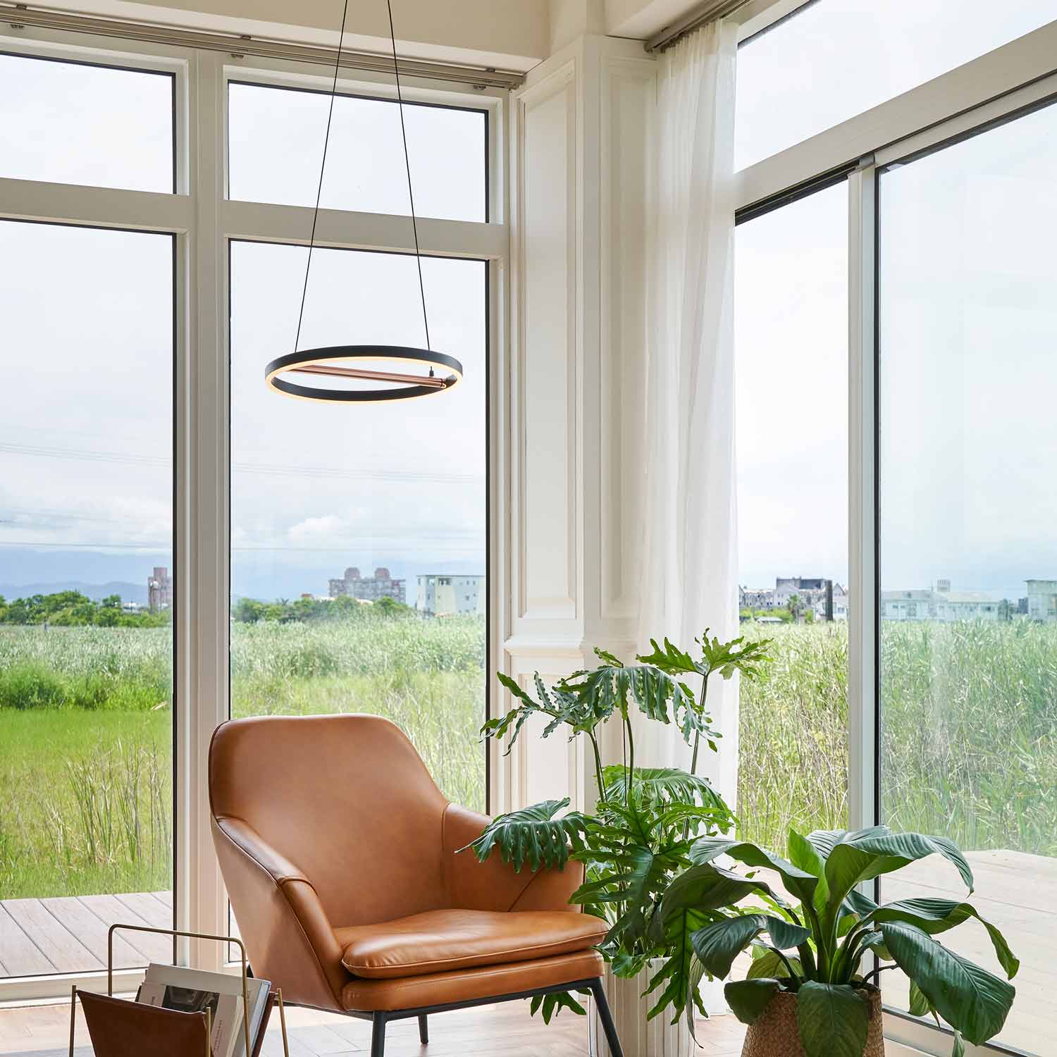 Emulate ultra-modern simplicity while embracing a retro flavor with the SOL LED Pendant Light from Seed Design, a fixture delivering energy-efficient illumination and adjustability. This pendant's shade embraces a metallic luster balance bar with a ring tilt to target lighting at customized angles.