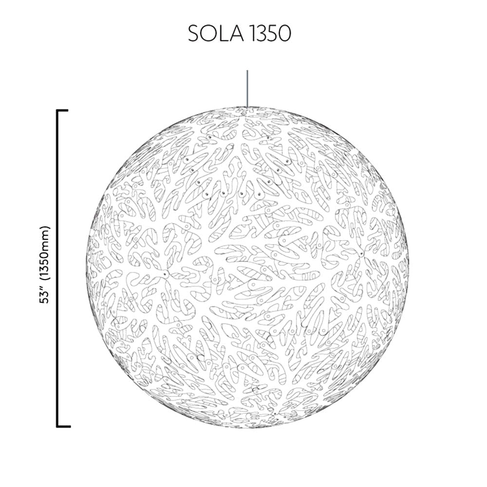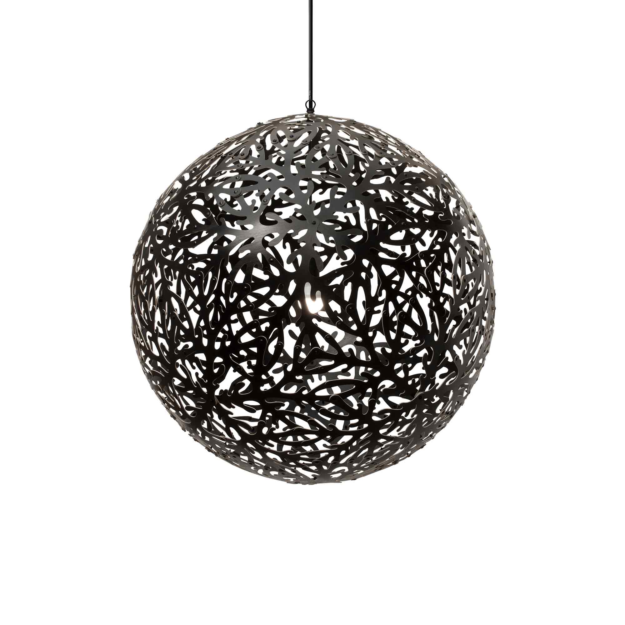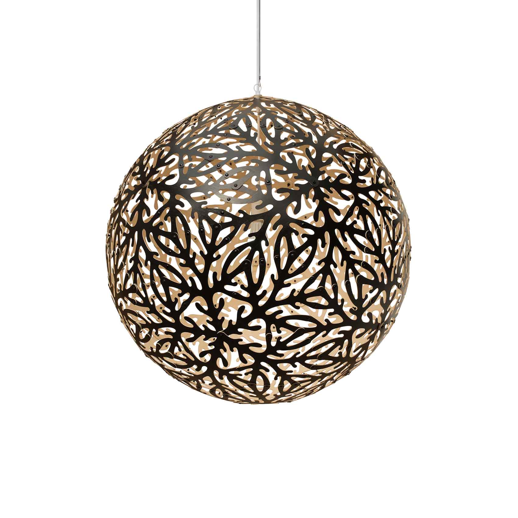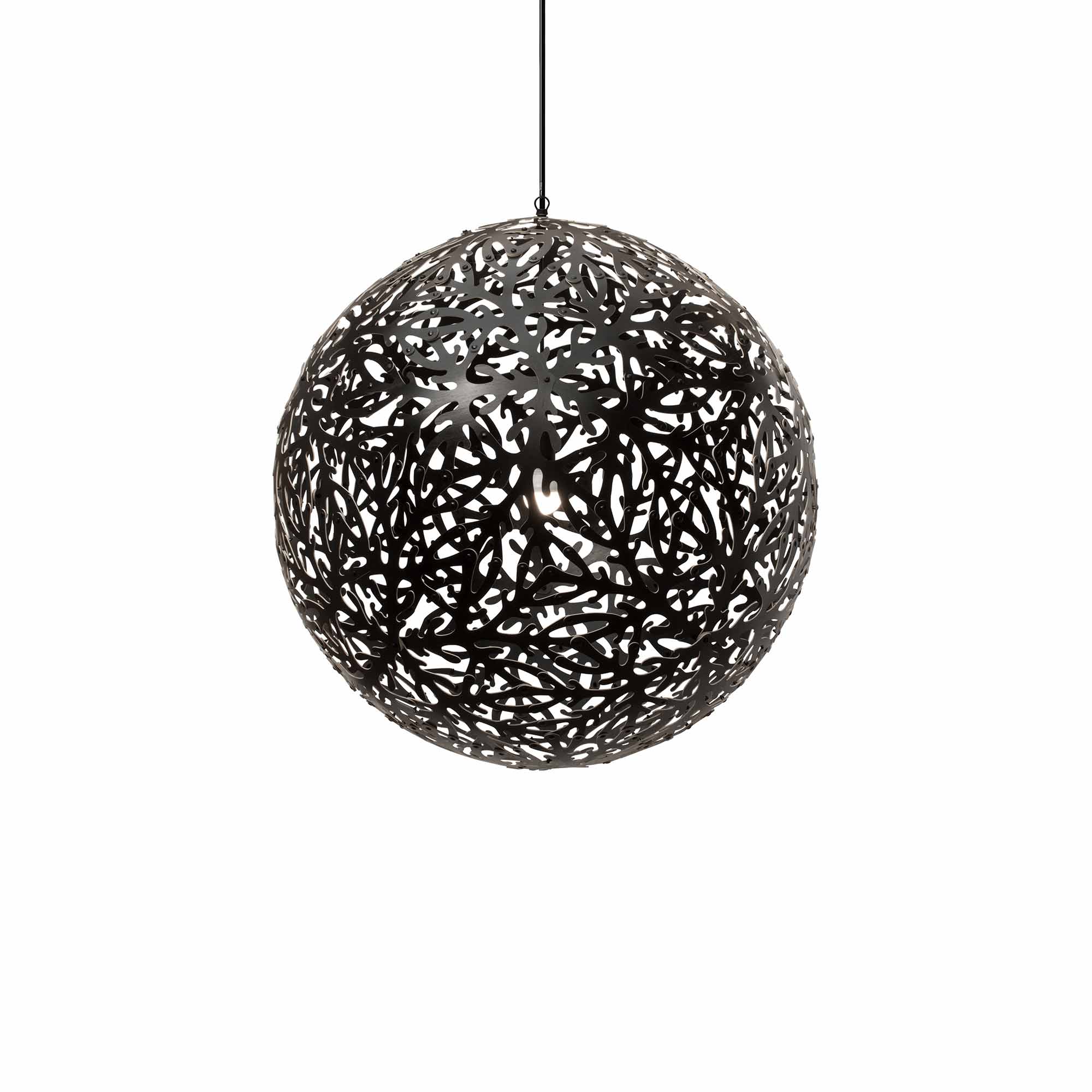 Highly decorative, the Sola Pendant Light from David Trubridge is constructed of intricate, intertwined fronds that spill light to create engaging, artistic shadow patterns across a foyer or dining room. Its orb silhouette introduces a sense of balance and symmetry to its complex, geometric structure.