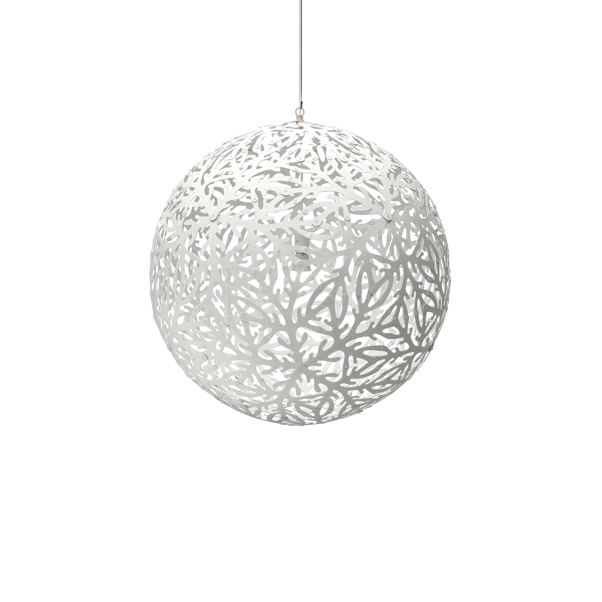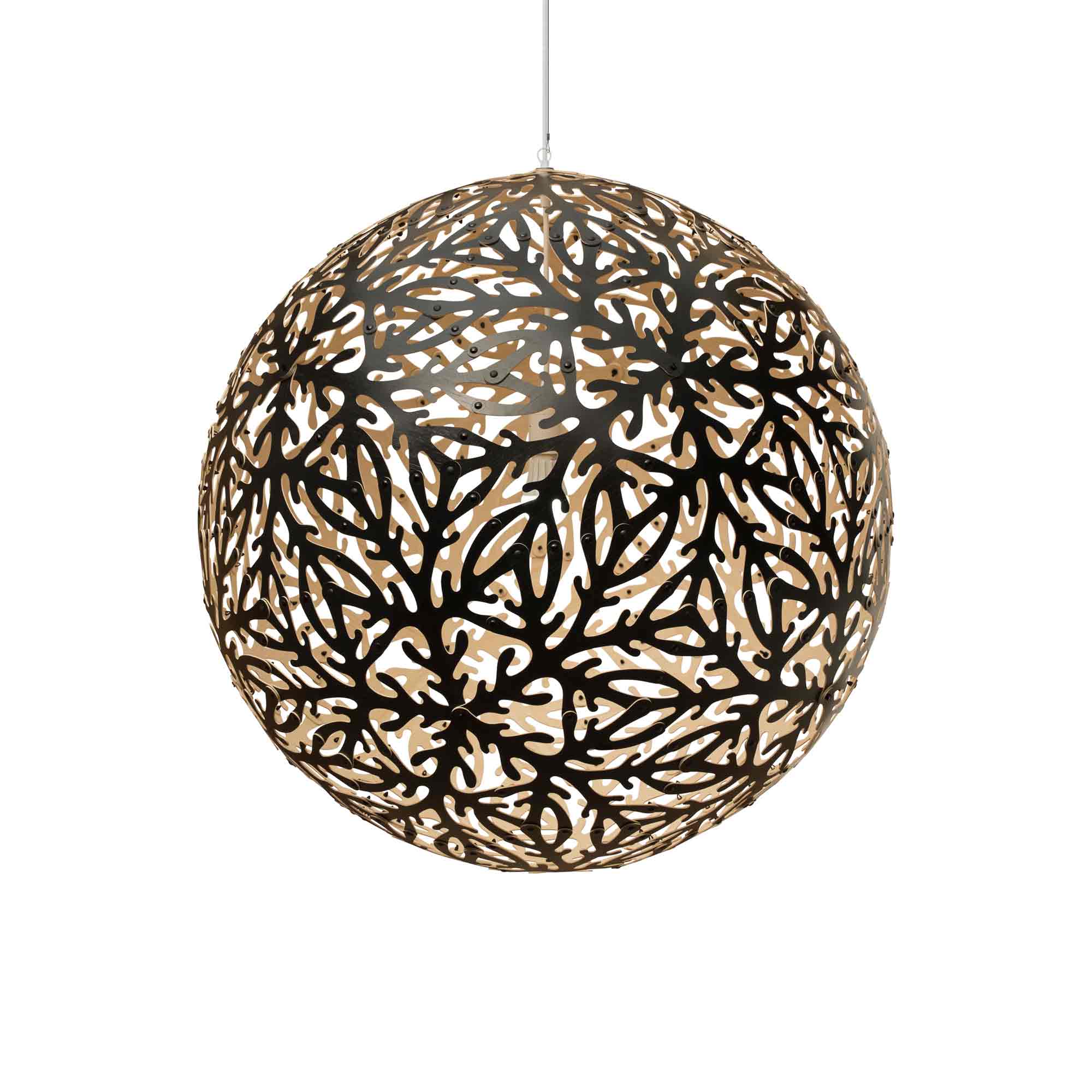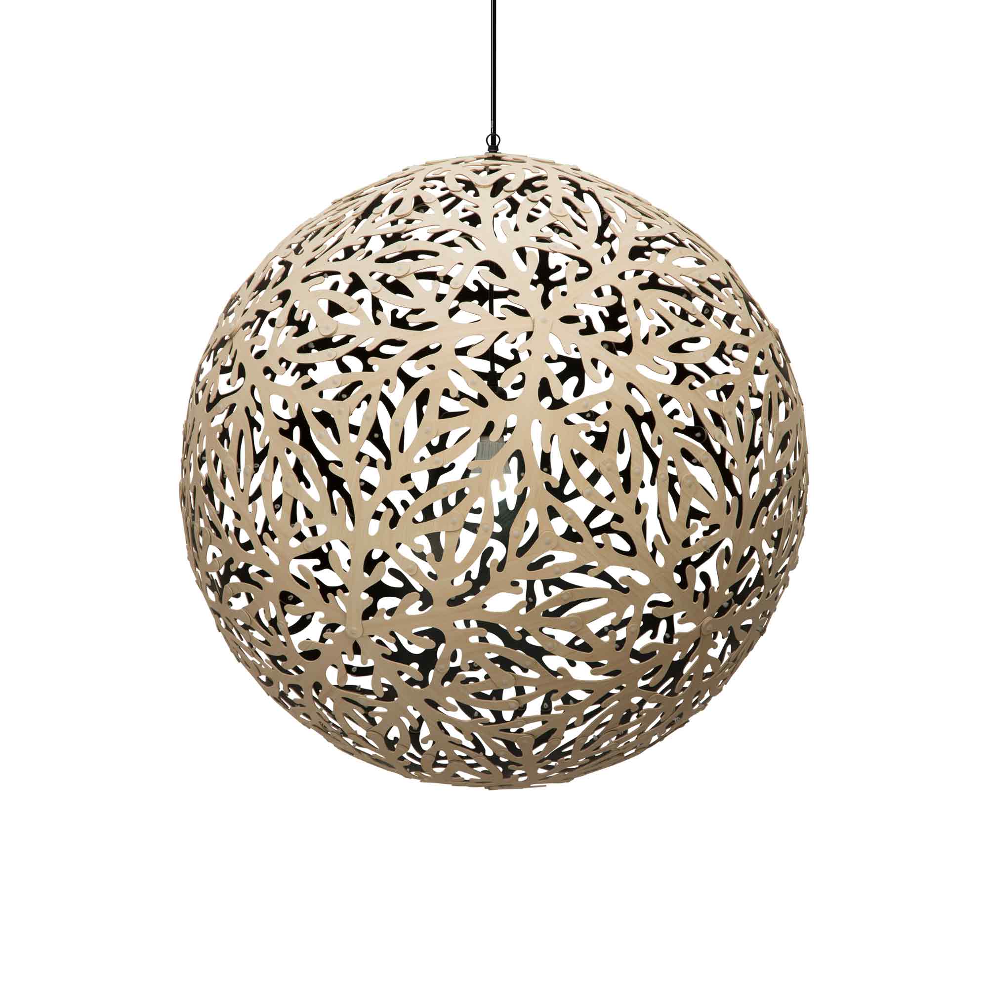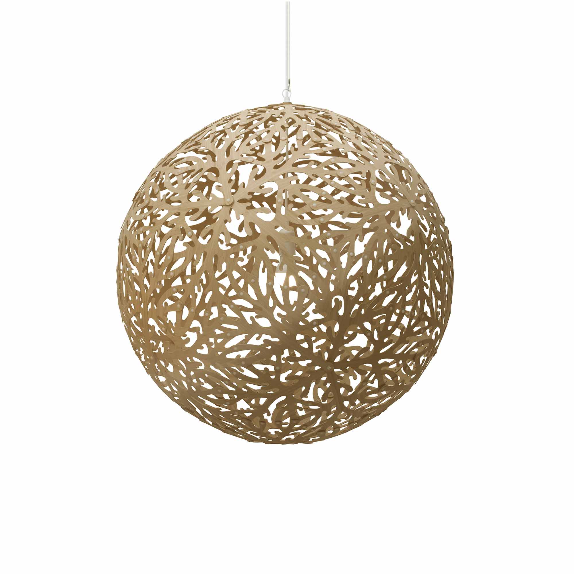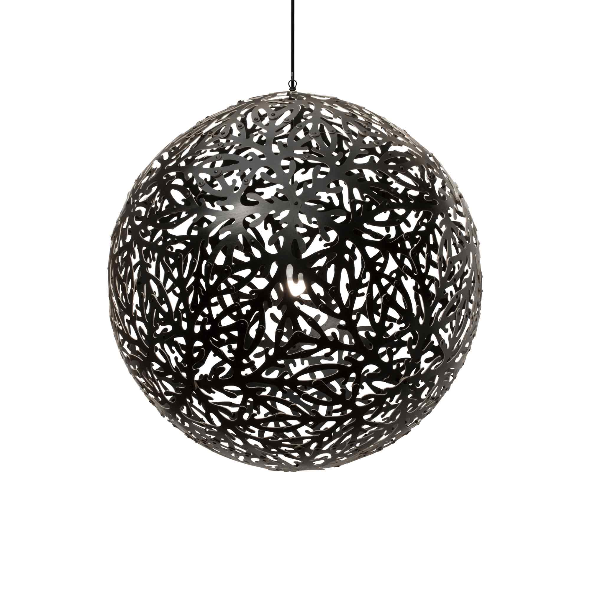 Highly decorative, the Sola Pendant Light from David Trubridge is constructed of intricate, intertwined fronds that spill light to create engaging, artistic shadow patterns across a foyer or dining room. Its orb silhouette introduces a sense of balance and symmetry to its complex, geometric structure.